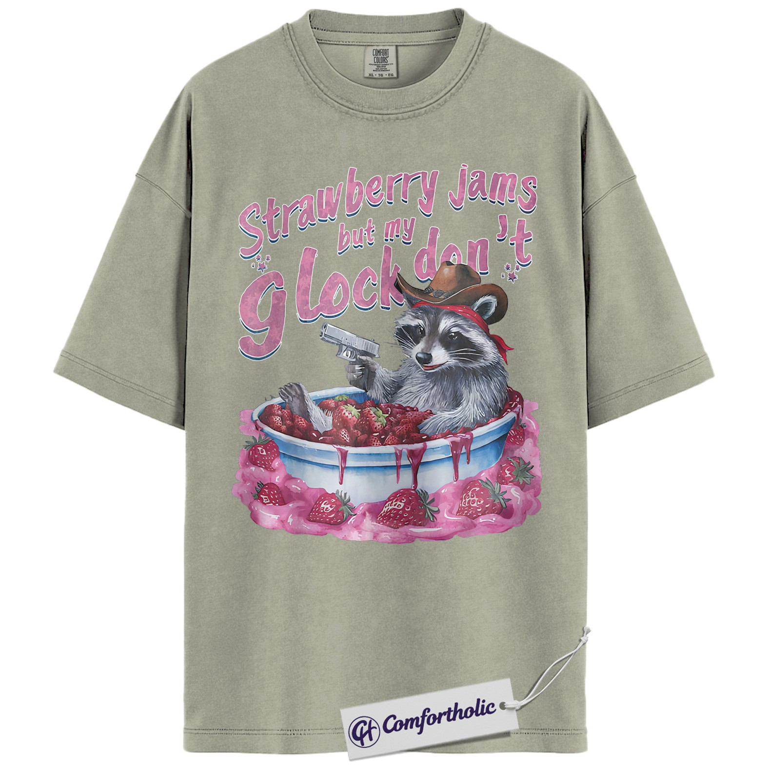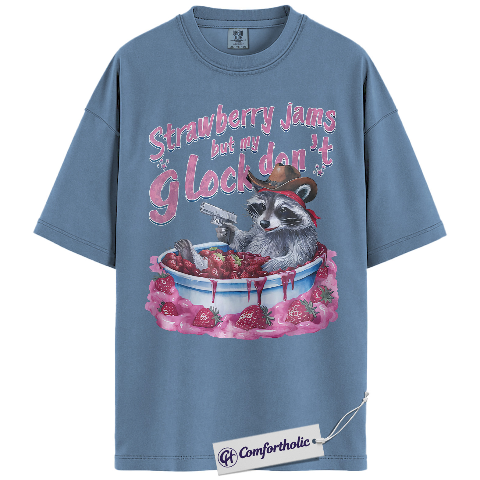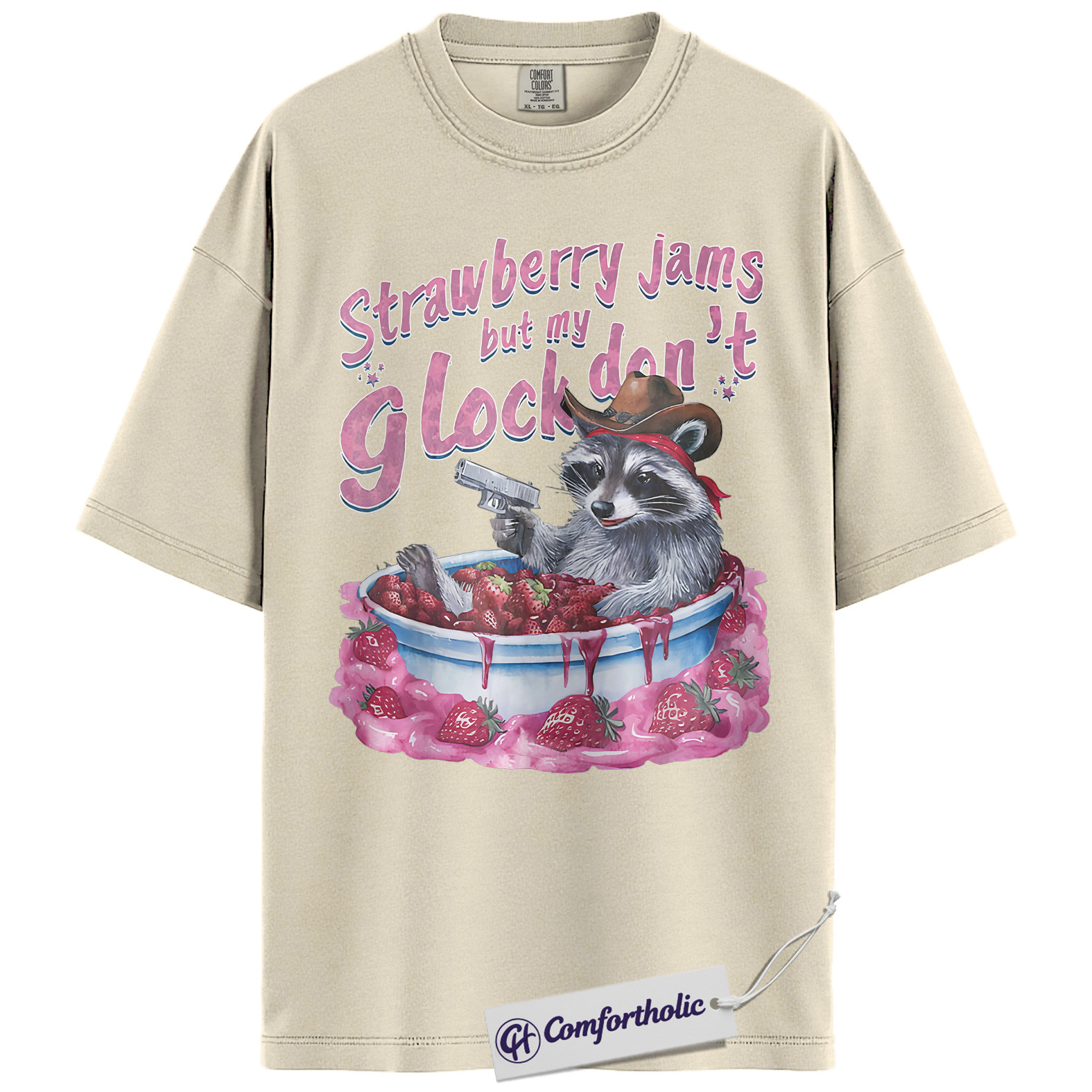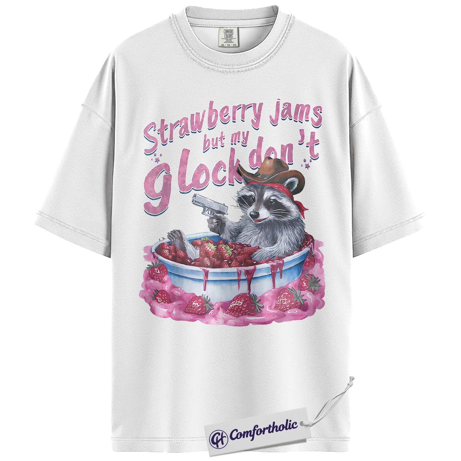 Strawberry Jam Raccoon Shirt, Funny Trash Panda Meme T-Shirt, Cowboy Western Graphic Tee, Humorous Animal Joke Comfort Colors Shirt