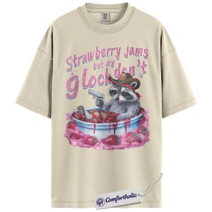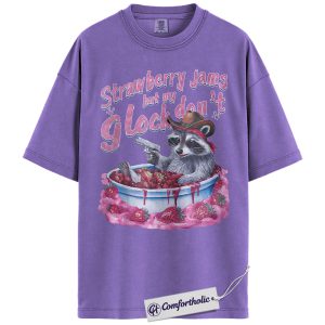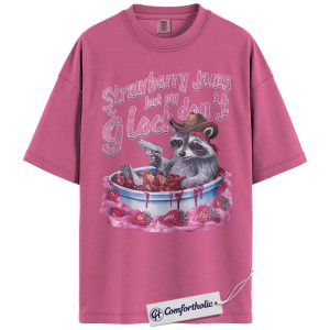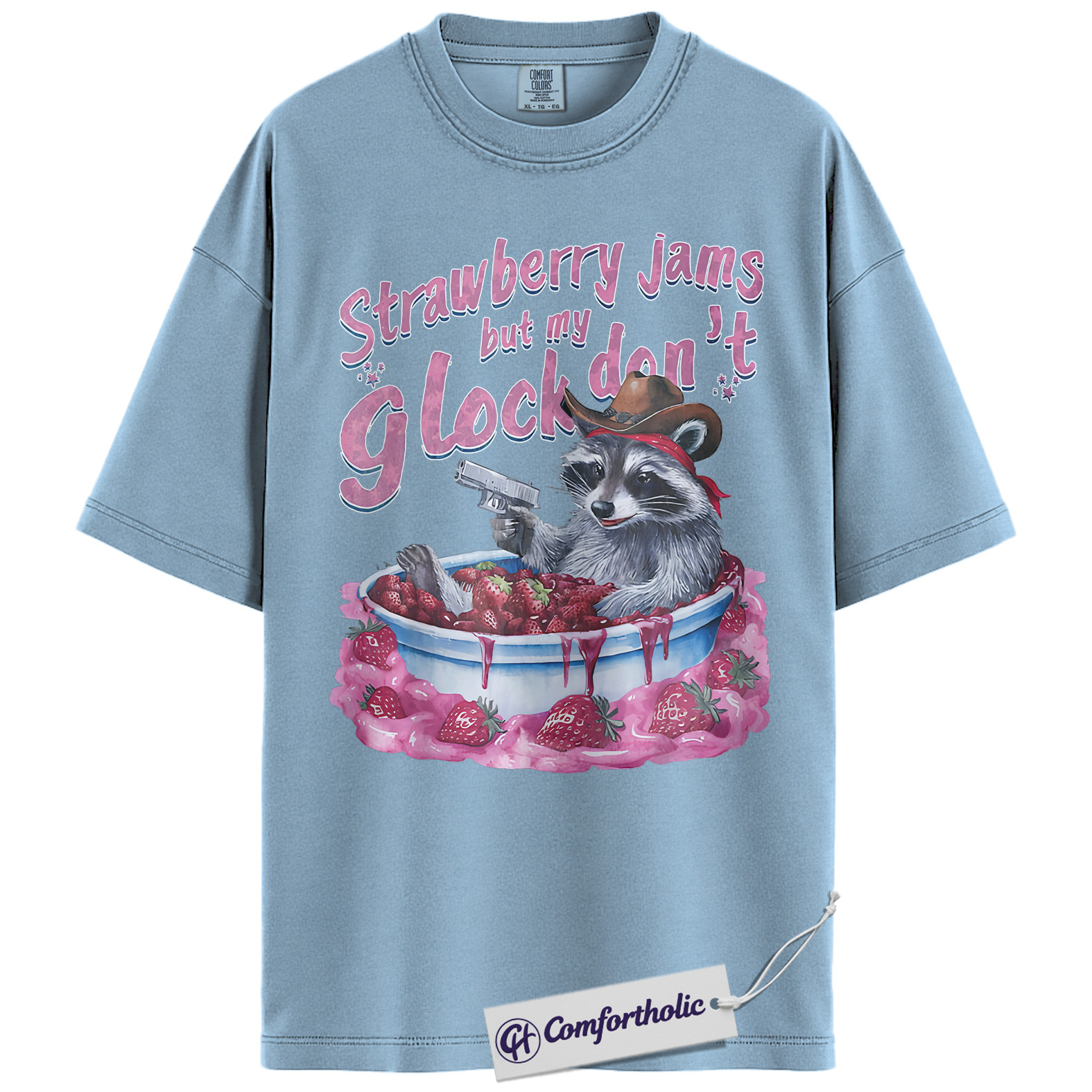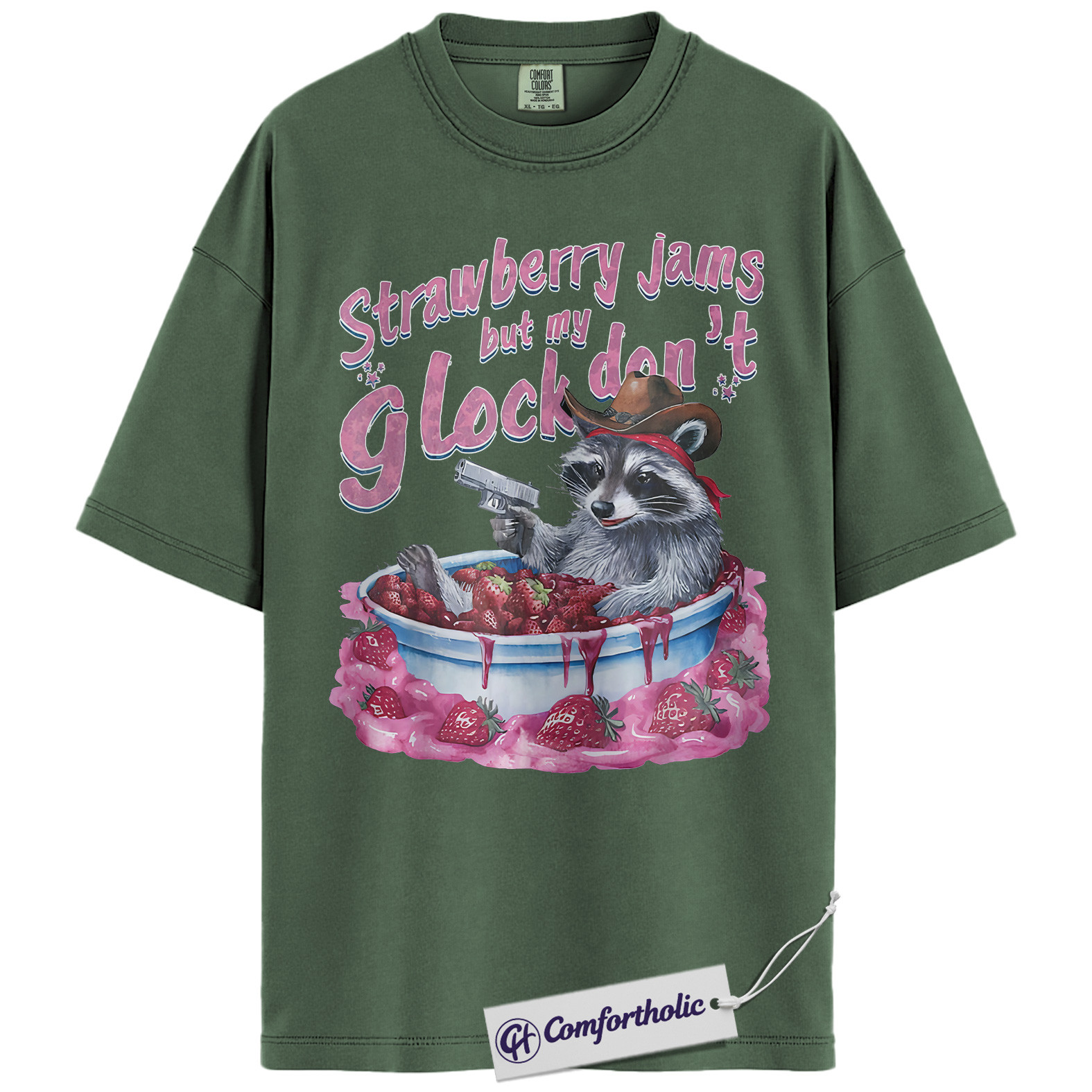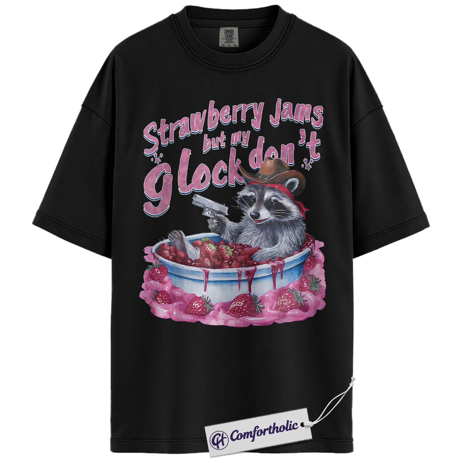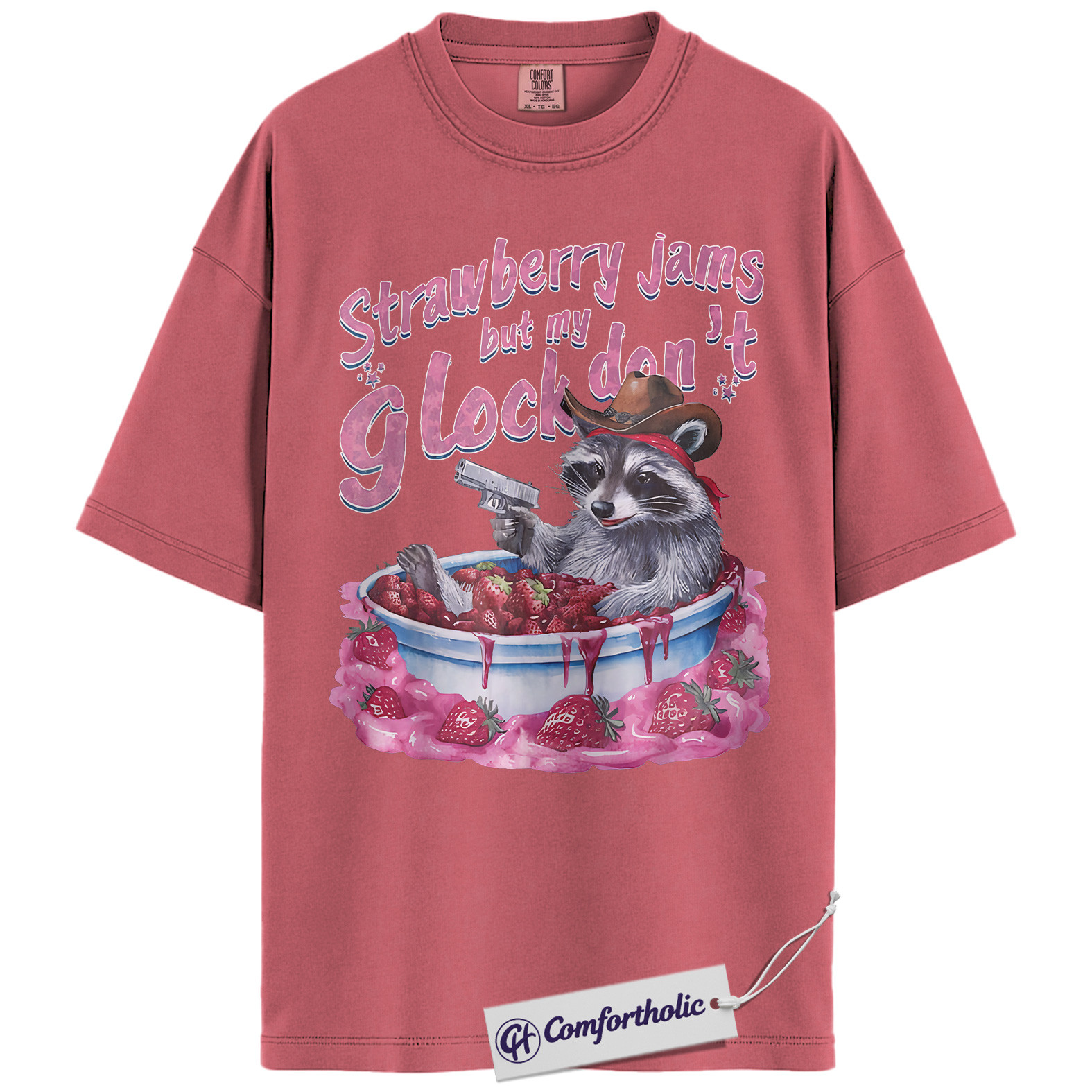 Strawberry Jam Raccoon Shirt, Funny Trash Panda Meme T-Shirt, Cowboy Western Graphic Tee, Humorous Animal Joke Comfort Colors Shirt