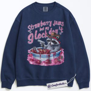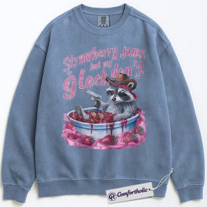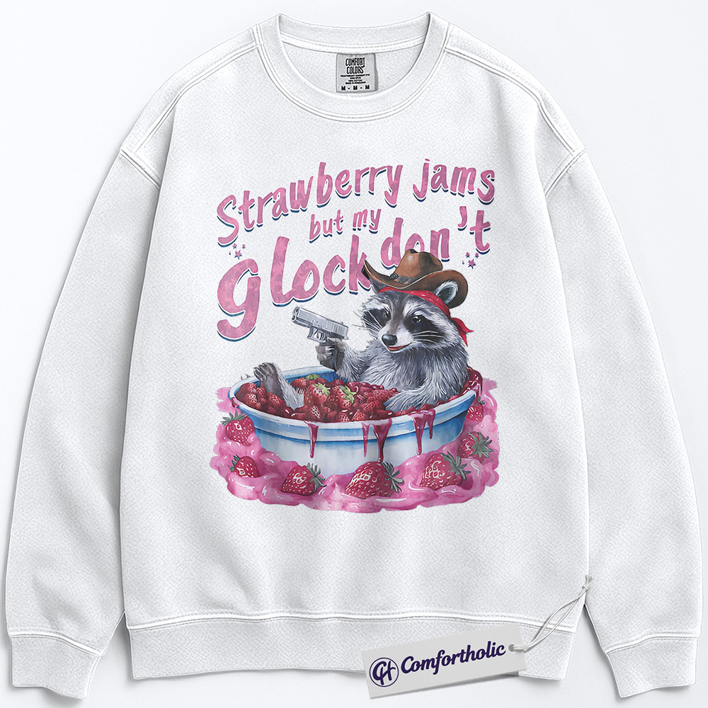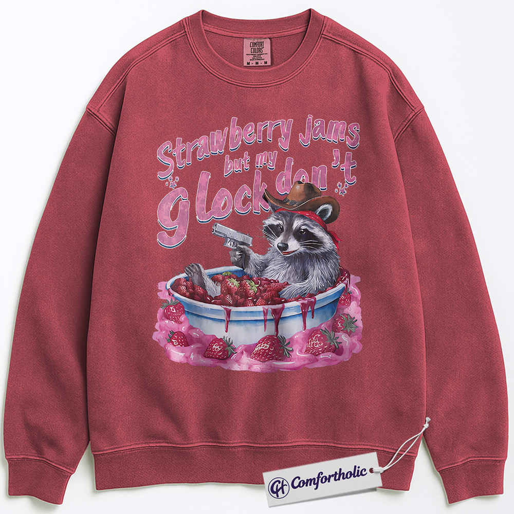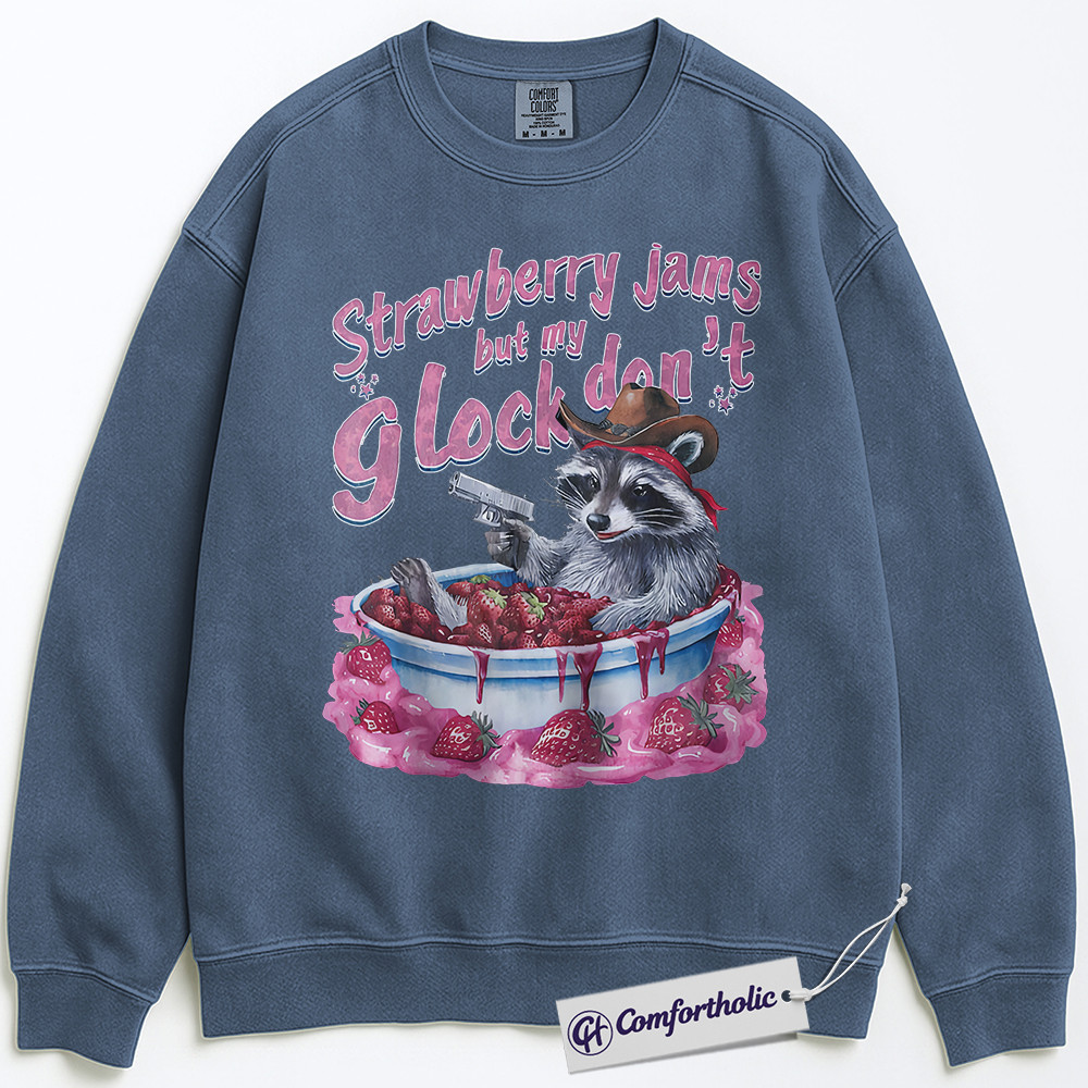 Strawberry Jam Raccoon Sweatshirt, Funny Trash Panda Meme Pullover, Cowboy Western Graphic Crewneck, Humorous Animal Joke Comfort Colors Sweatshirt