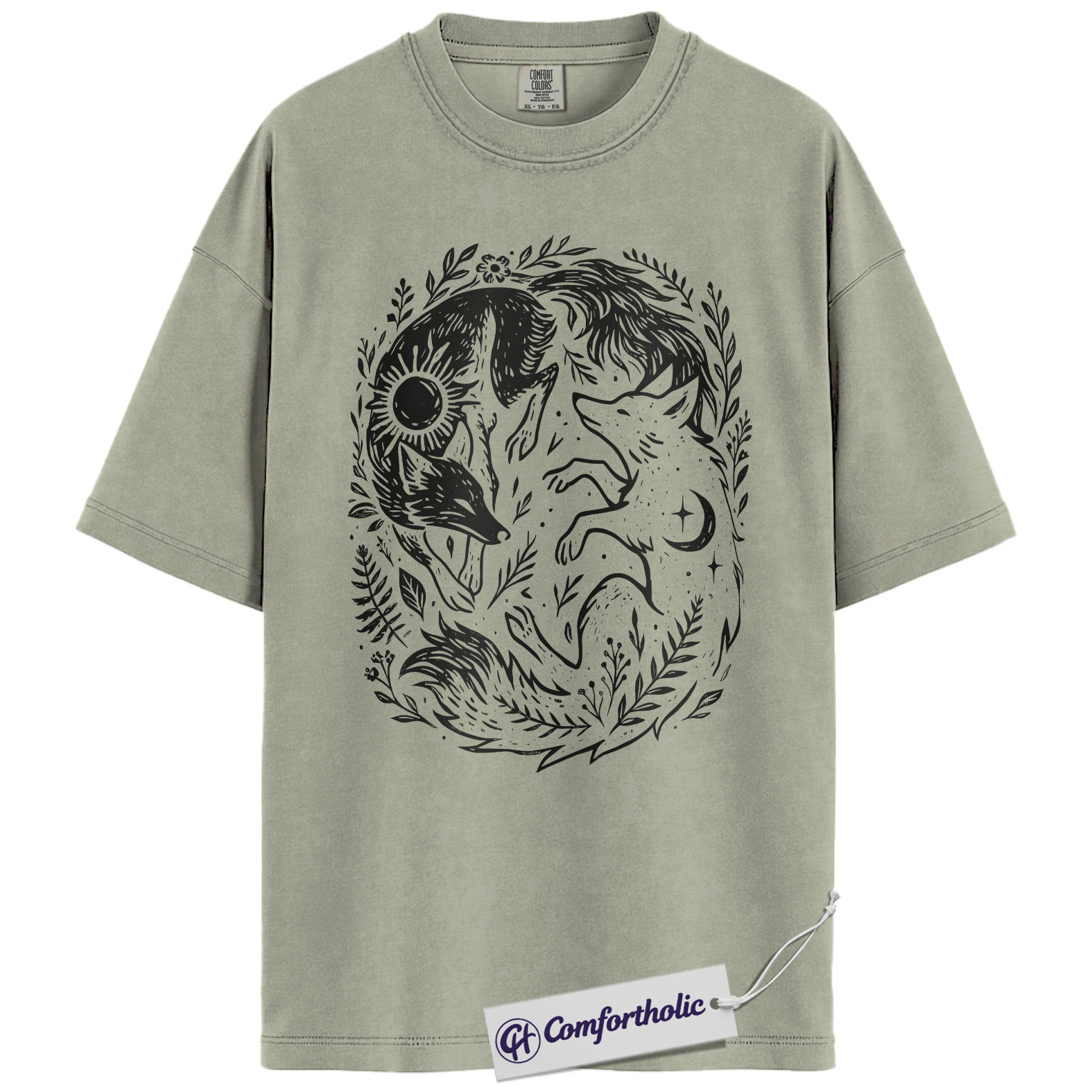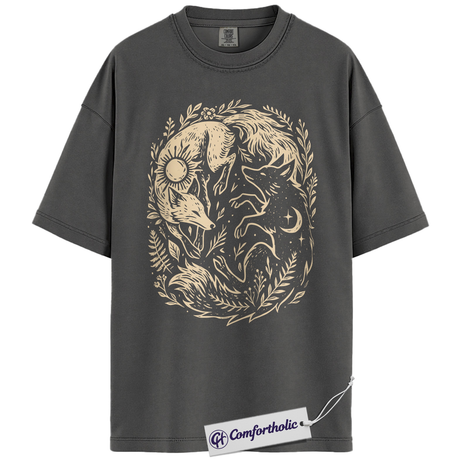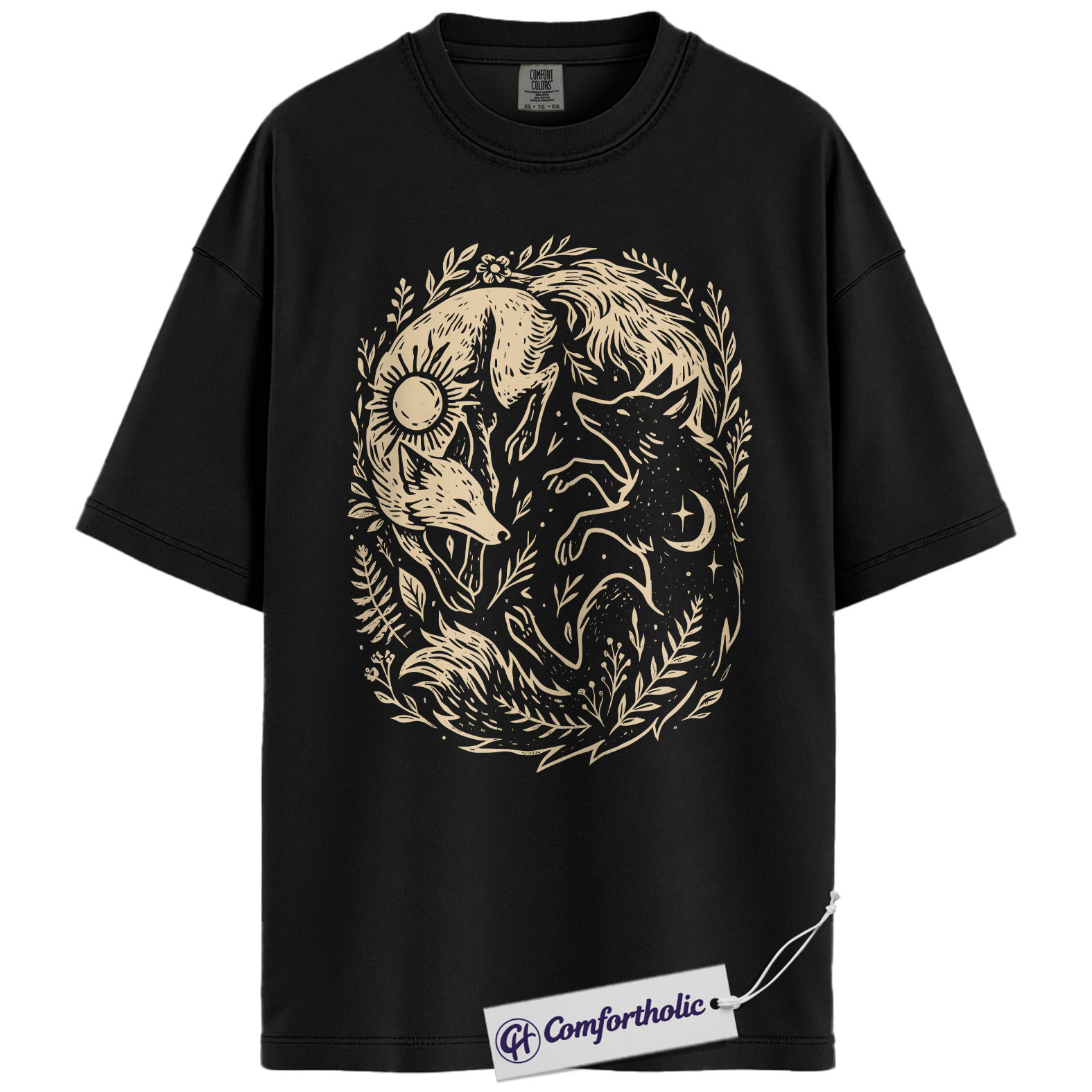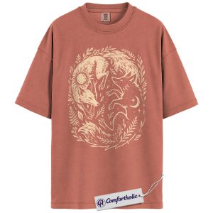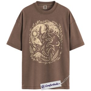 Sun and Moon Fox Shirt, Yin Yang Animal T-Shirt, Spiritual Nature Graphic Tee, Gift for Nature Lovers, Celestial Comfort Colors Shirt