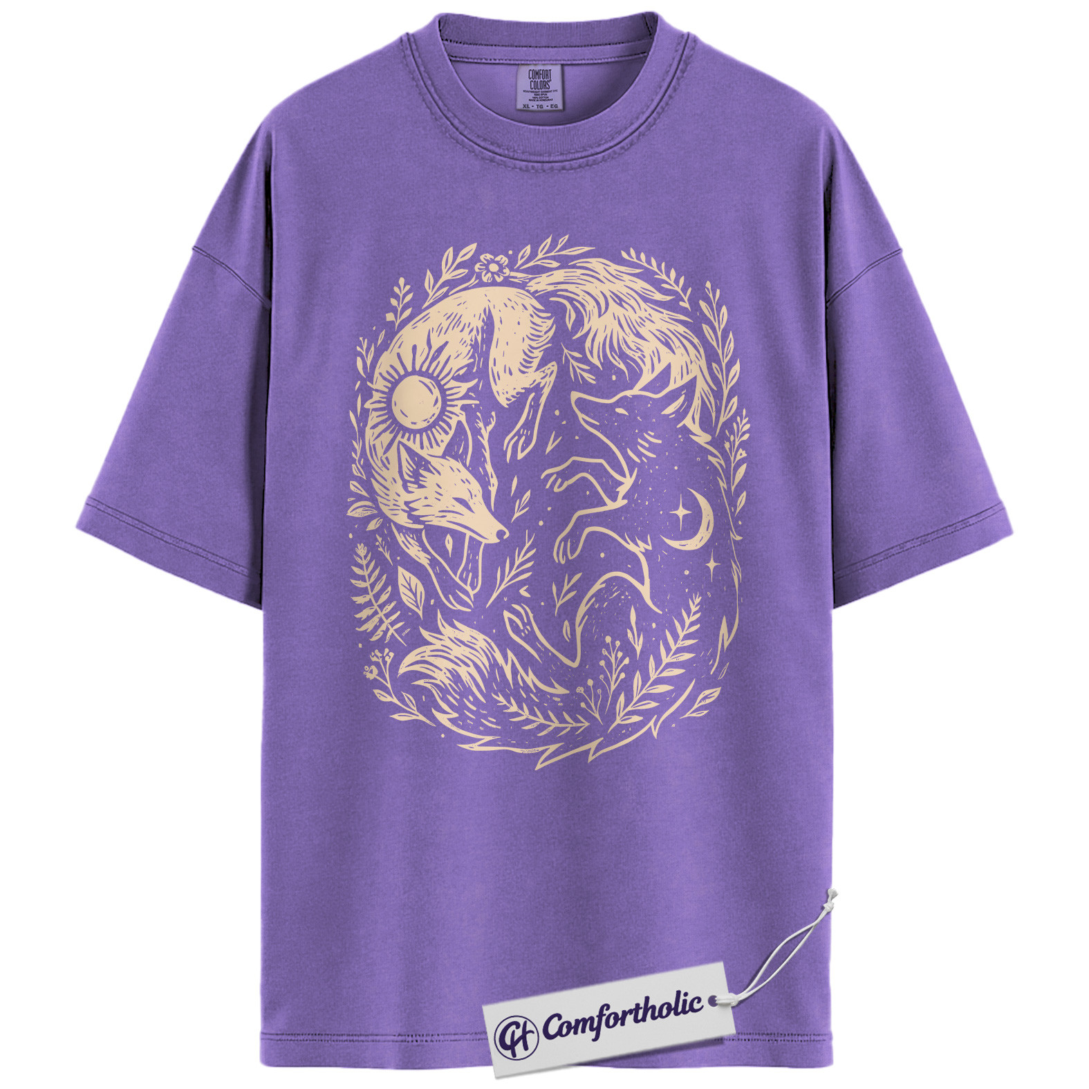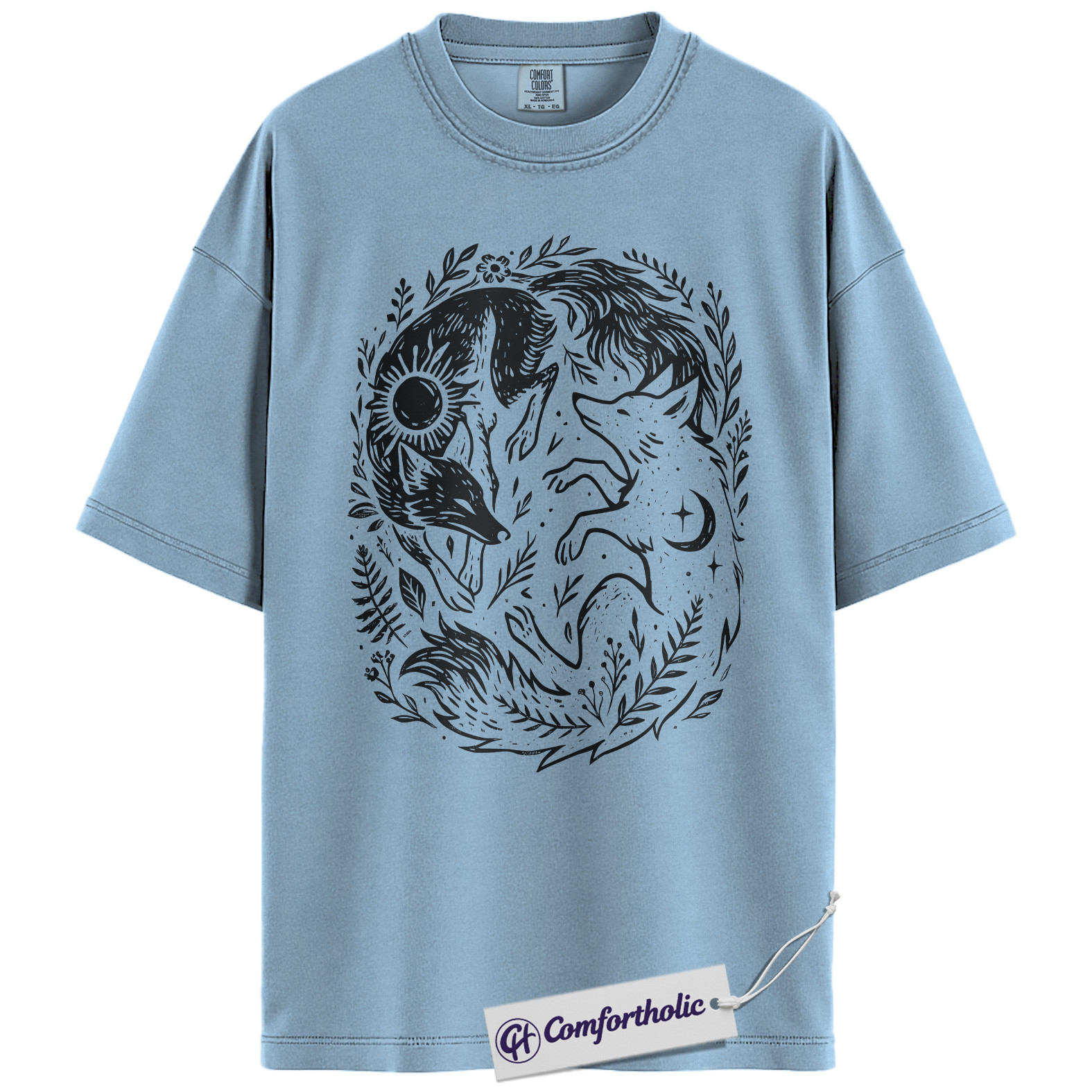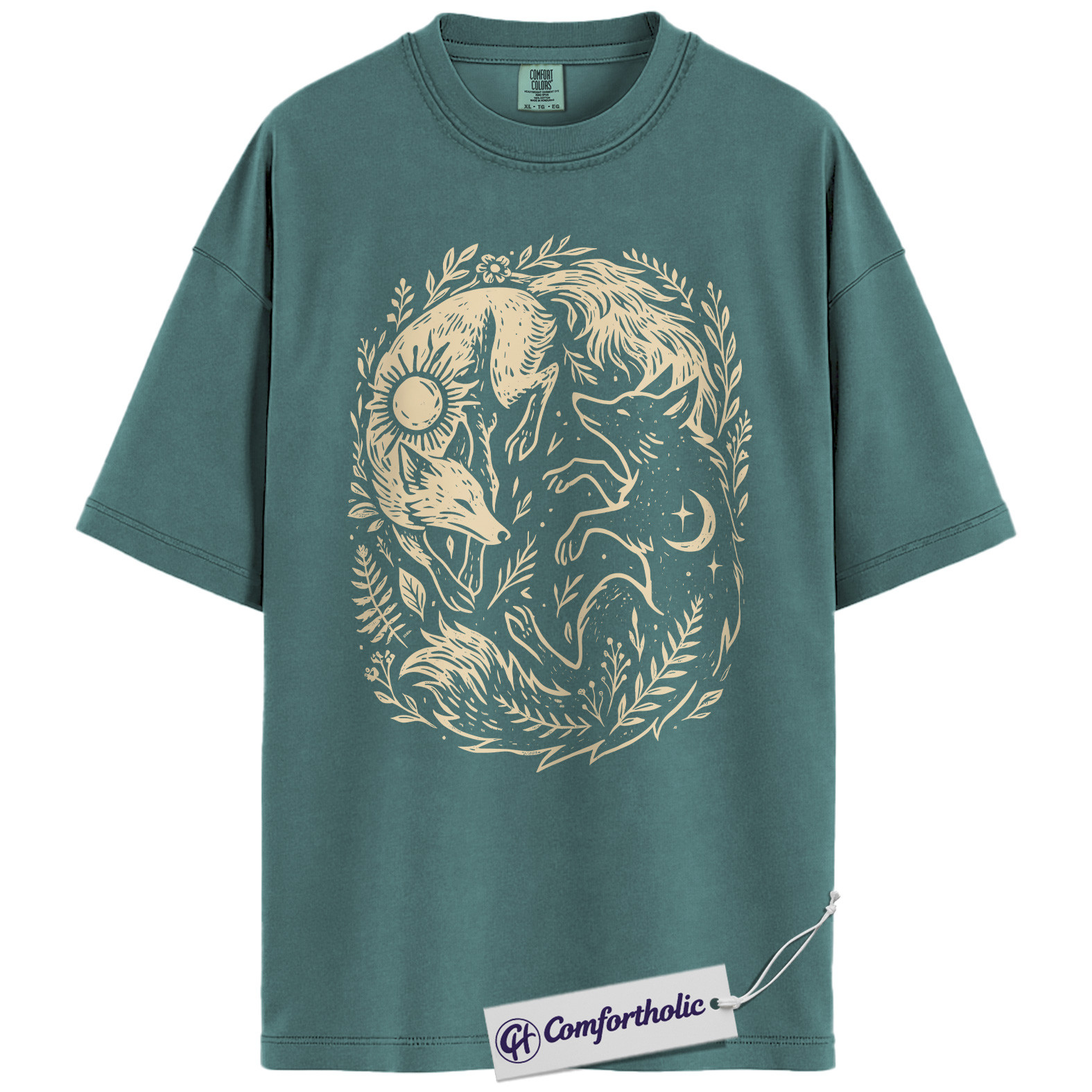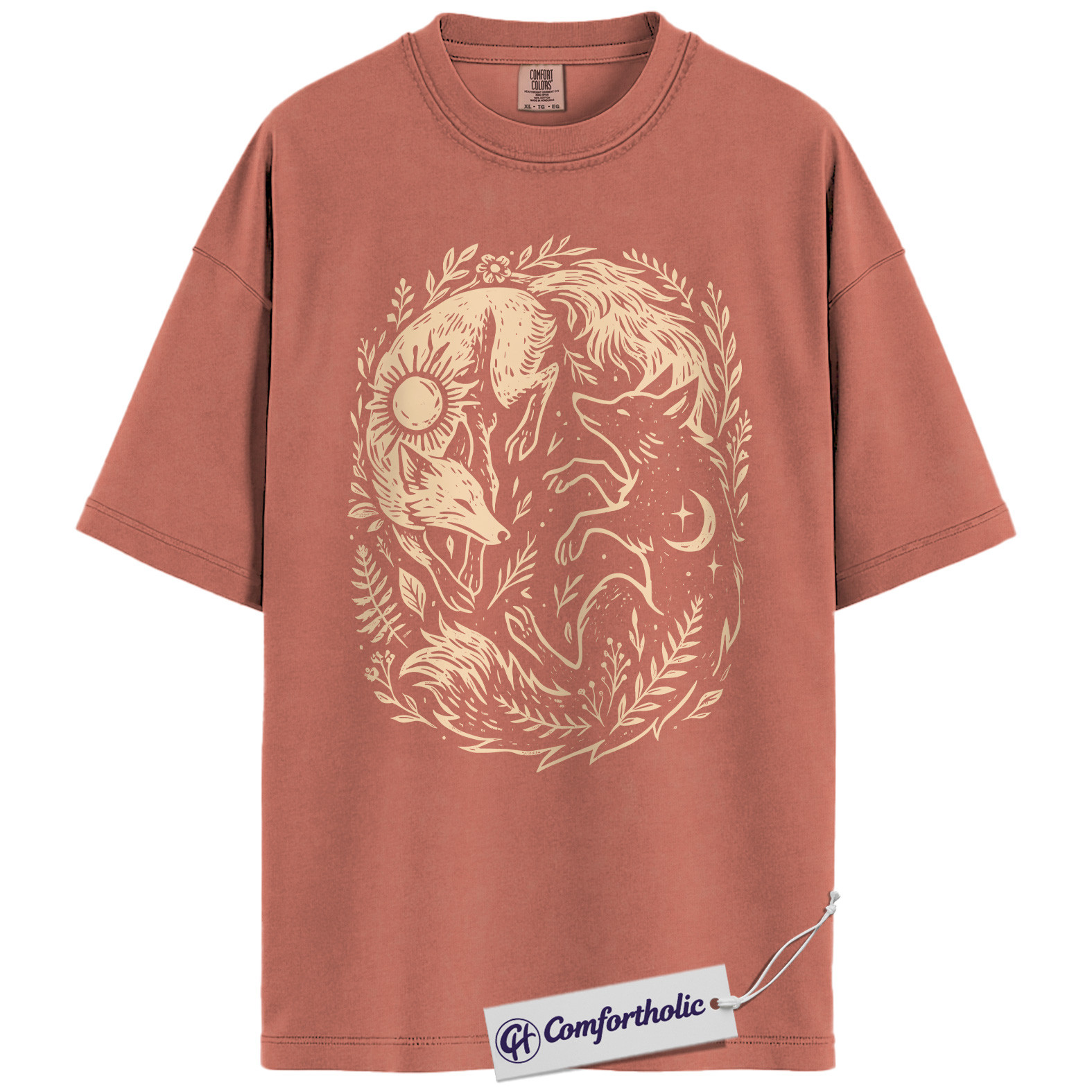 Sun and Moon Fox Shirt, Yin Yang Animal T-Shirt, Spiritual Nature Graphic Tee, Gift for Nature Lovers, Celestial Comfort Colors Shirt