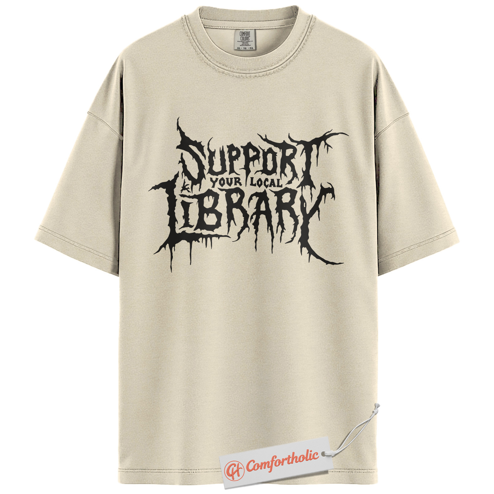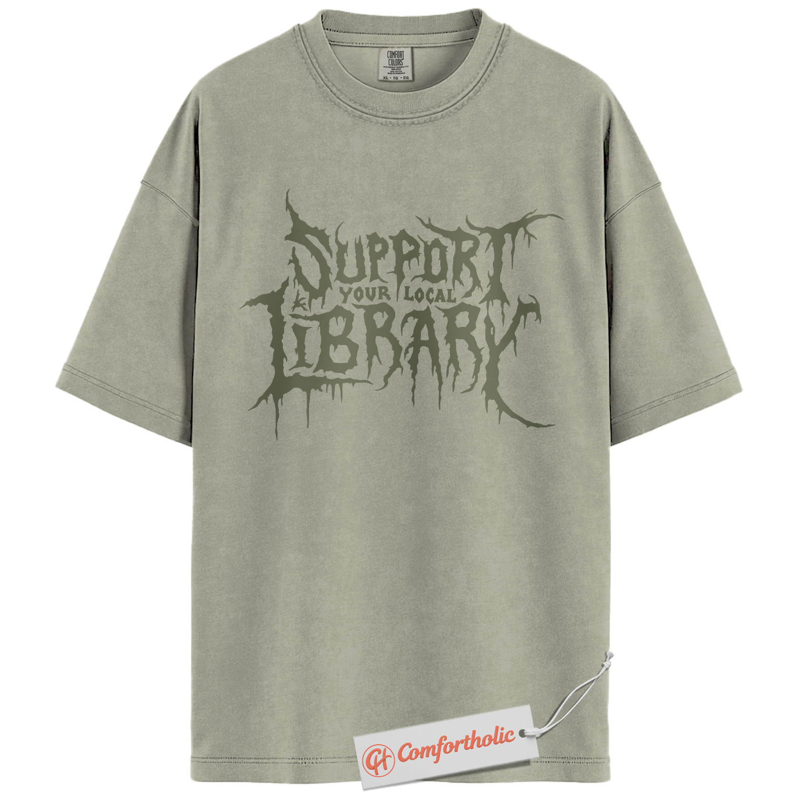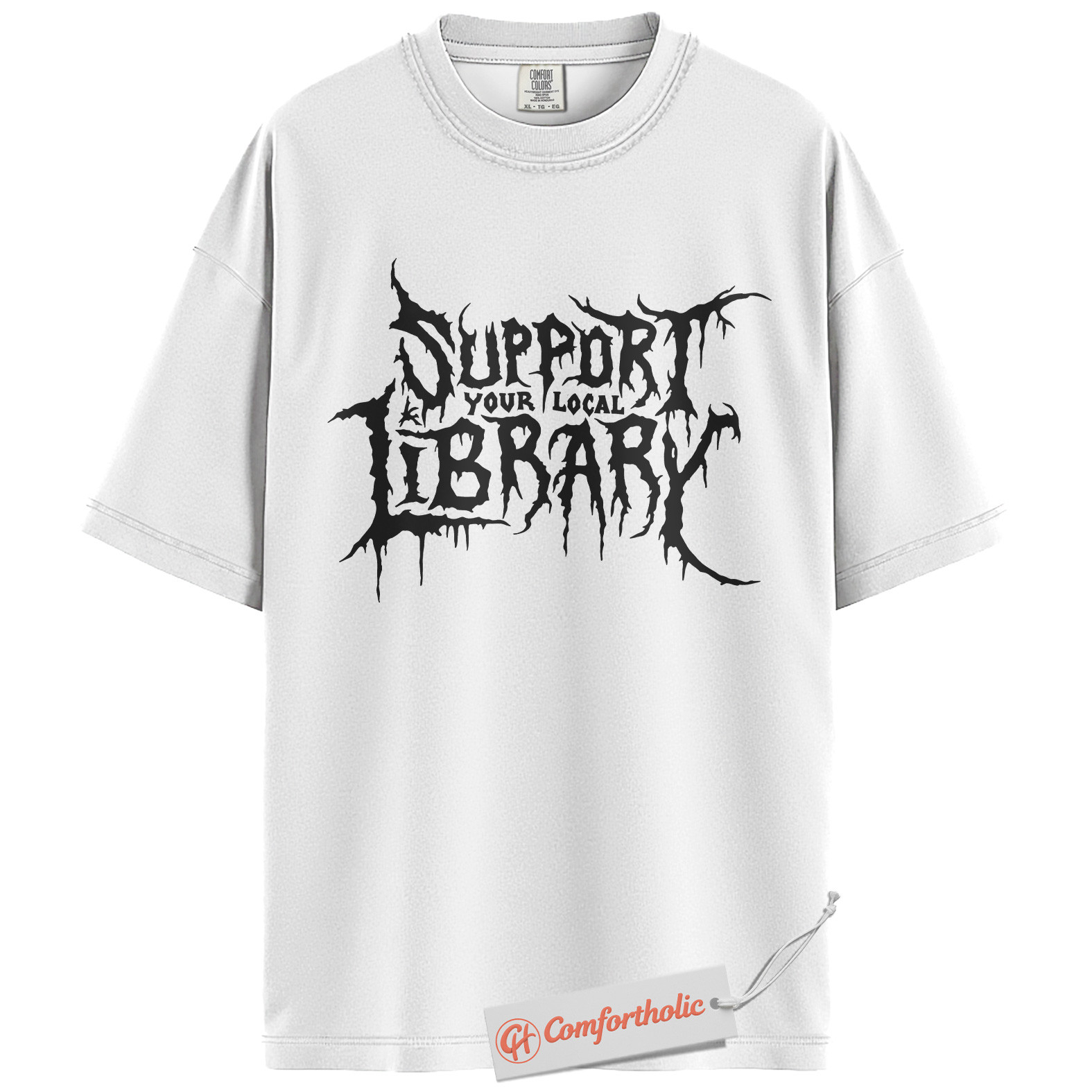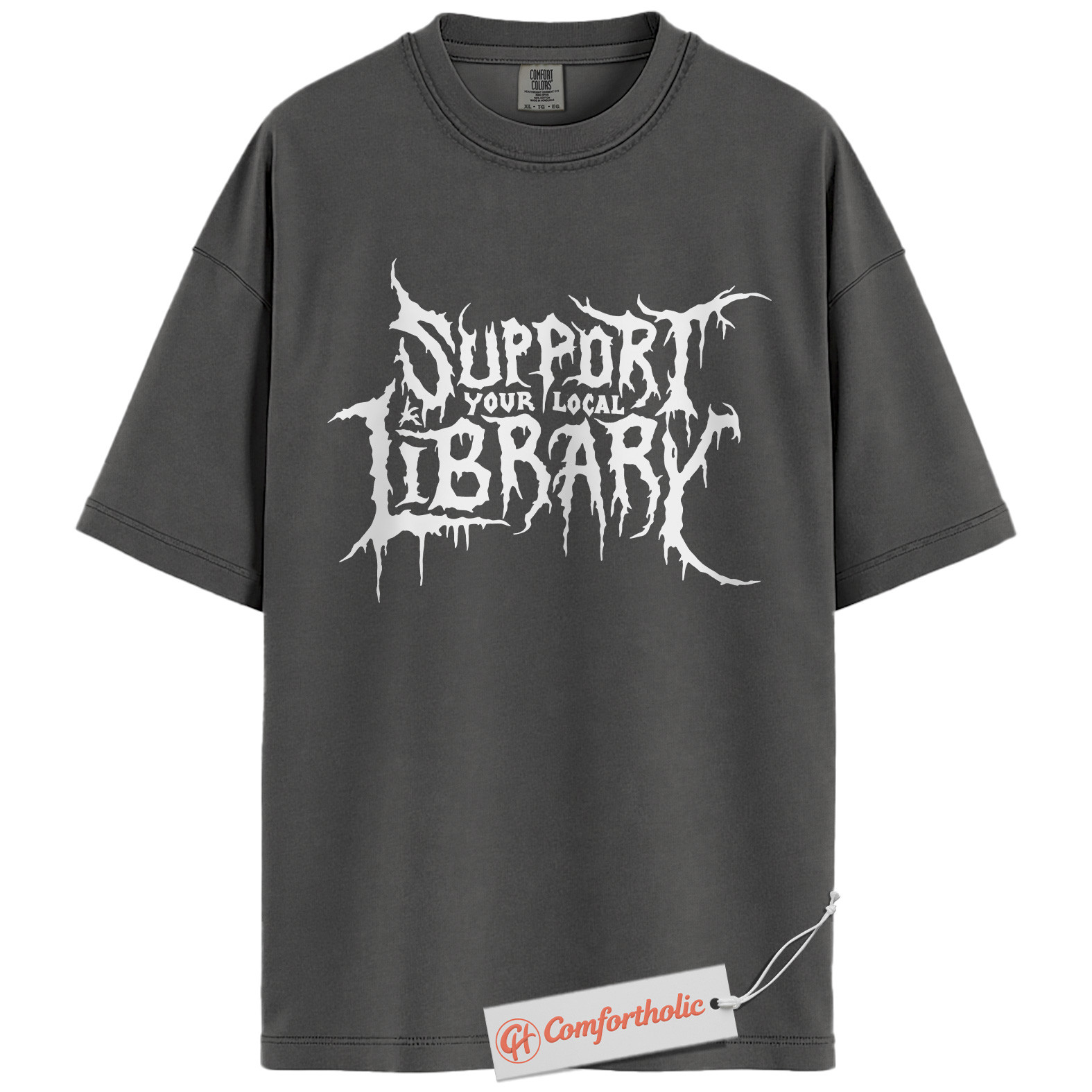 Support Your Local Library Shirt, Gothic Metal Style Book Lover Shirt, Dark Academia Shirt, Reading Shirt, Librarian Comfort Colors Shirt