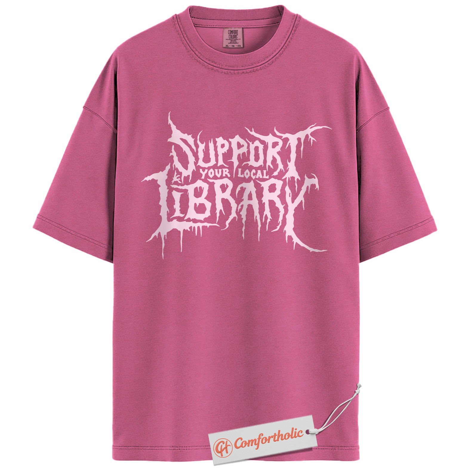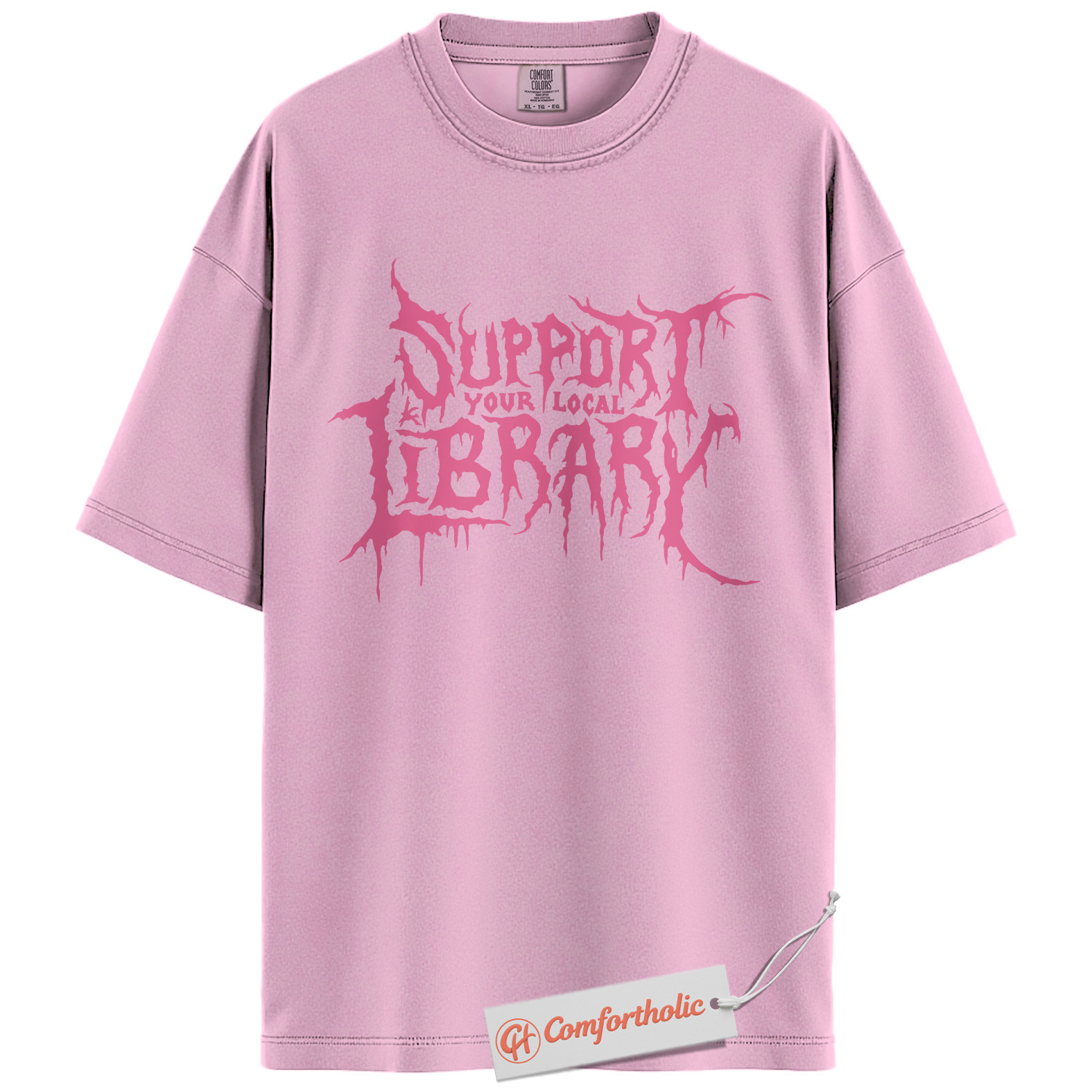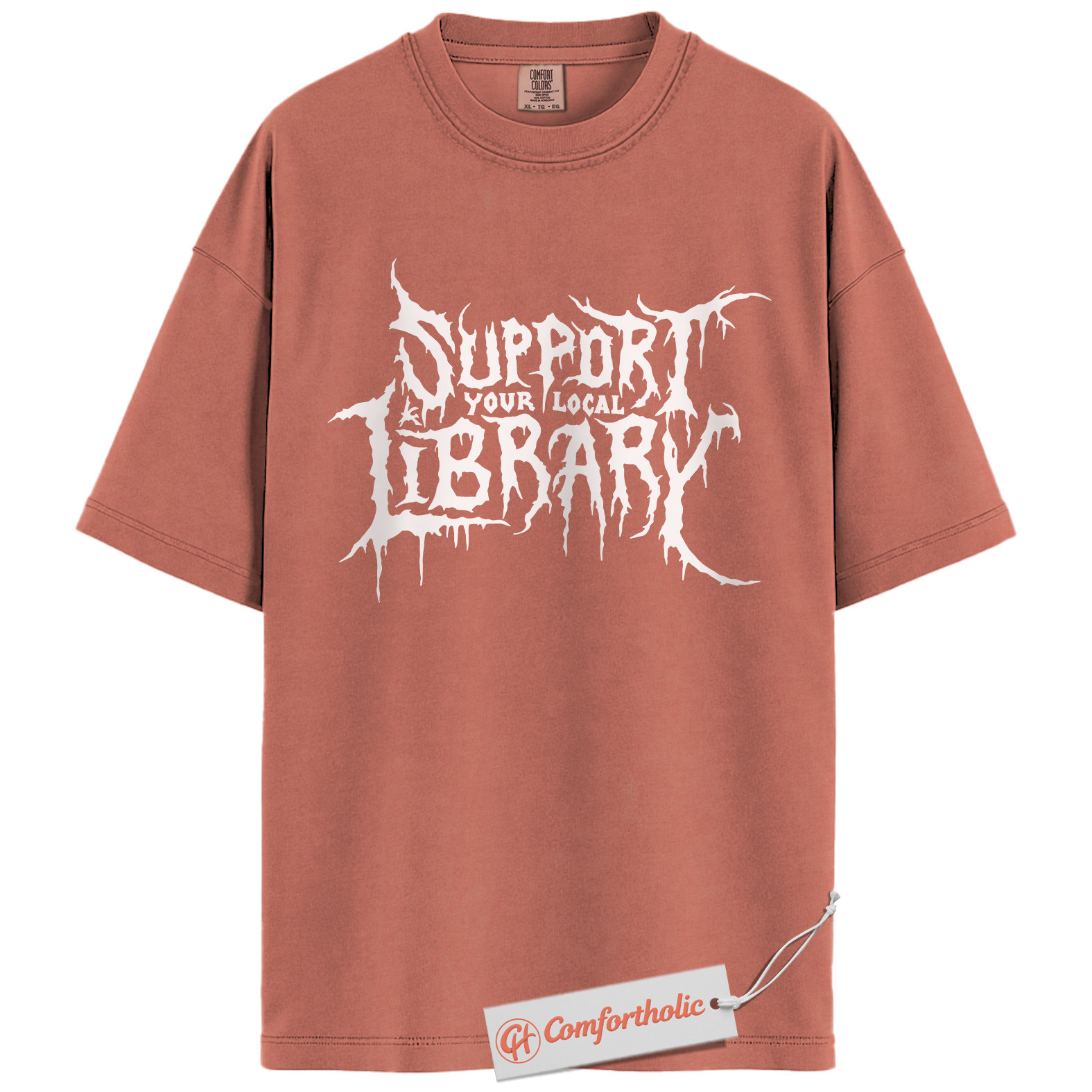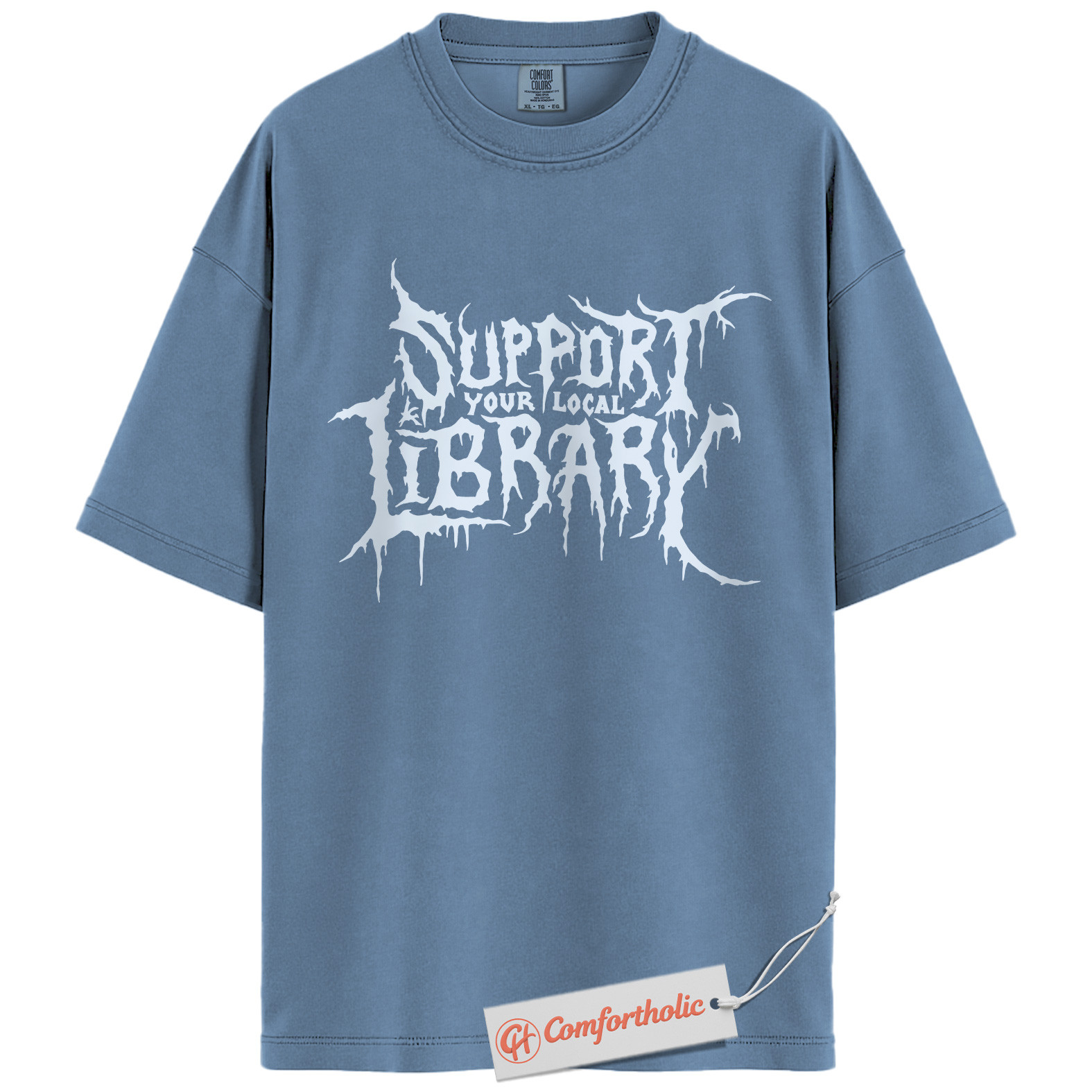 Support Your Local Library Shirt, Gothic Metal Style Book Lover Shirt, Dark Academia Shirt, Reading Shirt, Librarian Comfort Colors Shirt