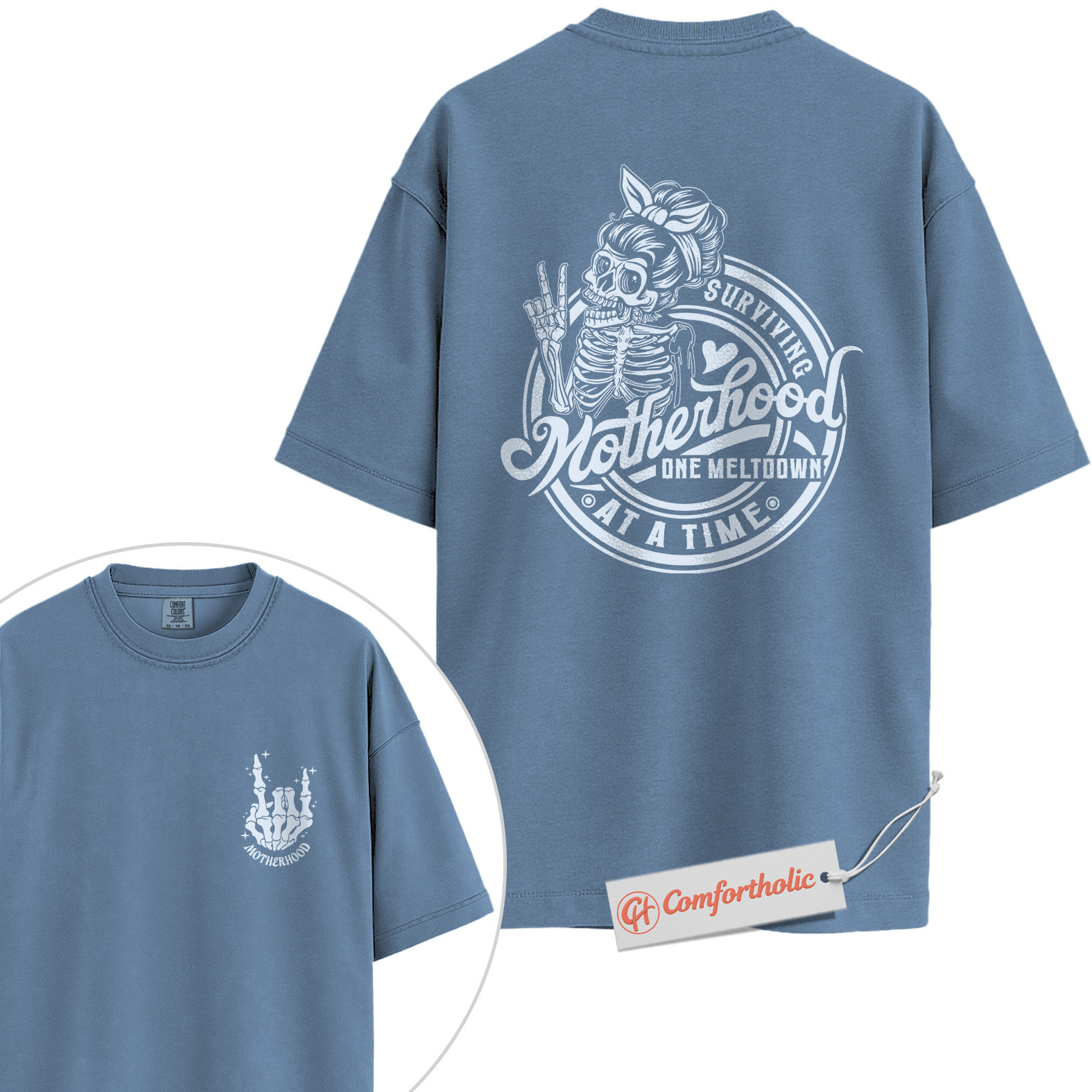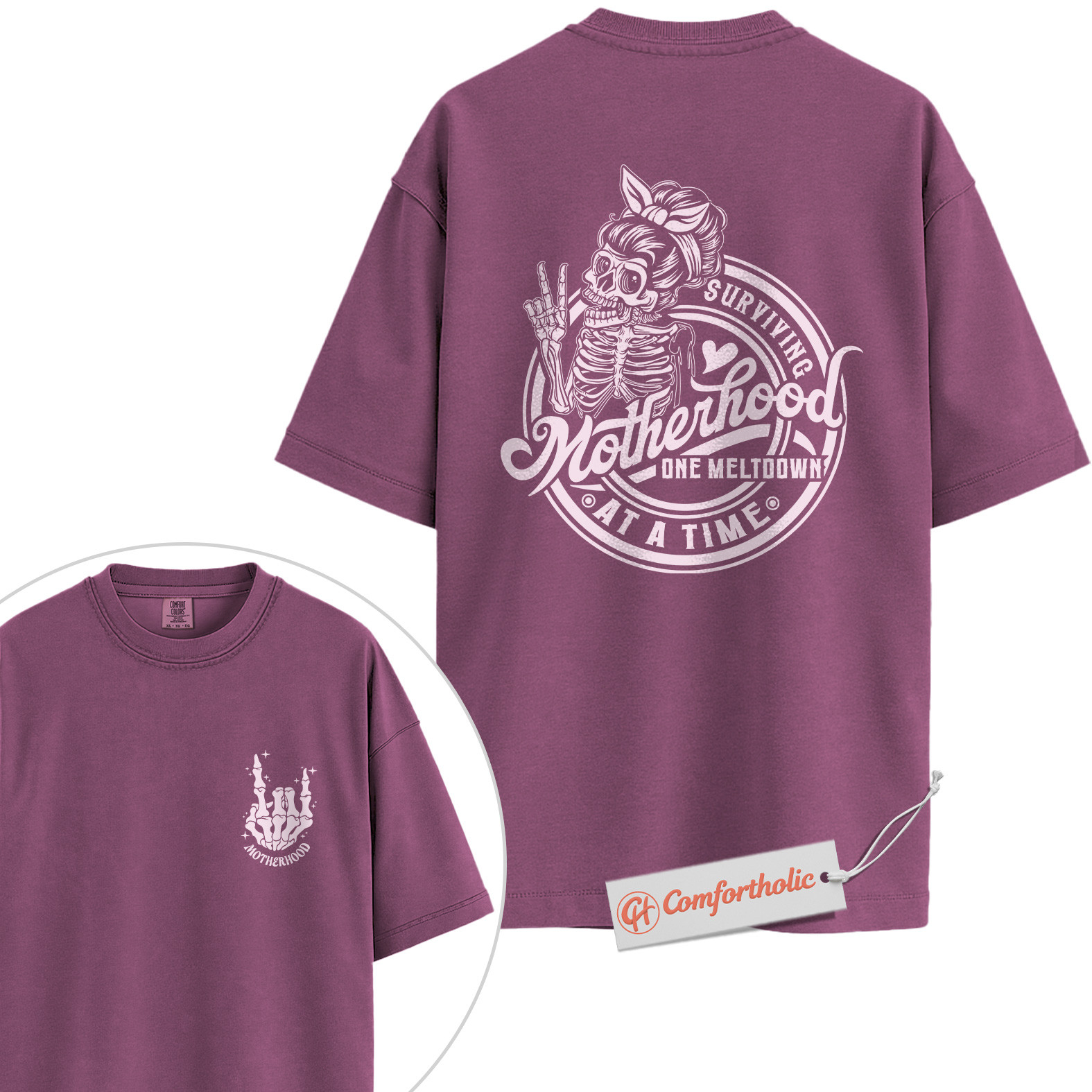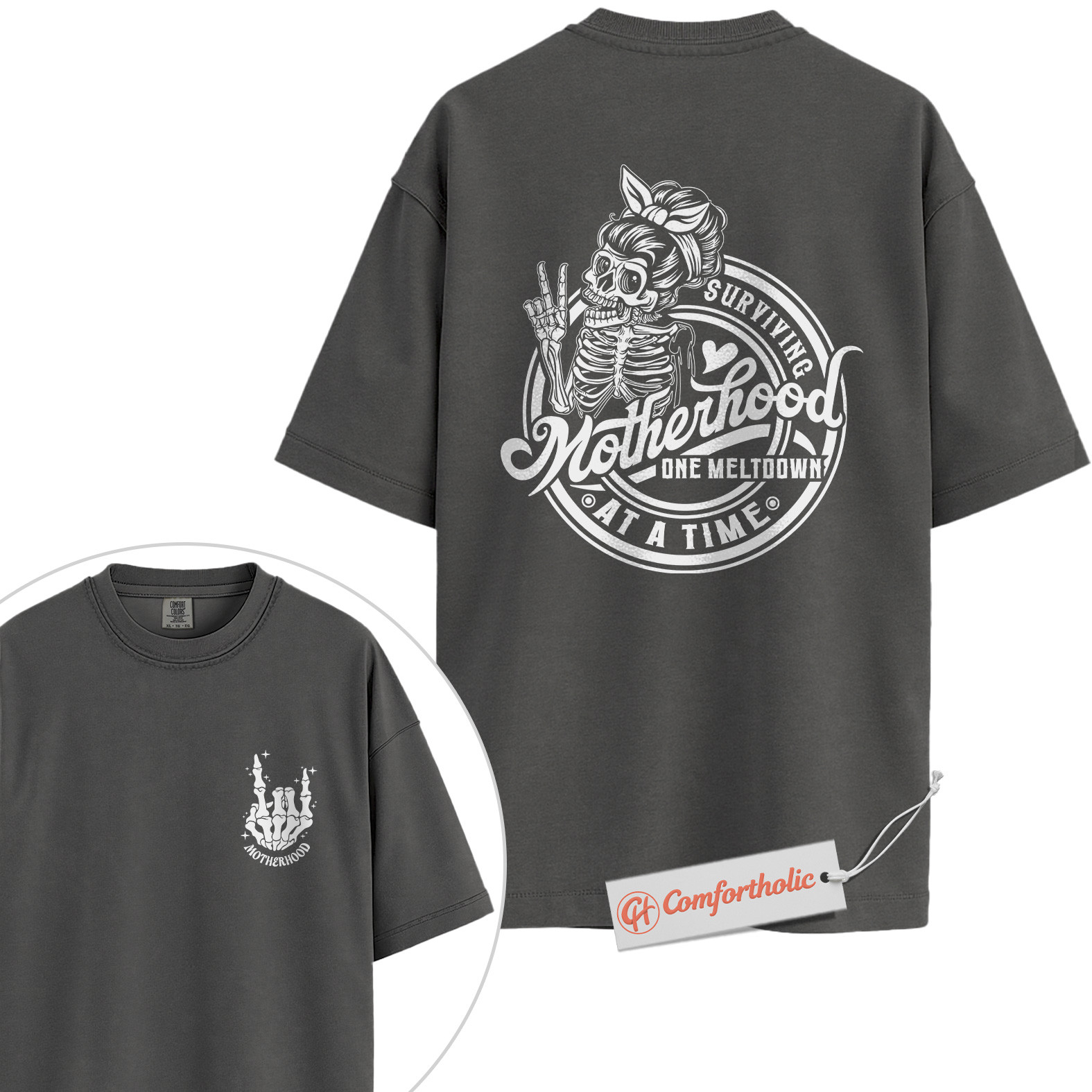 Surviving Motherhood Shirt, Funny Skeleton Mom Shirt, Retro Mom Life Shirt, Comfort Colors Shirt 2-Sided