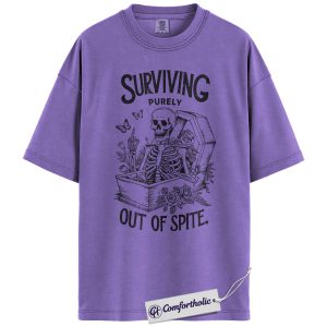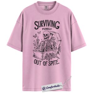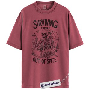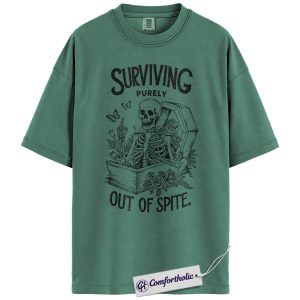 Surviving Out of Spite Shirt, Funny Skeleton Coffin T-Shirt, Dark Humor Graphic Tee, Sarcastic Aesthetic Comfort Colors Shirt