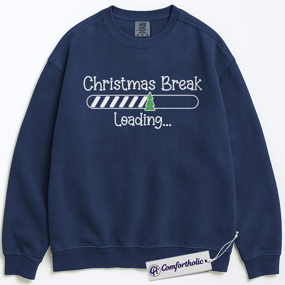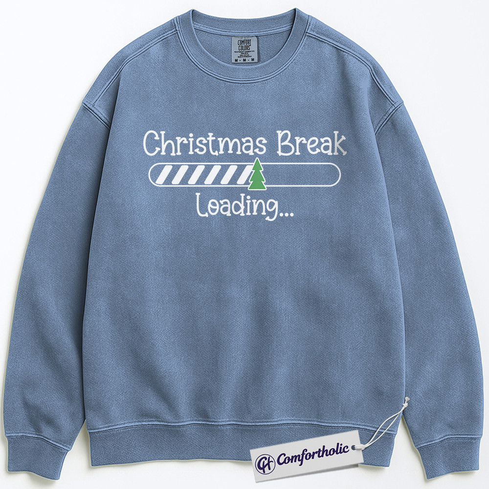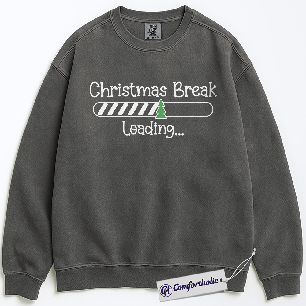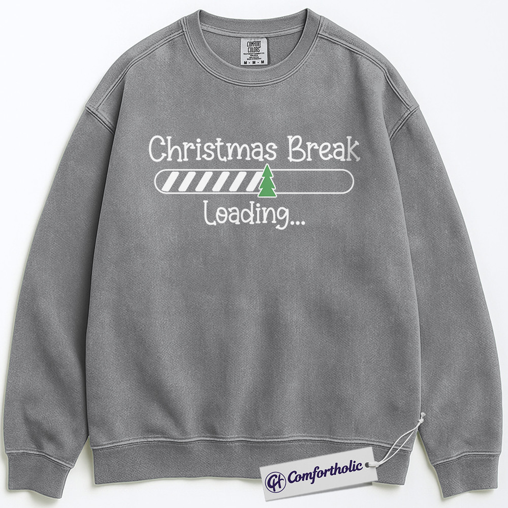 Teacher Christmas Break Loading Sweatshirt, Funny Holiday Teacher Pullover, Cute Countdown Graphic Crewneck, Holiday Vacation Gift for Students & Educators, Christmas Comfort Colors Sweatshirt