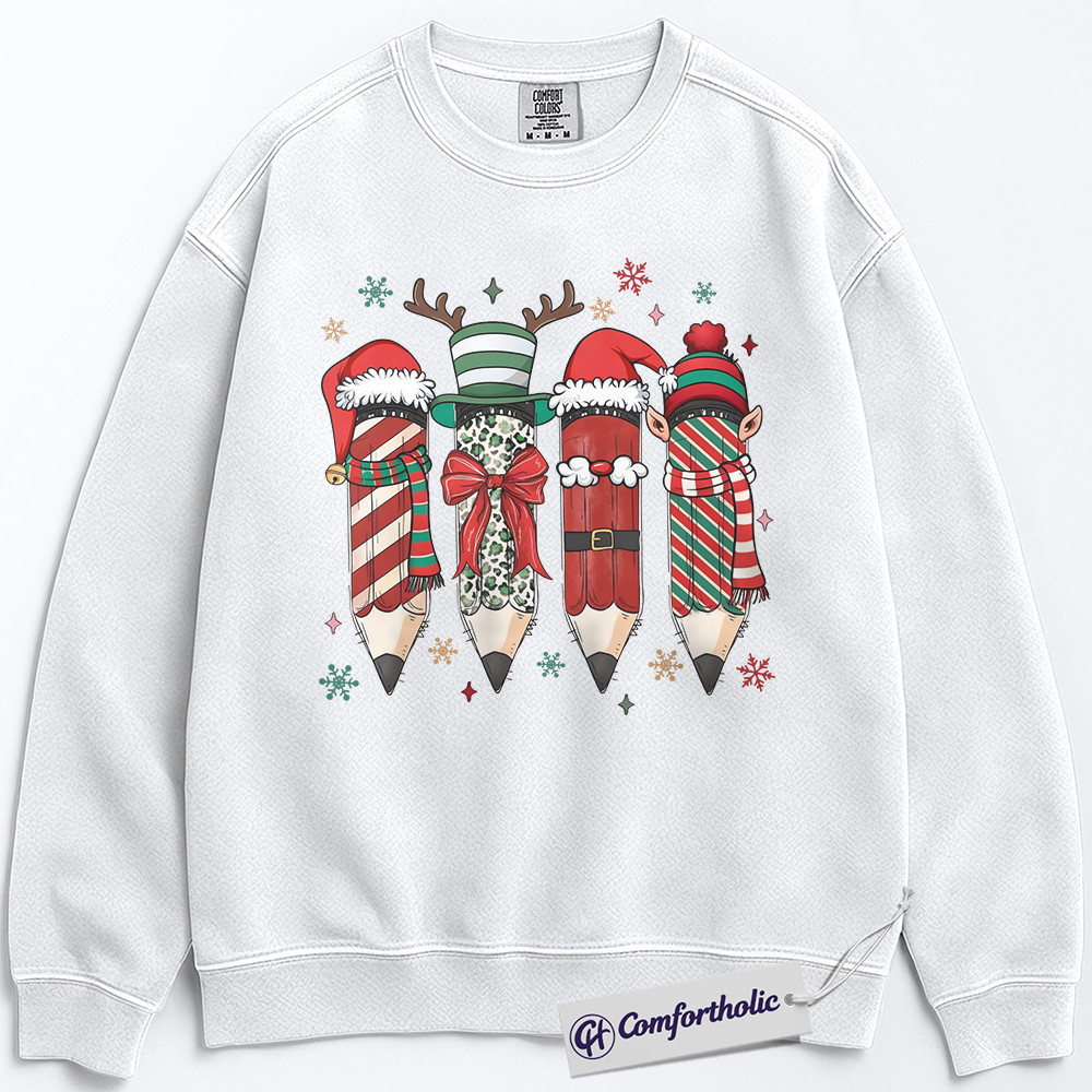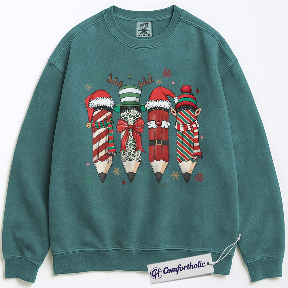 Teacher Christmas Sweatshirt, Cute Pencil Holiday Sweatshirt, Funny Classroom Graphic Sweatshirt, Festive Gift for Teachers, Christmas Comfort Colors Sweatshirt
