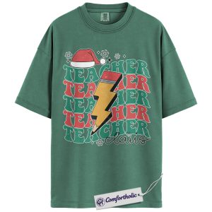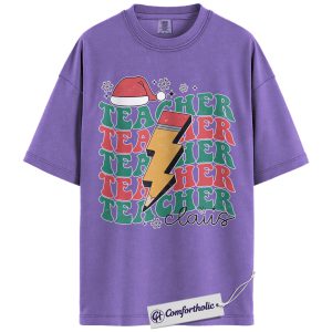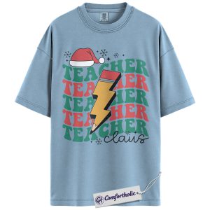Teacher Claus Christmas Shirt, Funny Holiday Teacher T-Shirt, Lightning Bolt Retro Graphic Tee, Cute Gift for Educators and School Staff, Christmas Comfort Colors Shirt