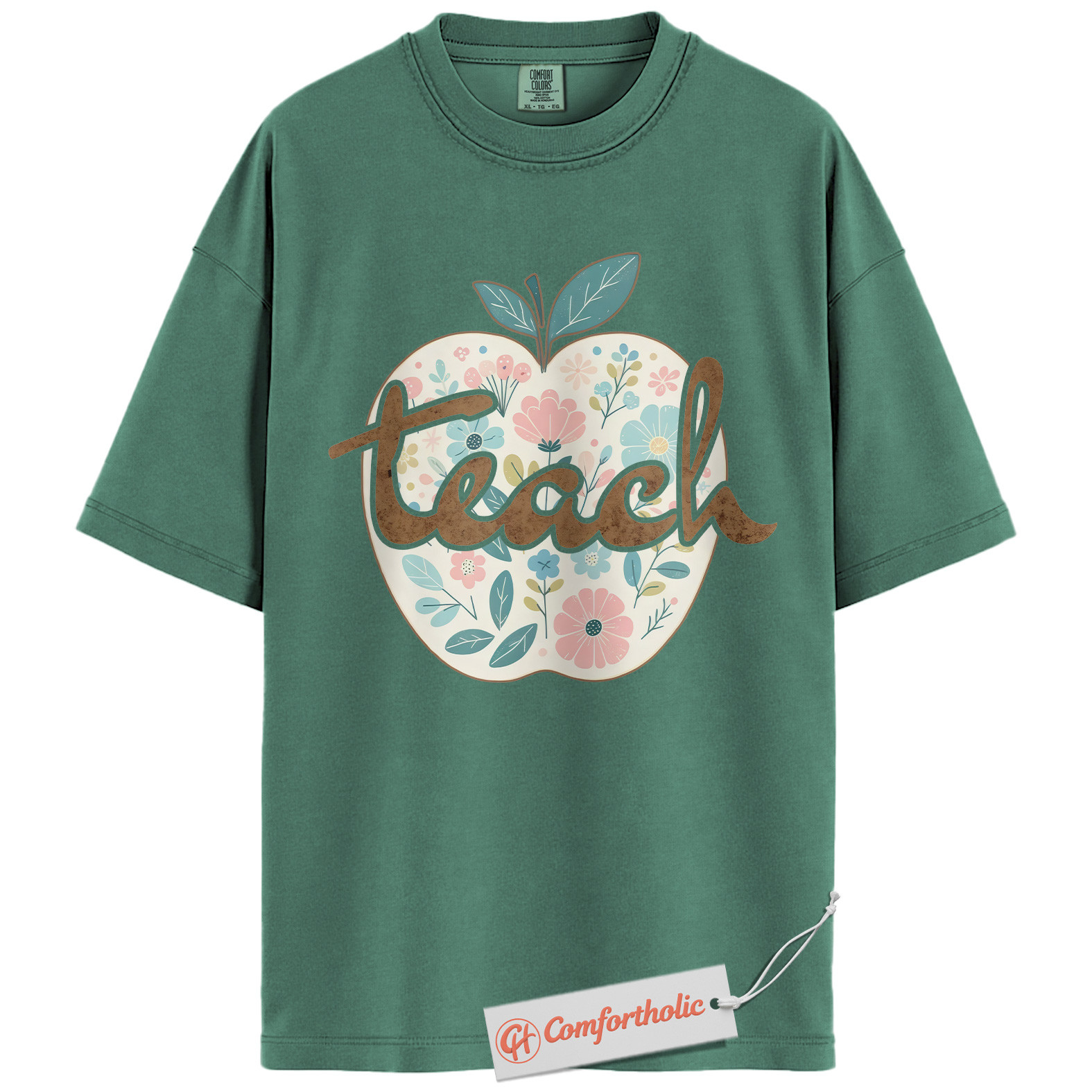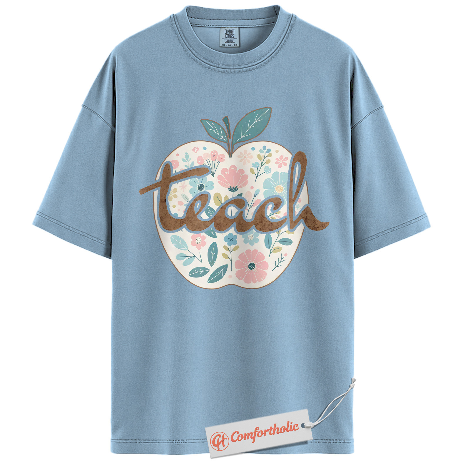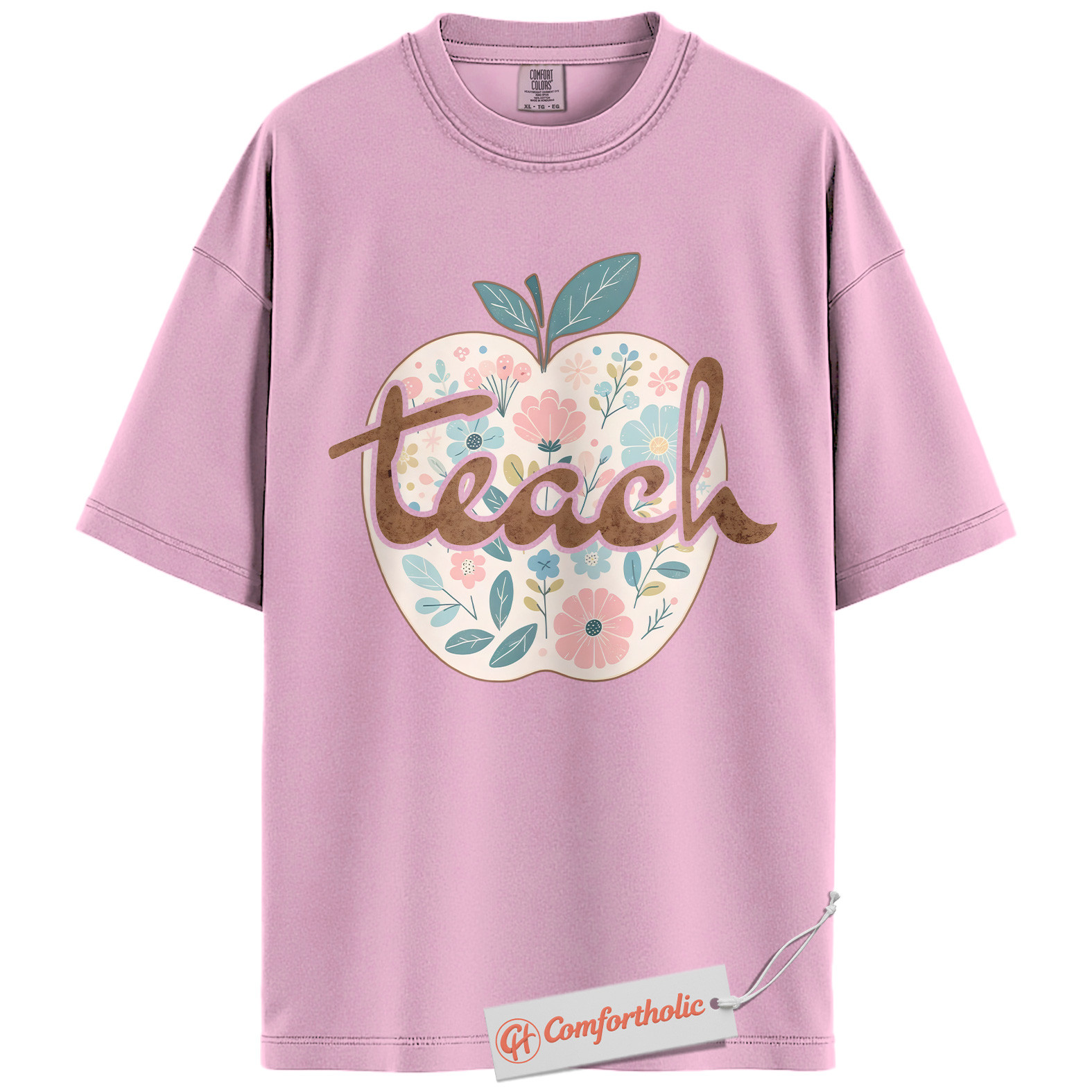 Teacher Shirt, Floral Apple Teach Shirt, Cute Back to School Shirt, Educator Comfort Colors Shirt