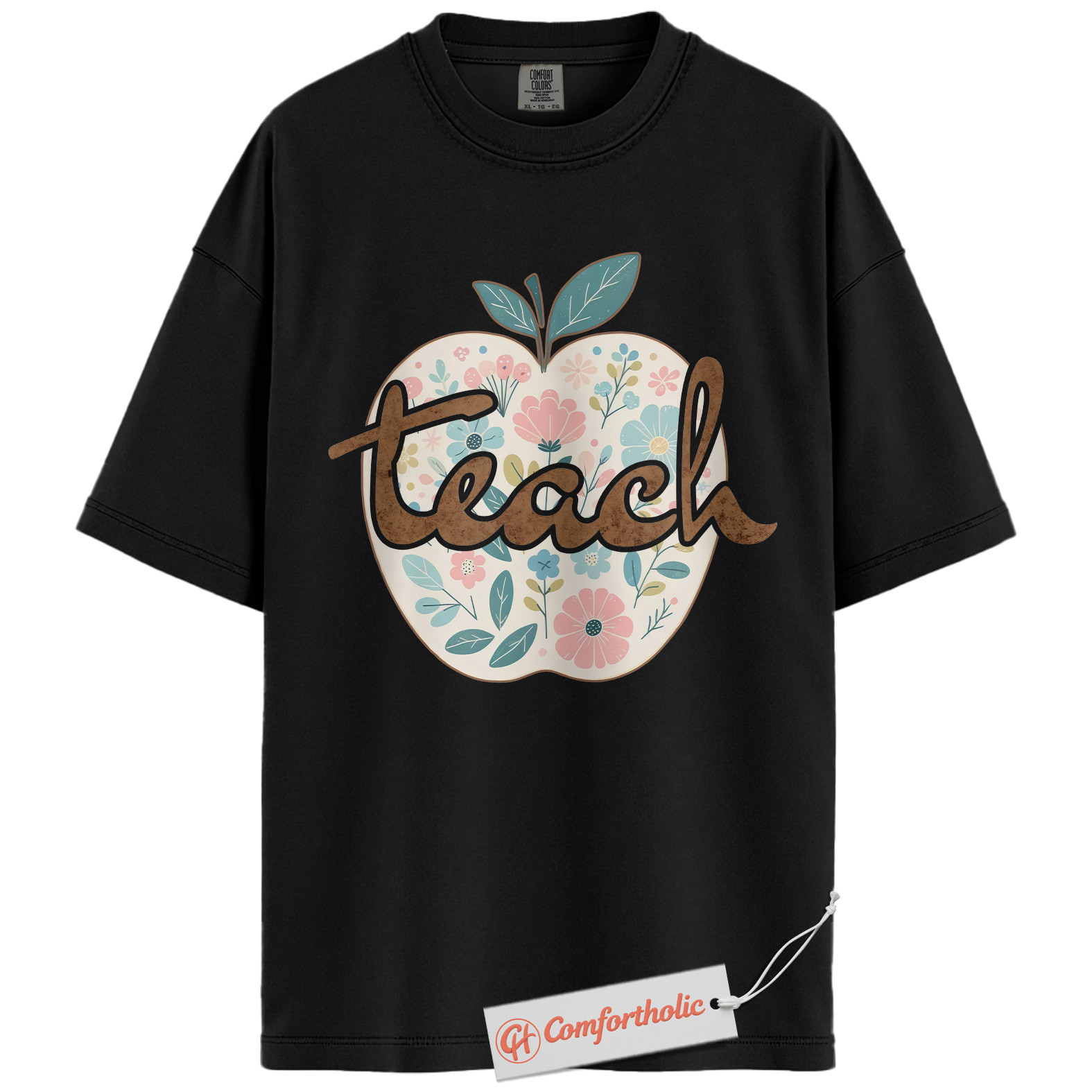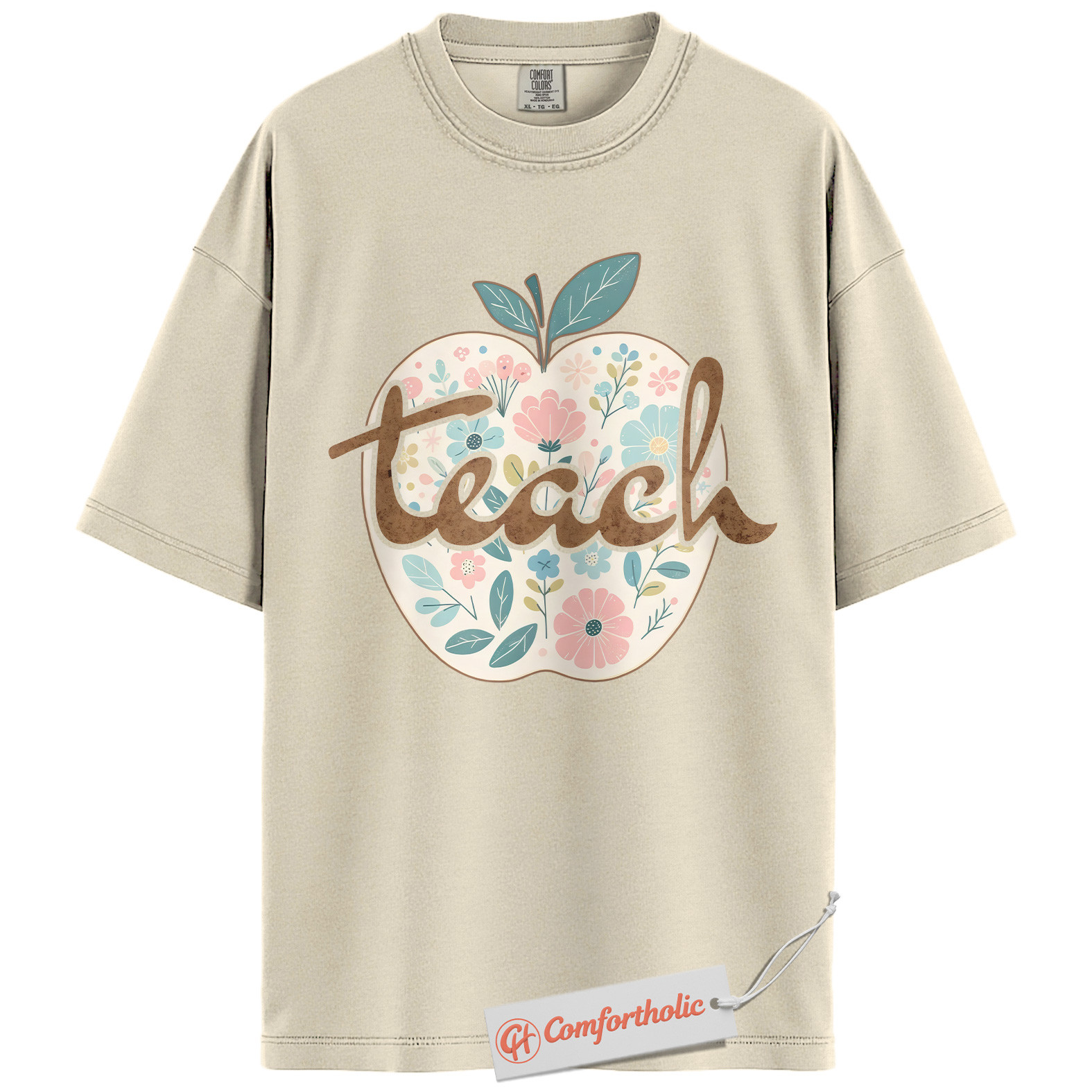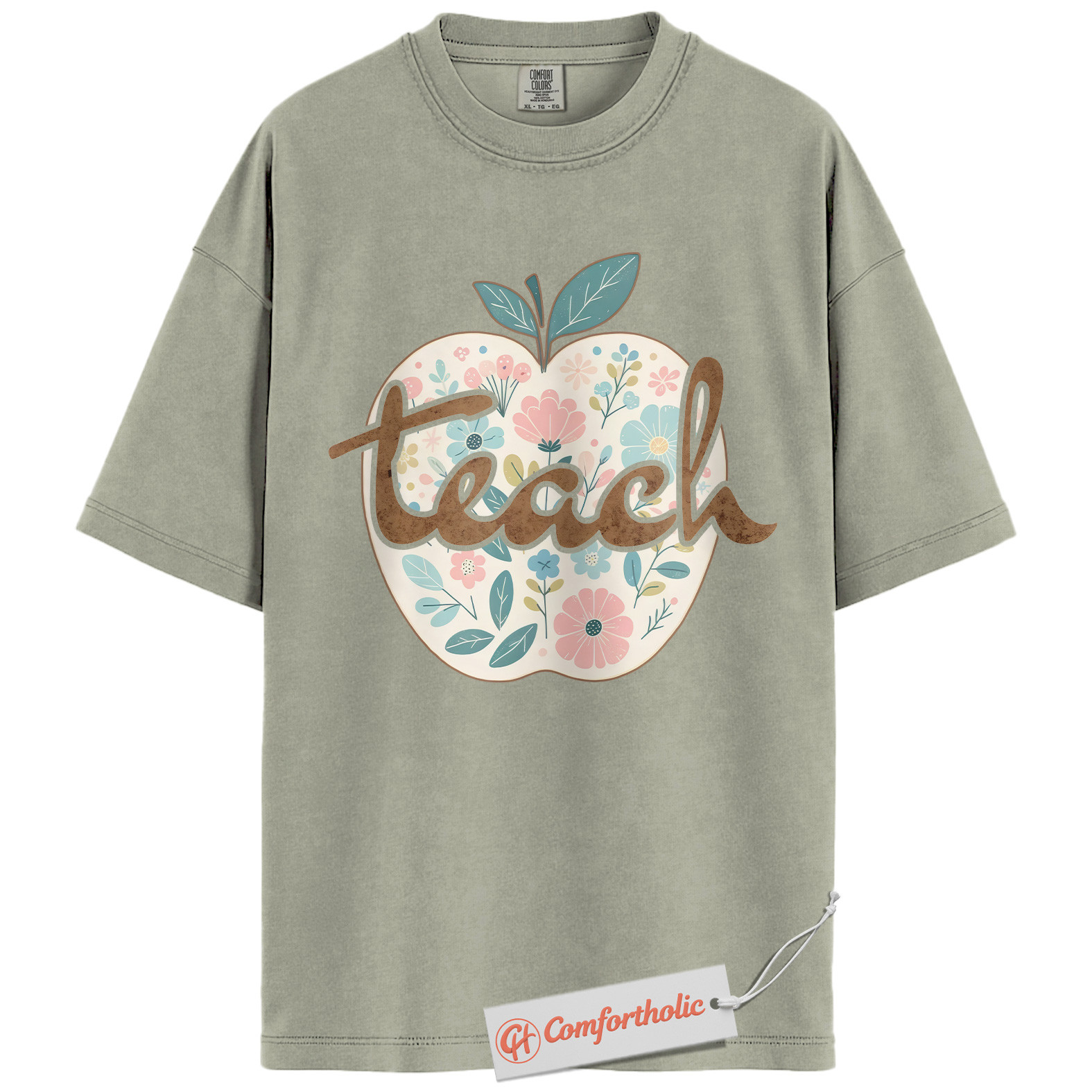 Teacher Shirt, Floral Apple Teach Shirt, Cute Back to School Shirt, Educator Comfort Colors Shirt