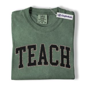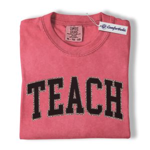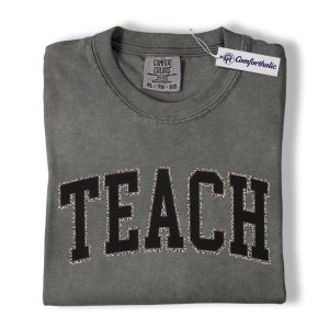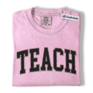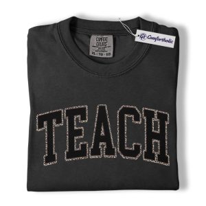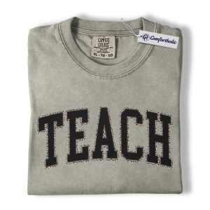 Teacher Shirt, Leopard Varsity TEACH Graphic Tee, Back to School T-Shirt for Teachers, Teacher Appreciation Gift, Comfort Colors Shirt