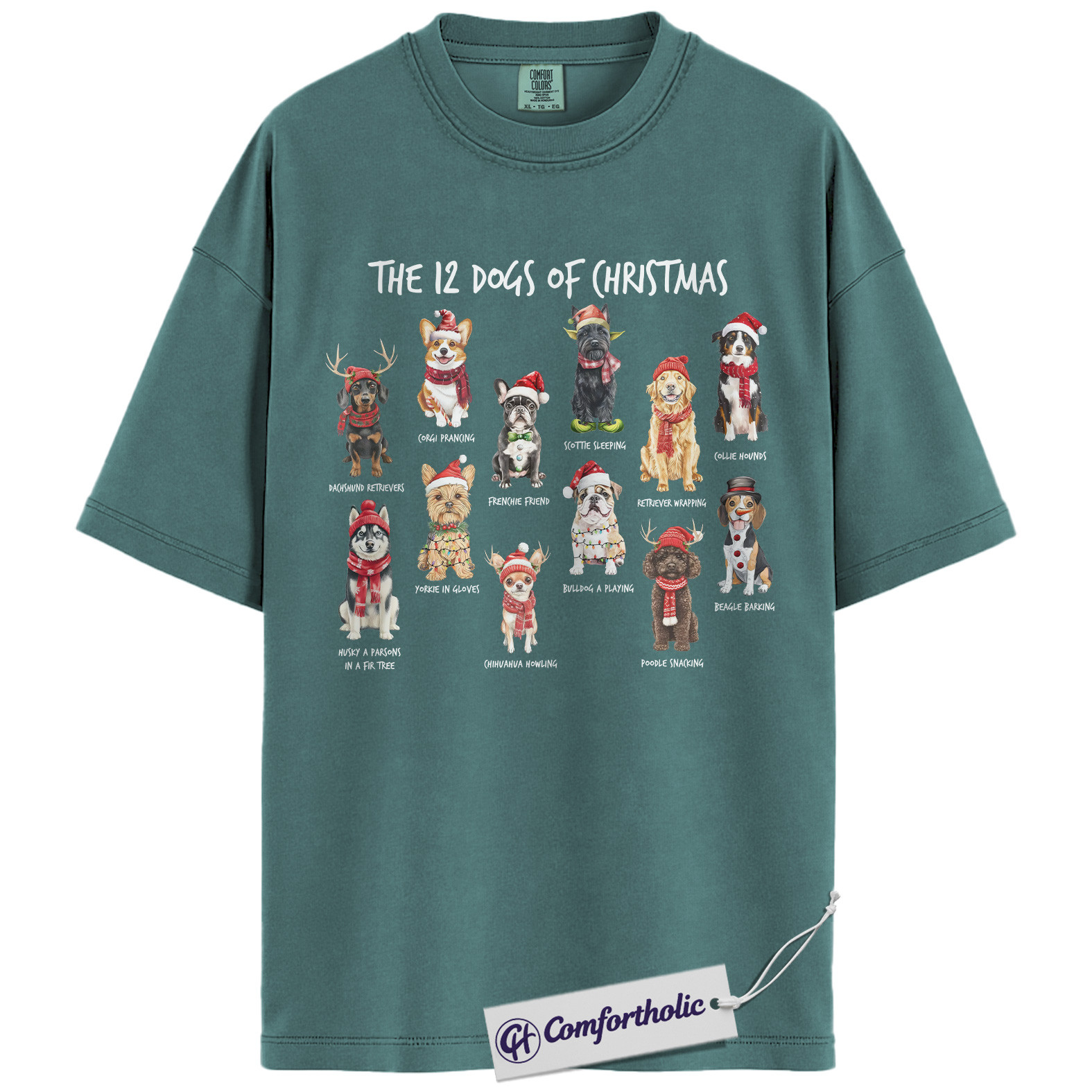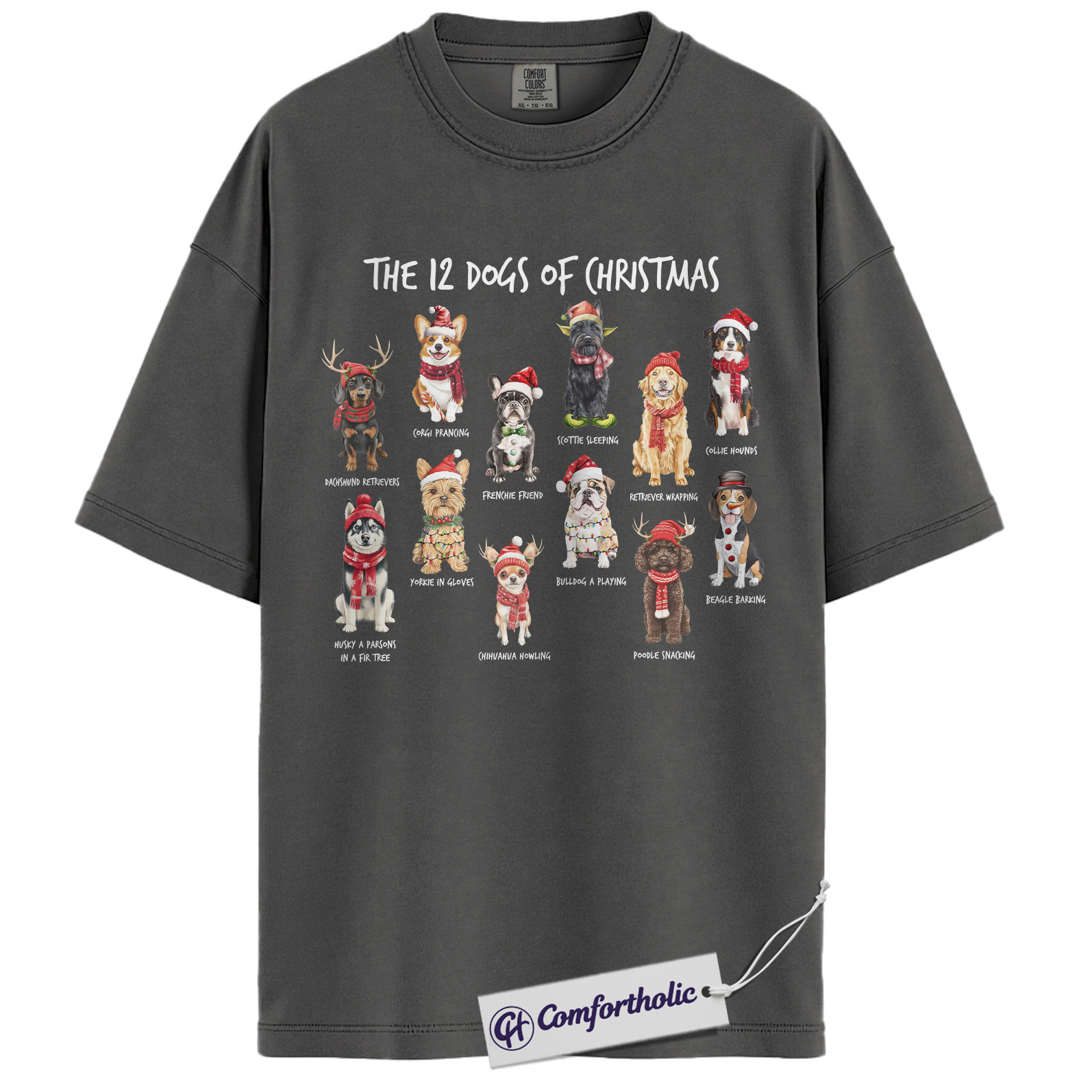 The 12 Dogs of Christmas Shirt, Funny Dog Lover Holiday T-Shirt, Cute Pet Breed Graphic Tee, Christmas Gift for Dog Moms and Animal Lovers, Christmas Comfort Colors Shirt