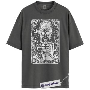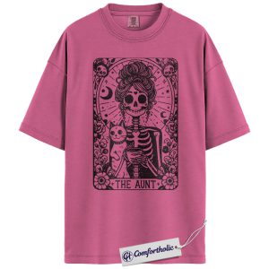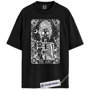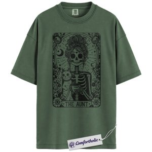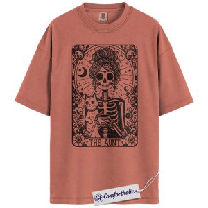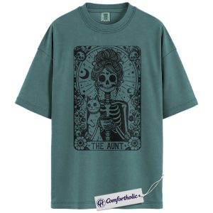 The Aunt Skeleton Shirt, Funny Gothic Aunt T-Shirt, Spooky Halloween Cat Lover Graphic Tee, Creepy Family Gift for Aunts, Family Comfort Colors Shirt