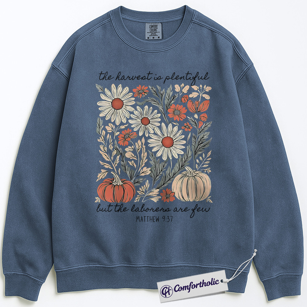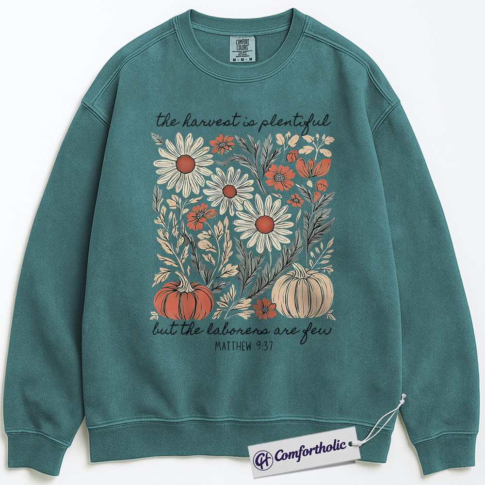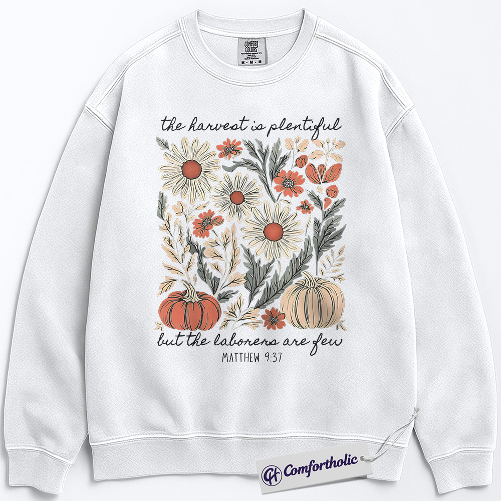 The Harvest is Plentiful Sweatshirt, Matthew 9:37 Bible Verse Pullover, Faith-Based Scripture Graphic Crewneck, Comfort Colors Sweatshirt