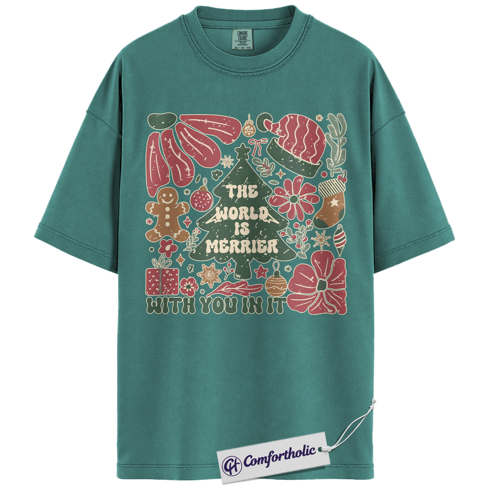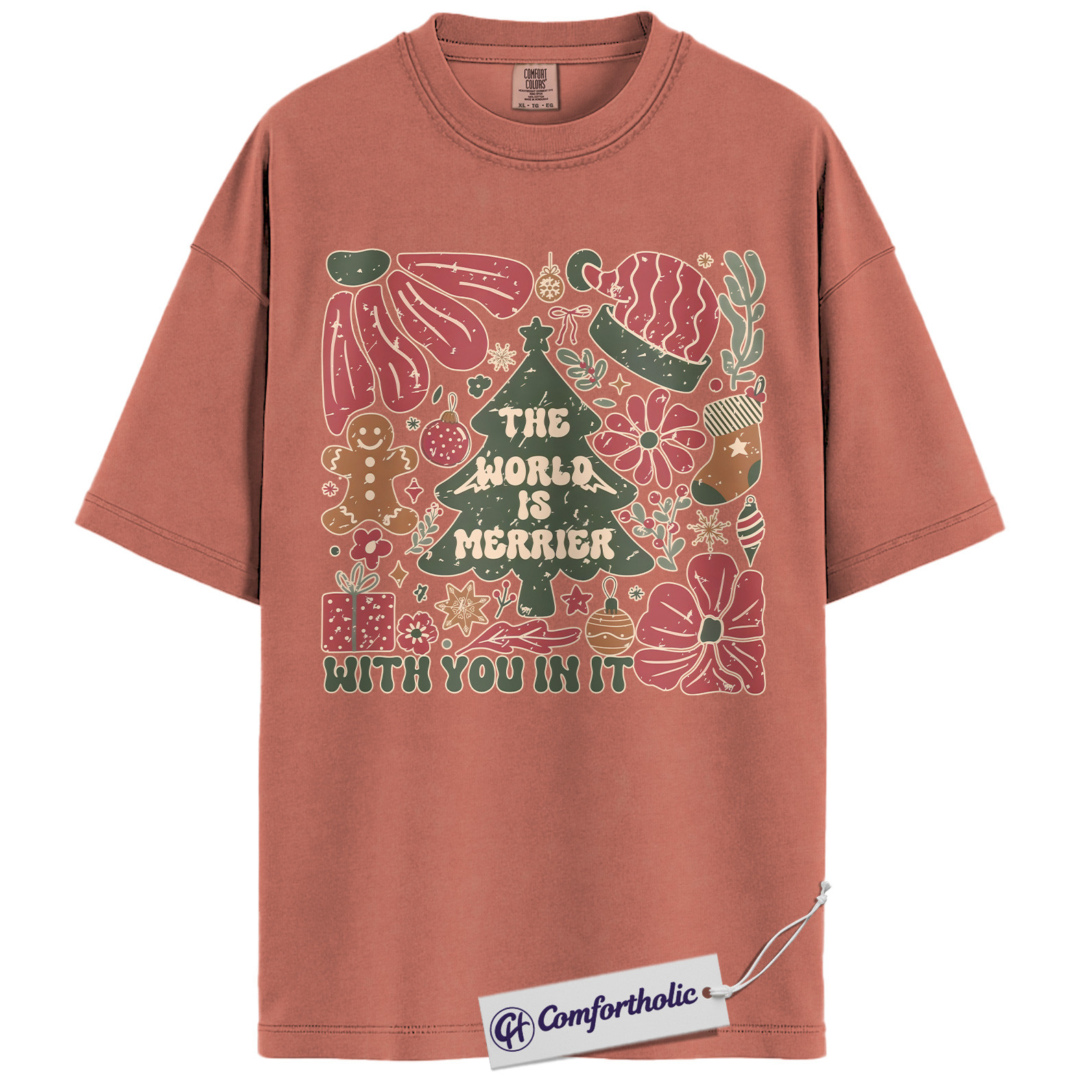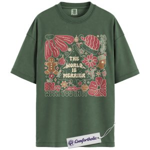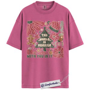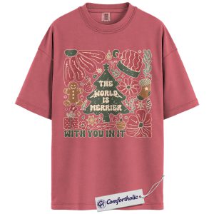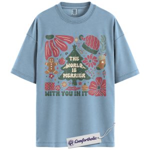 The World Is Merrier Shirt, Christmas Mental Health T-Shirt, Positive Affirmation Holiday Graphic Tee, Wholesome Gift for Friends & Family, Christmas Comfort Colors Shirt