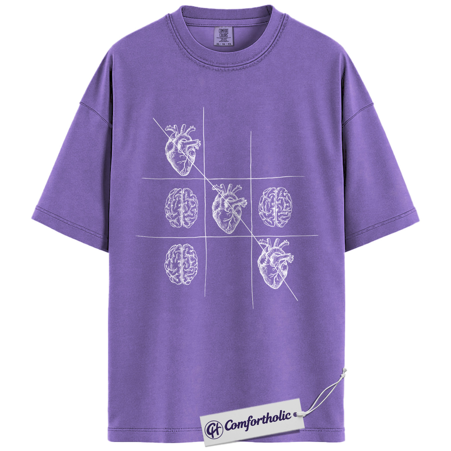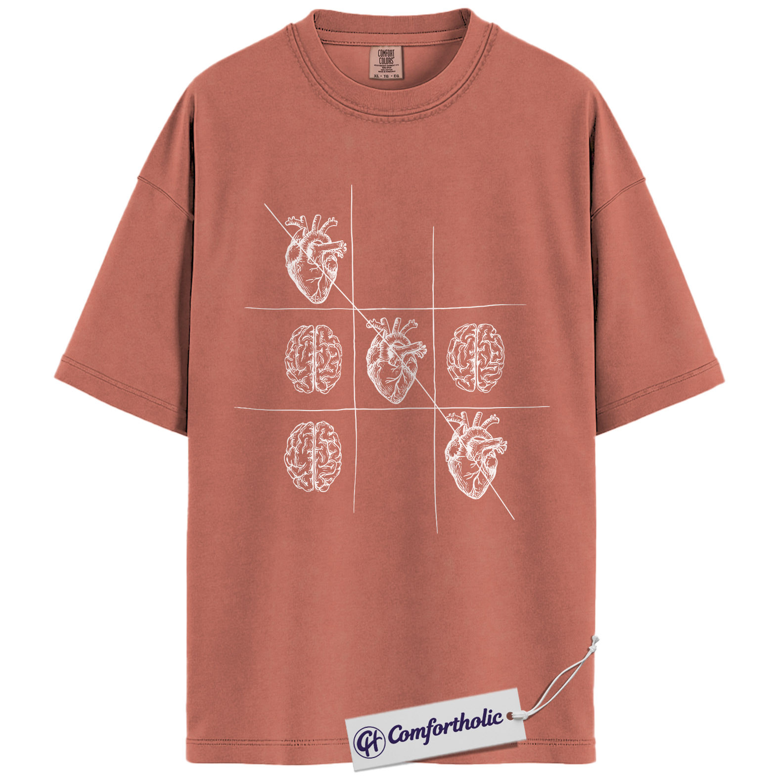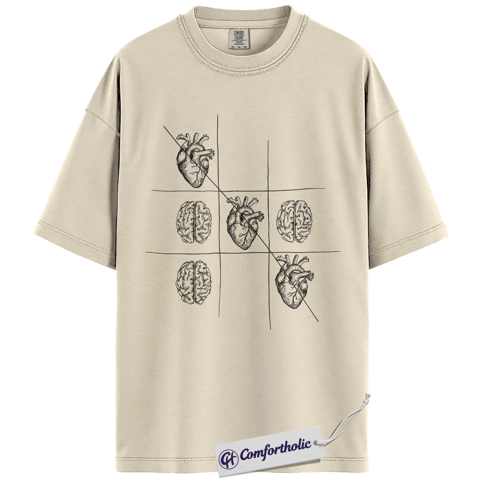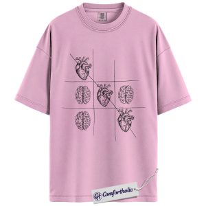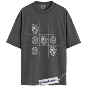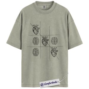 Therapist Psychology Shirt, Heart vs Brain Tic Tac Toe Graphic Tee, Mental Health Counselor T-Shirt, Gift for Psychology Students, Comfort Colors Shirt