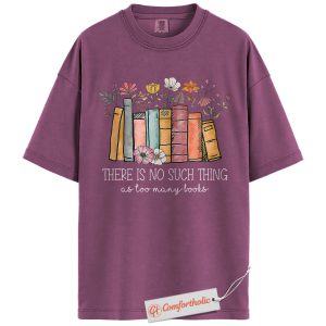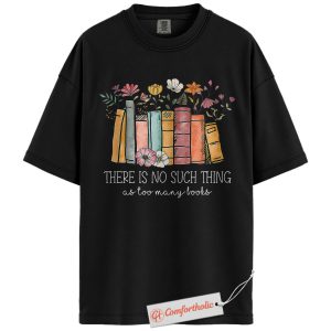 There Is No Such Thing as Too Many Books Shirt, Book Lover Shirt, Floral Book Shirt, Reading Quote Shirt, Comfort Colors Tee