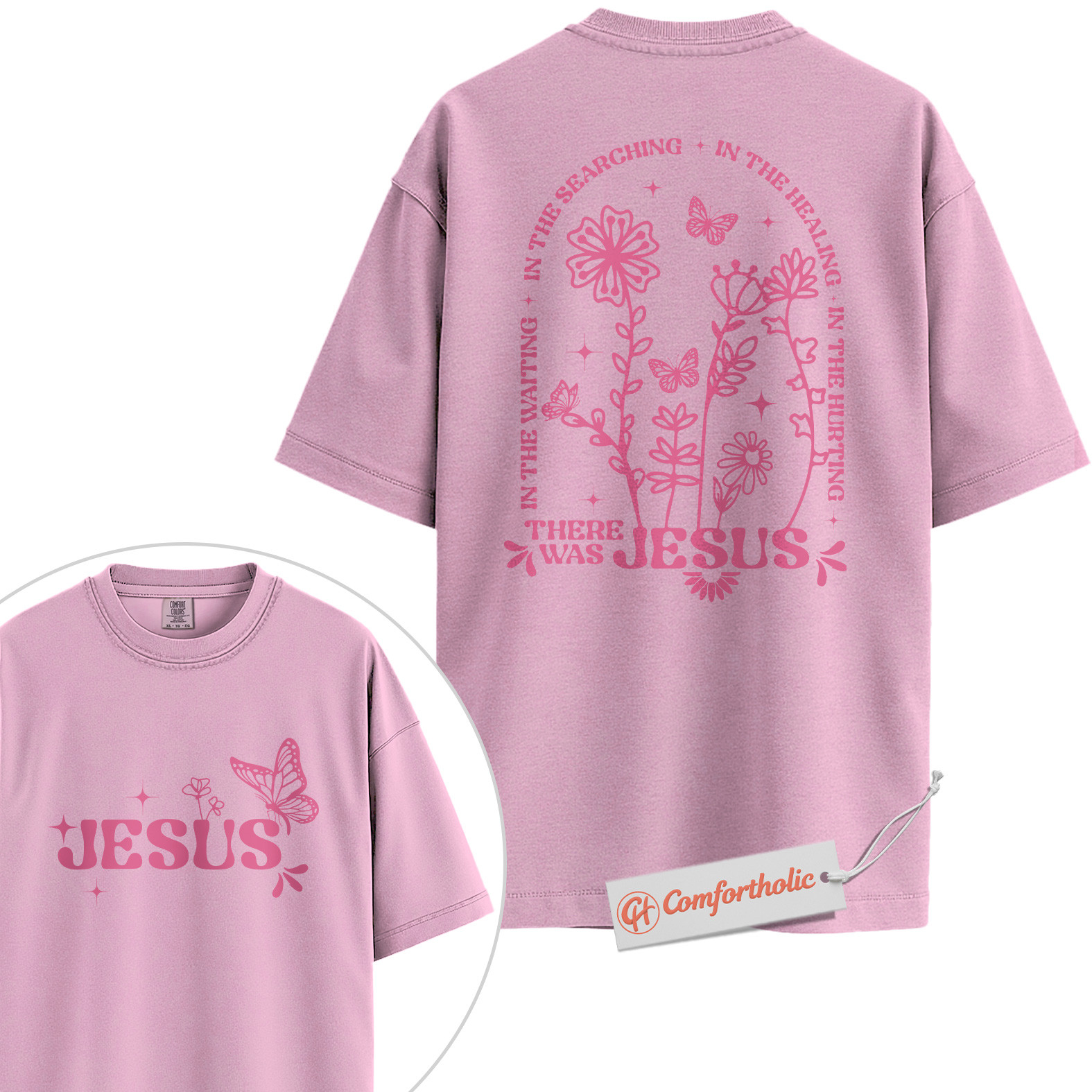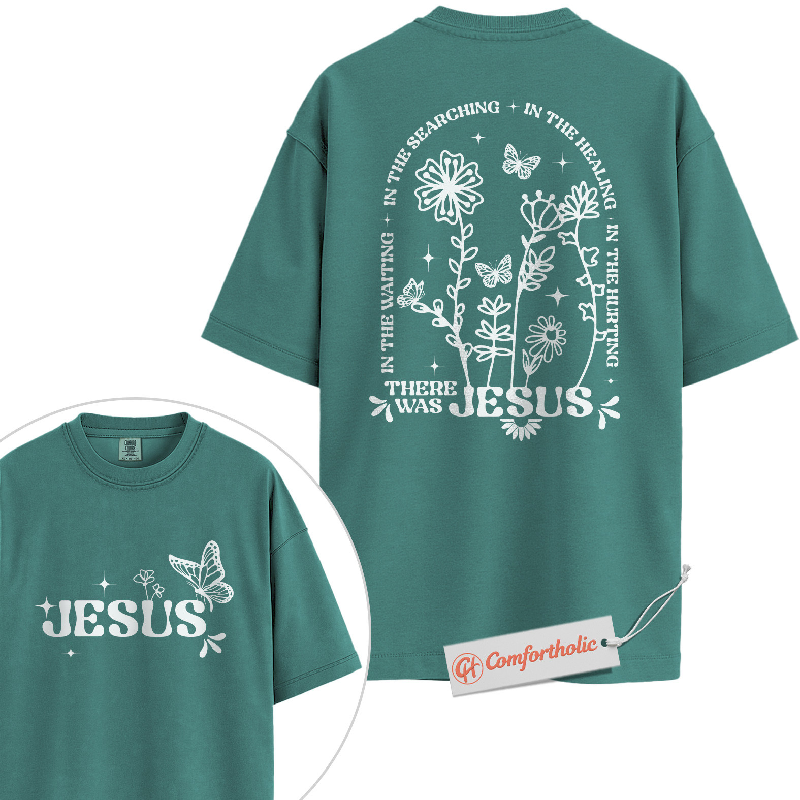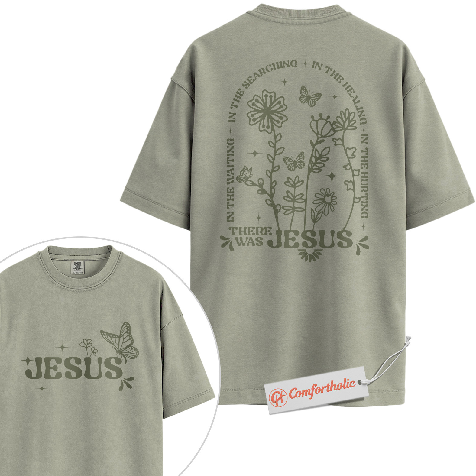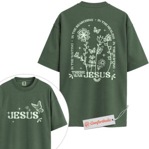 There Was Jesus Shirt, Christian Shirt, Butterfly Floral Shirt, Faith Quote Bible Verse Shirt, Spiritual Healing Shirt, Comfort Colors Shirt 2-Sided