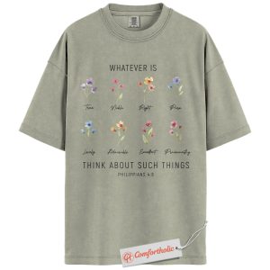 Think About Such Things Shirt, Philippians 4:8 Bible Verse Shirt, Christian Shirt, Floral Faith Shirt, Inspirational Comfort Colors Shirt