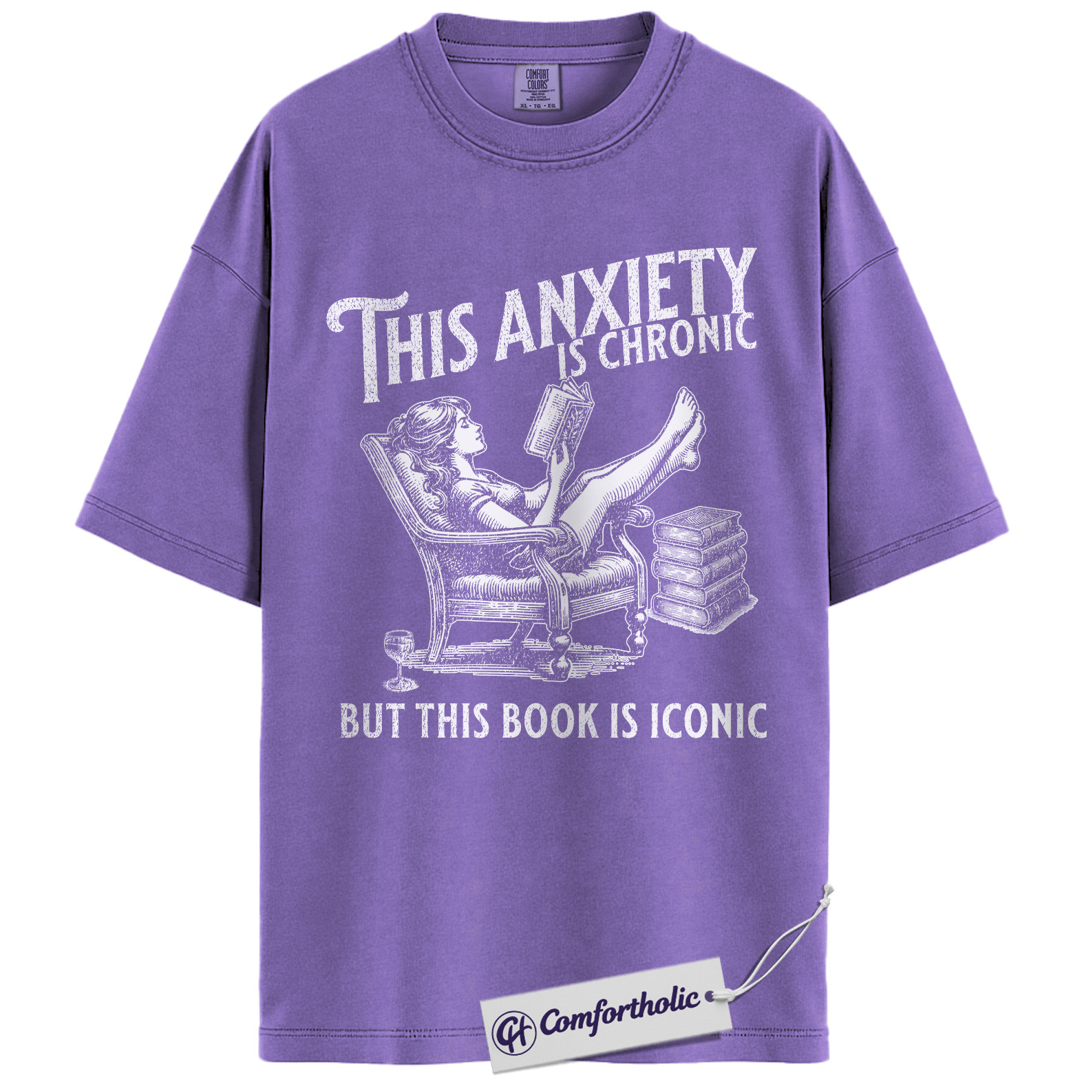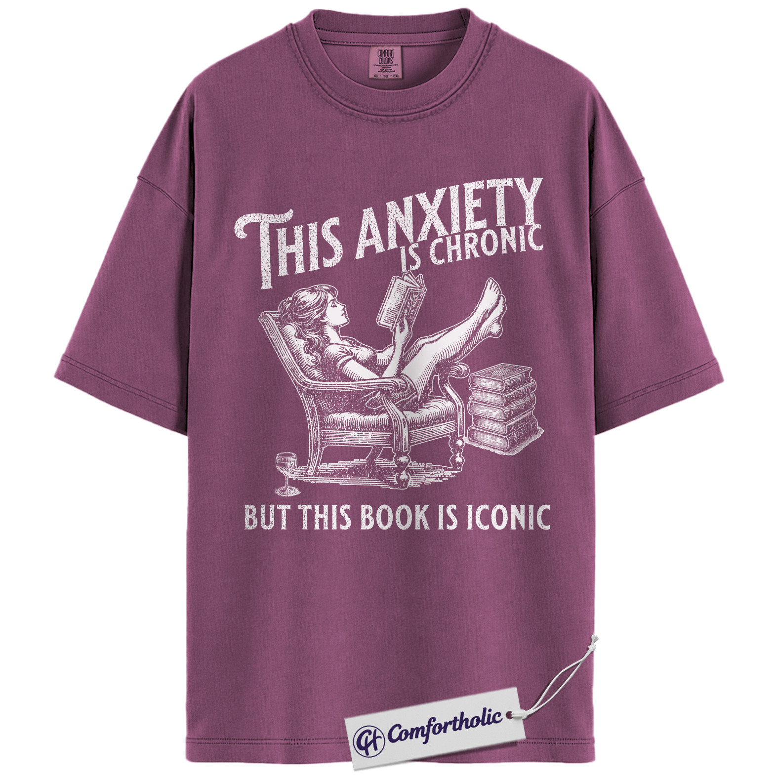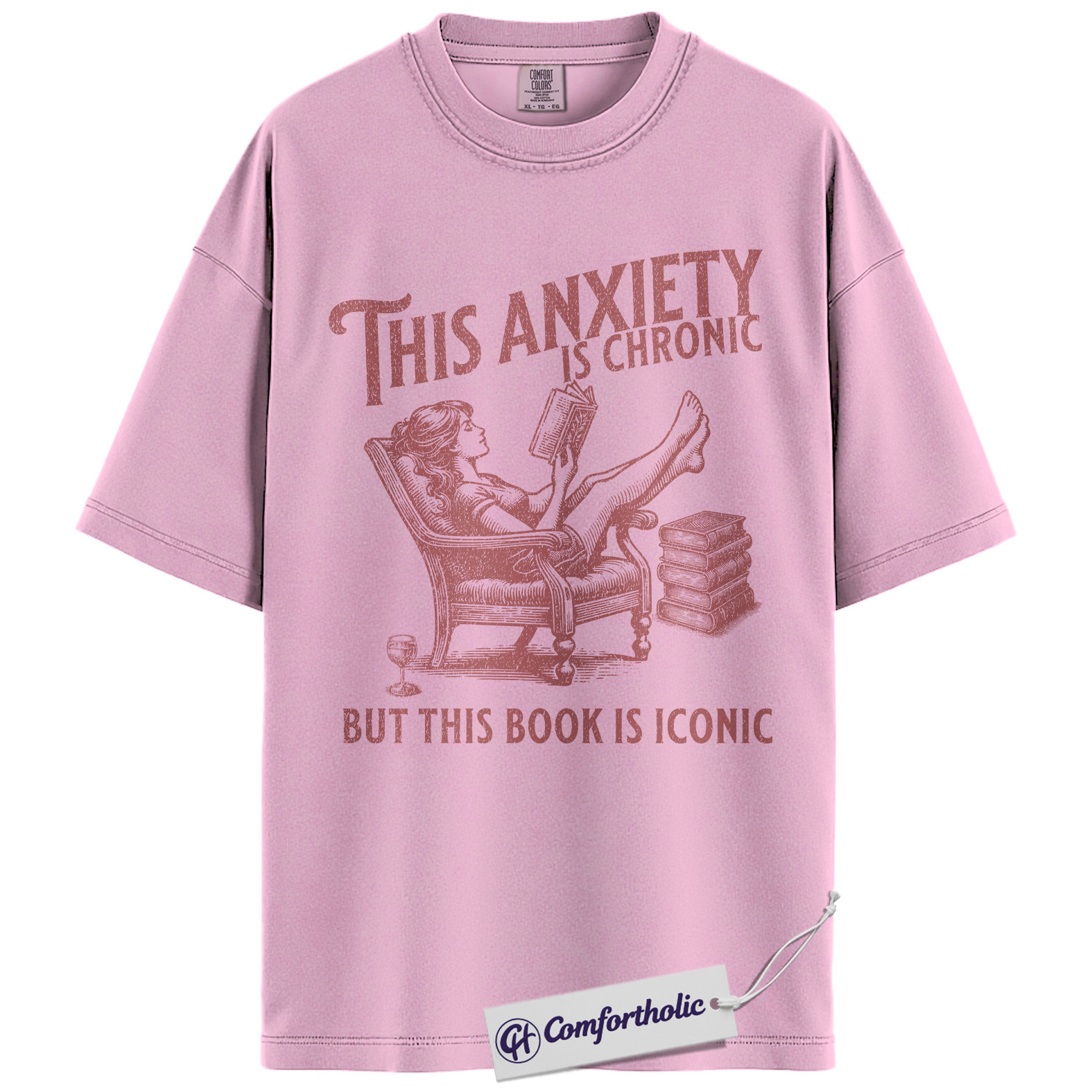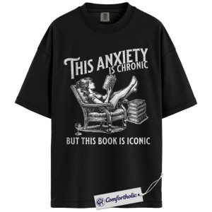 This Anxiety Is Chronic But This Book Is Iconic Shirt, Funny Book Lover T-Shirt, Reading Humor Graphic Tee, Literary Gift for Readers, Comfort Colors Shirt