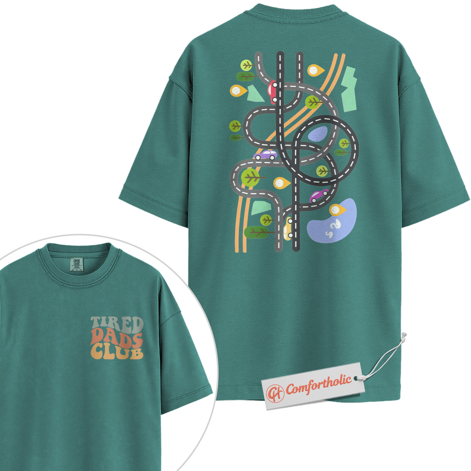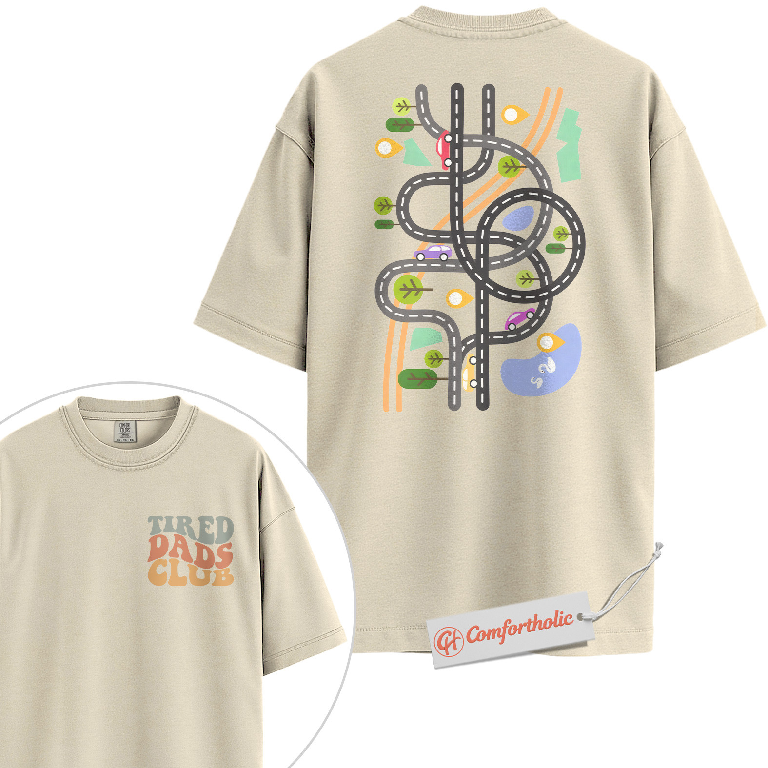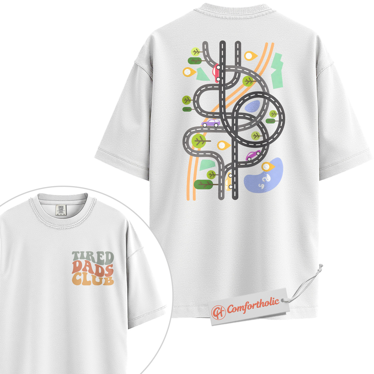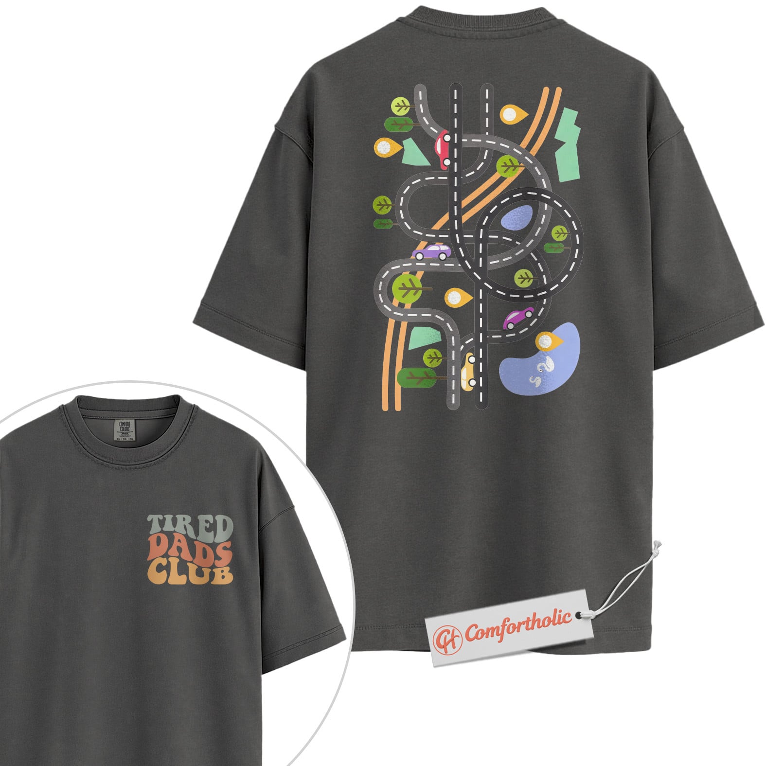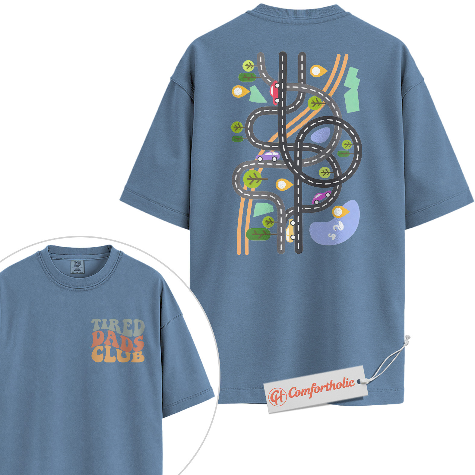 Tired Dads Club Shirt, Funny Dad Life Shirt, Toy Road Map Shirt, Father’s Day Gift, Fatherhood Comfort Colors Shirt 2-Sided
