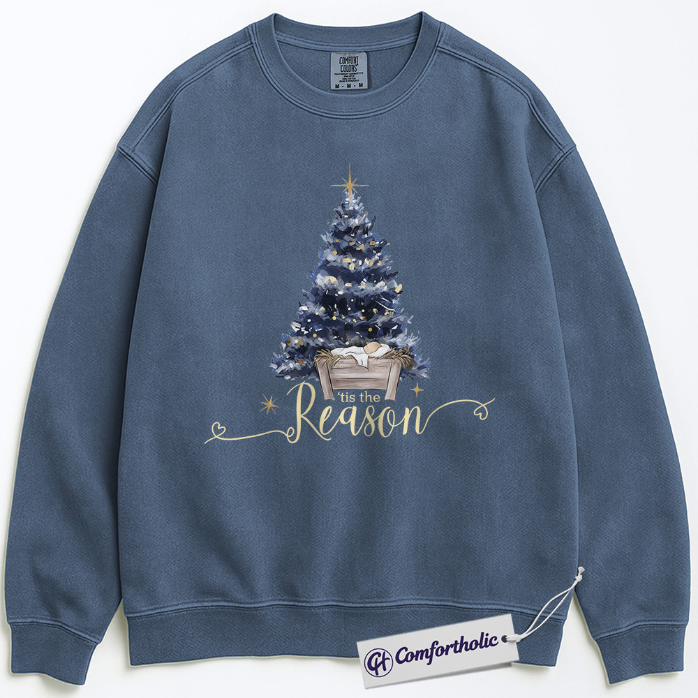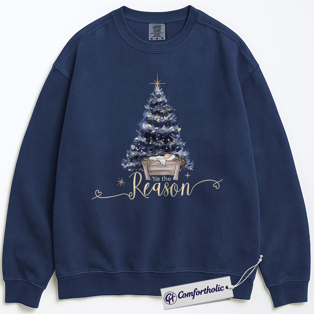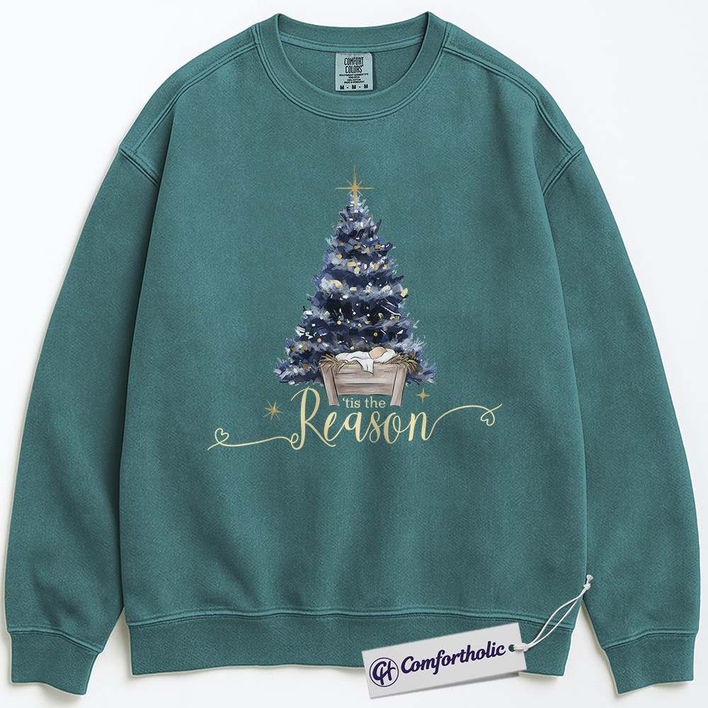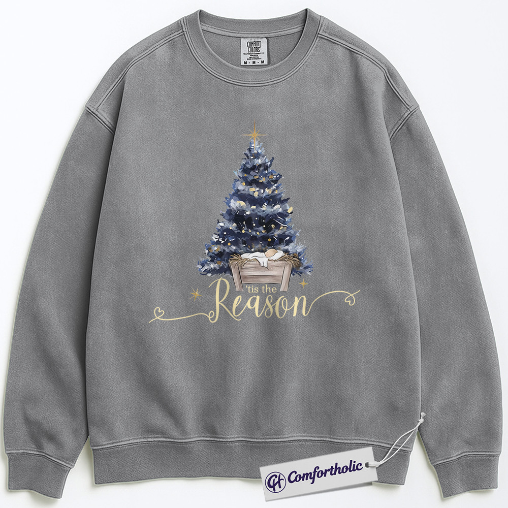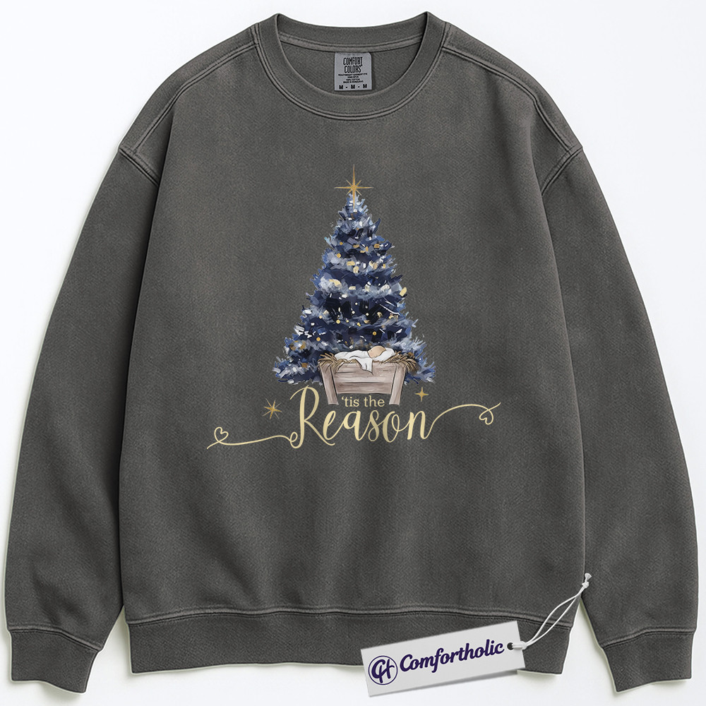 Tis the Reason Christmas Sweatshirt, Jesus Nativity Scene Sweatshirt, Christian Faith-Based Holiday Graphic Crewneck, Religious Christmas Gift for Believers, Christmas Comfort Colors Sweatshirt