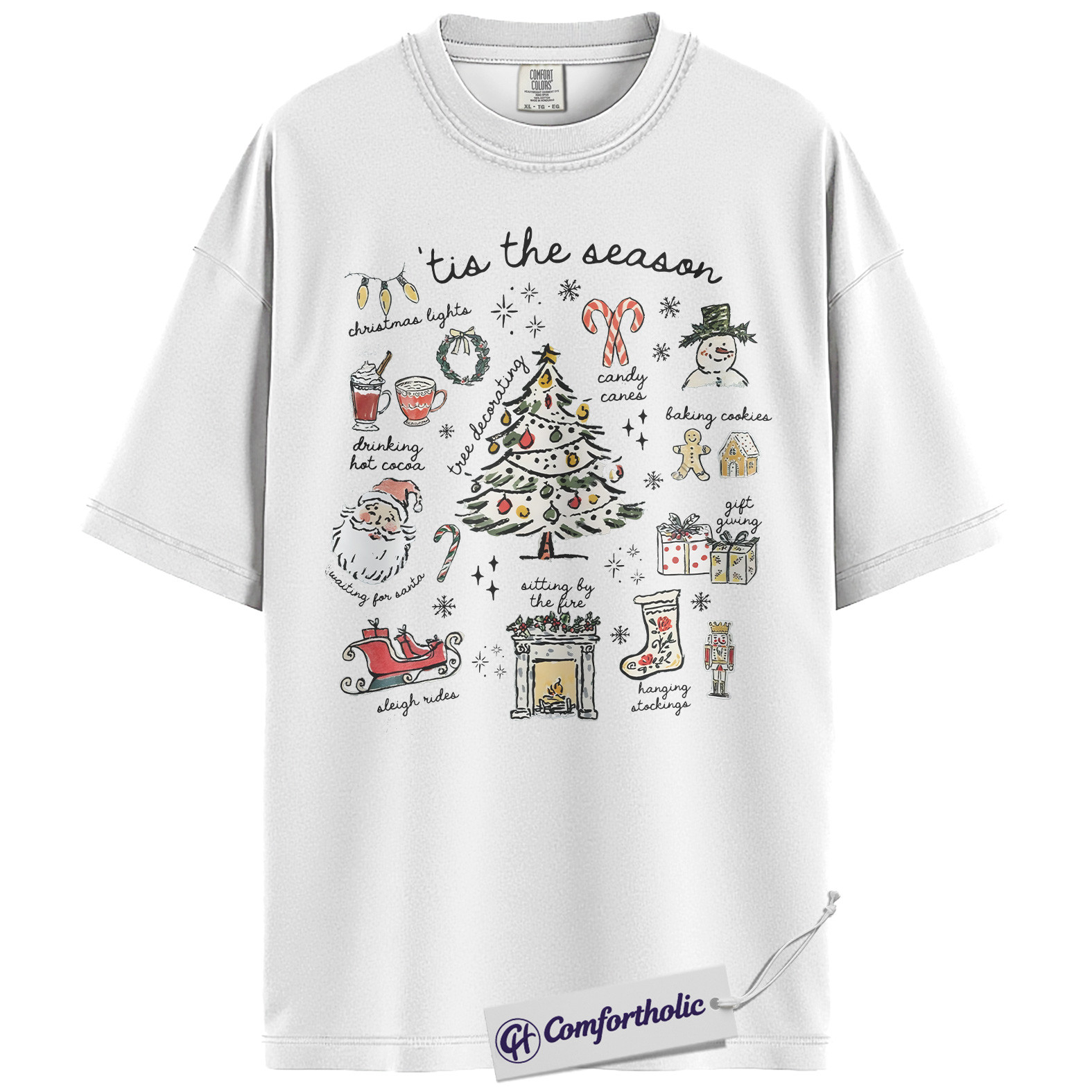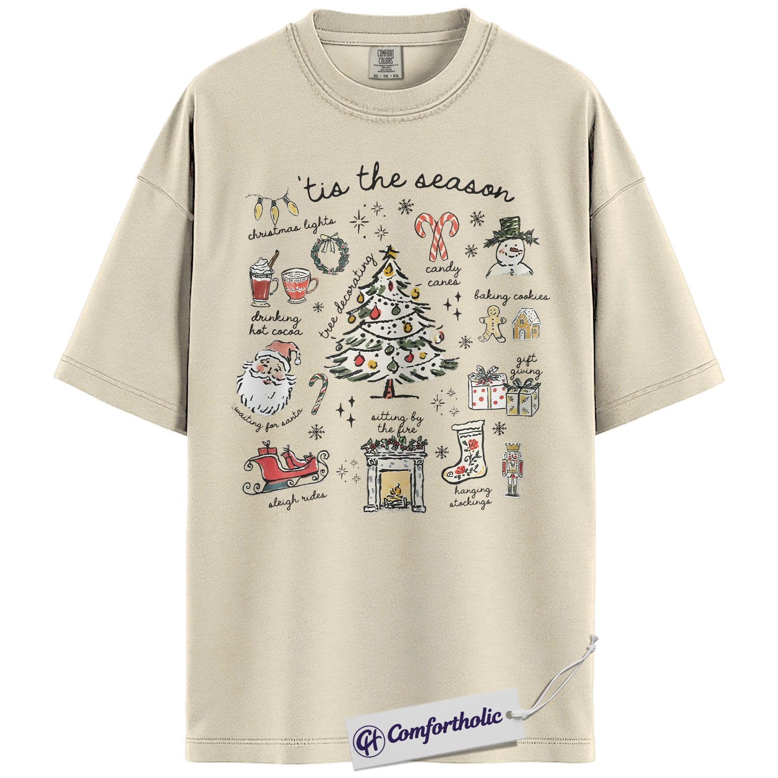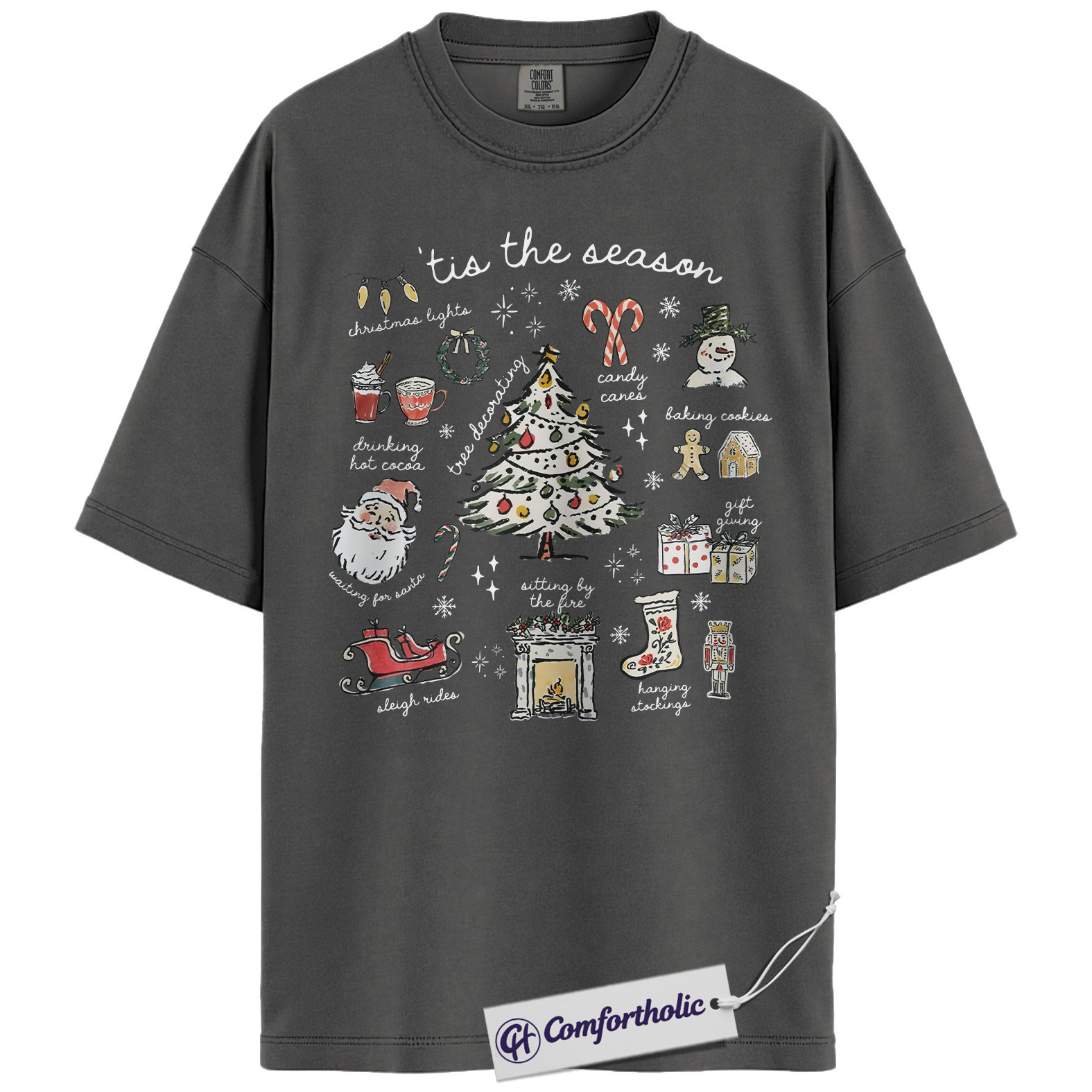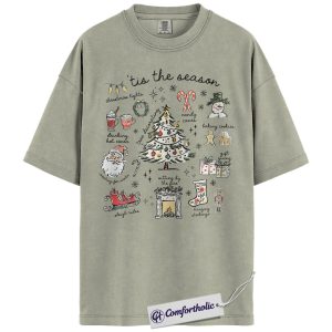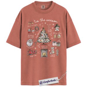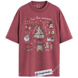 Tis the Season Christmas Shirt, Cozy Holiday Aesthetic T-Shirt, Cute Festive Graphic Tee with Santa and Christmas Tree, Winter Gift for Women, Christmas Comfort Colors Shirt