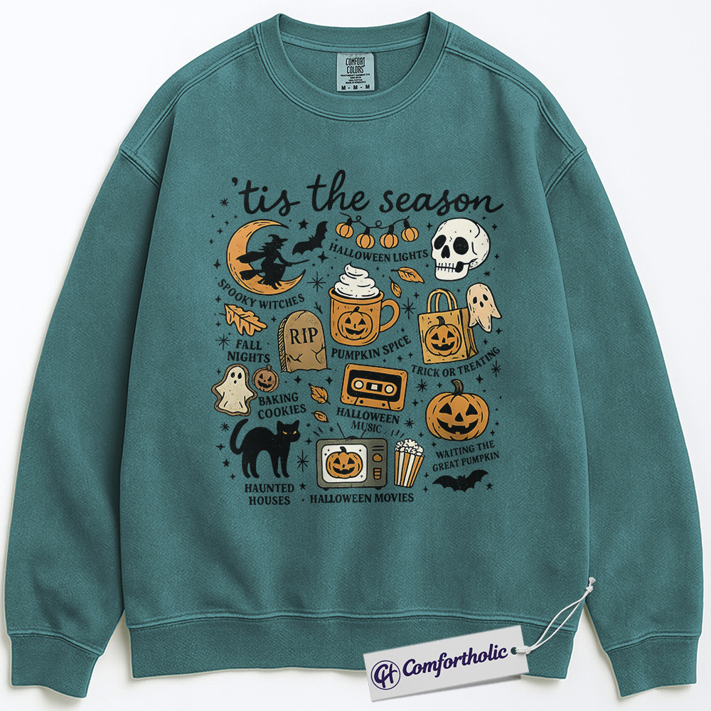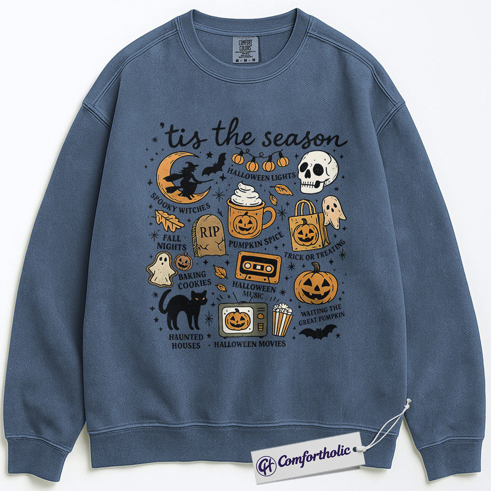 Tis the Season Sweatshirt, Fall Favorites Graphic Sweatshirt, Pumpkin Spice & Movie Night Sweatshirt, Halloween Comfort Colors Sweatshirt