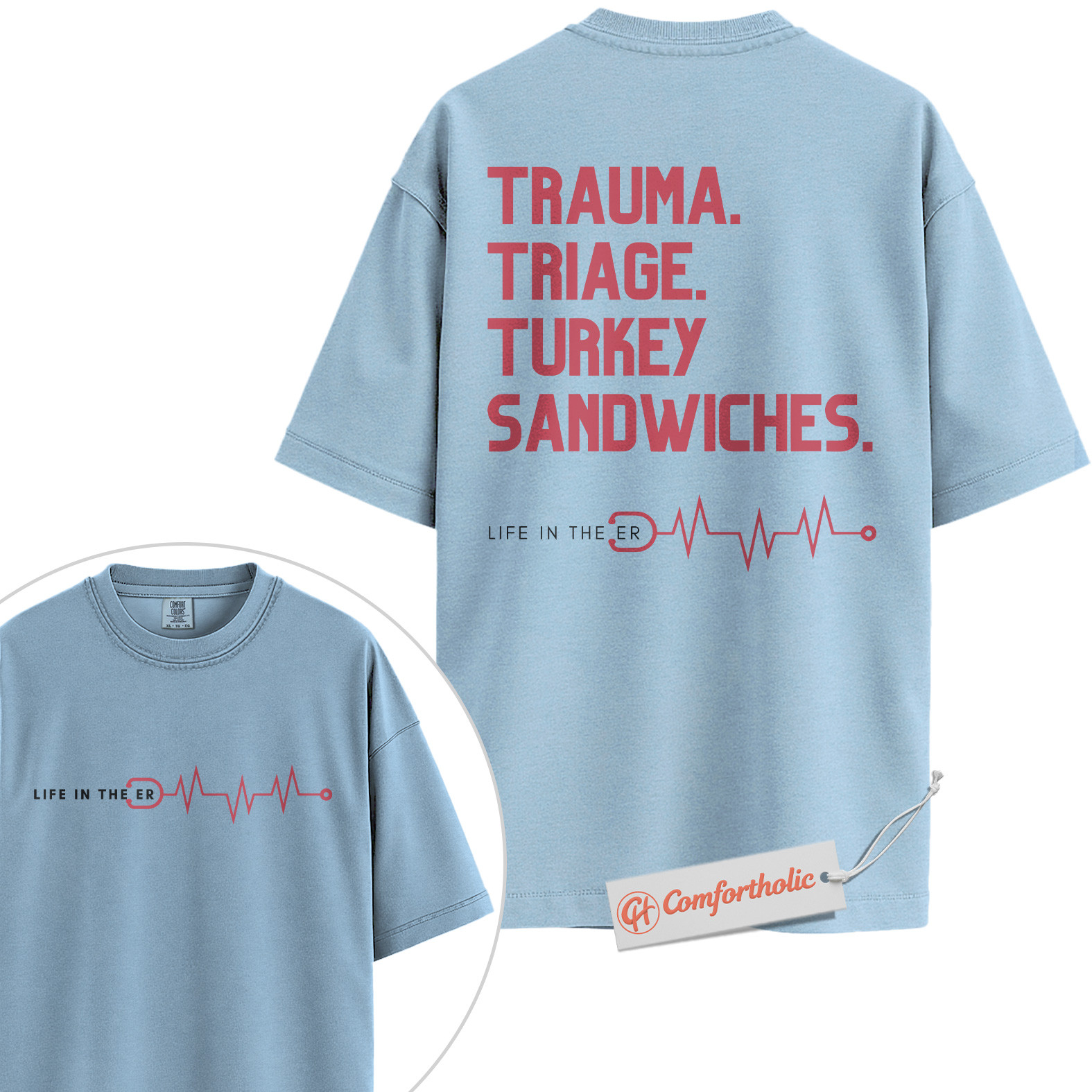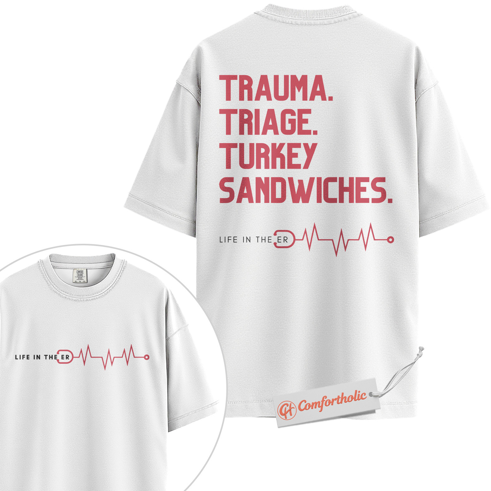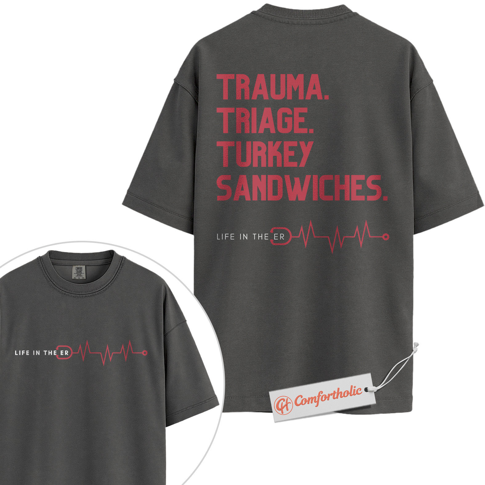 Trauma Triage Turkey Sandwiches Shirt, Funny ER Nurse Shirt, Life in the ER Shirt, Hospital Staff Shirt, Comfort Colors Shirt 2-Sided