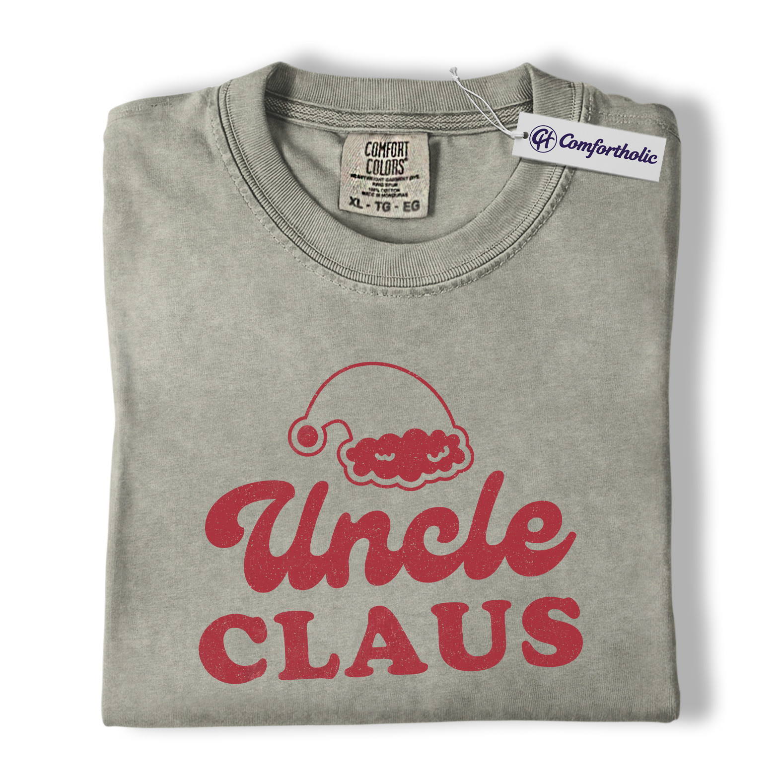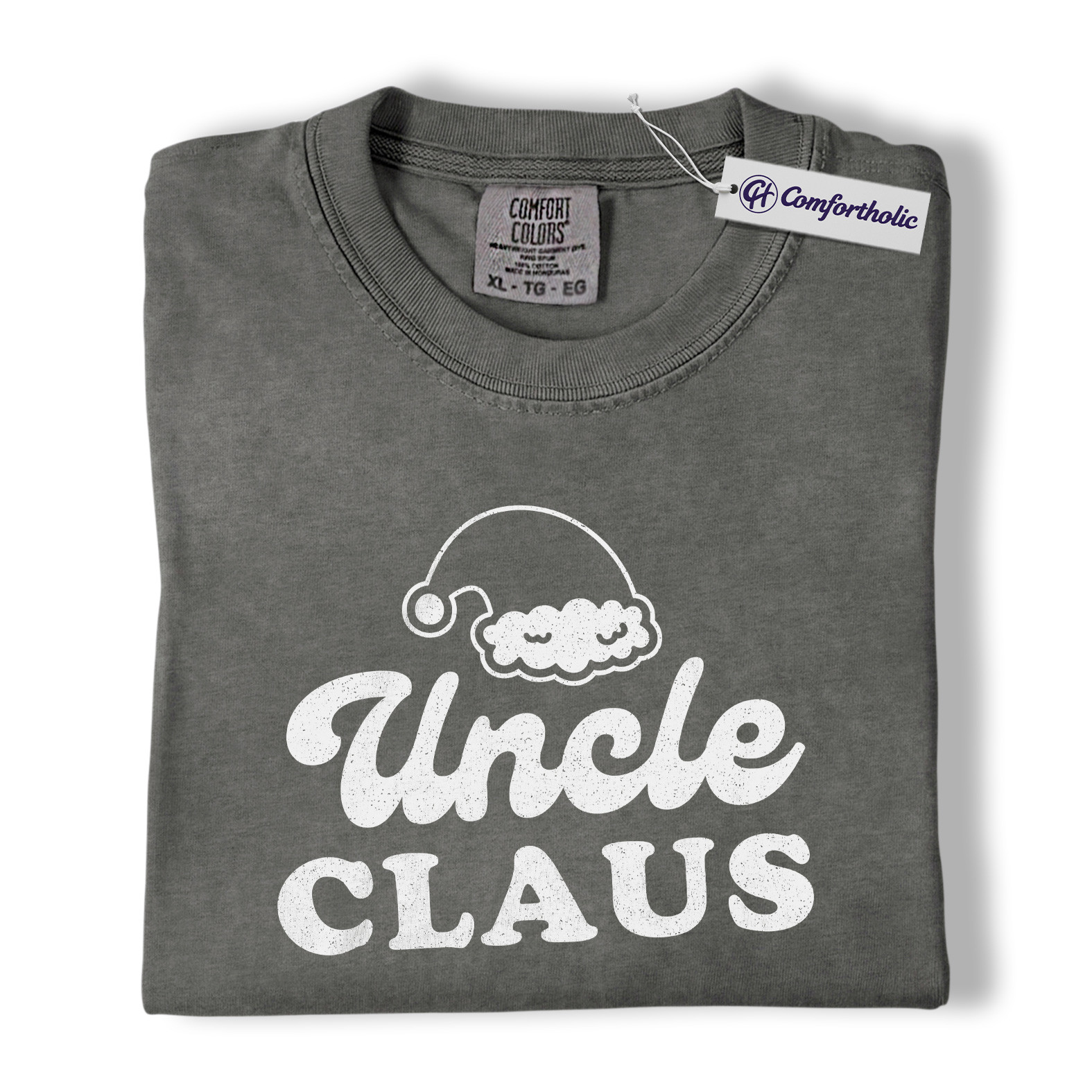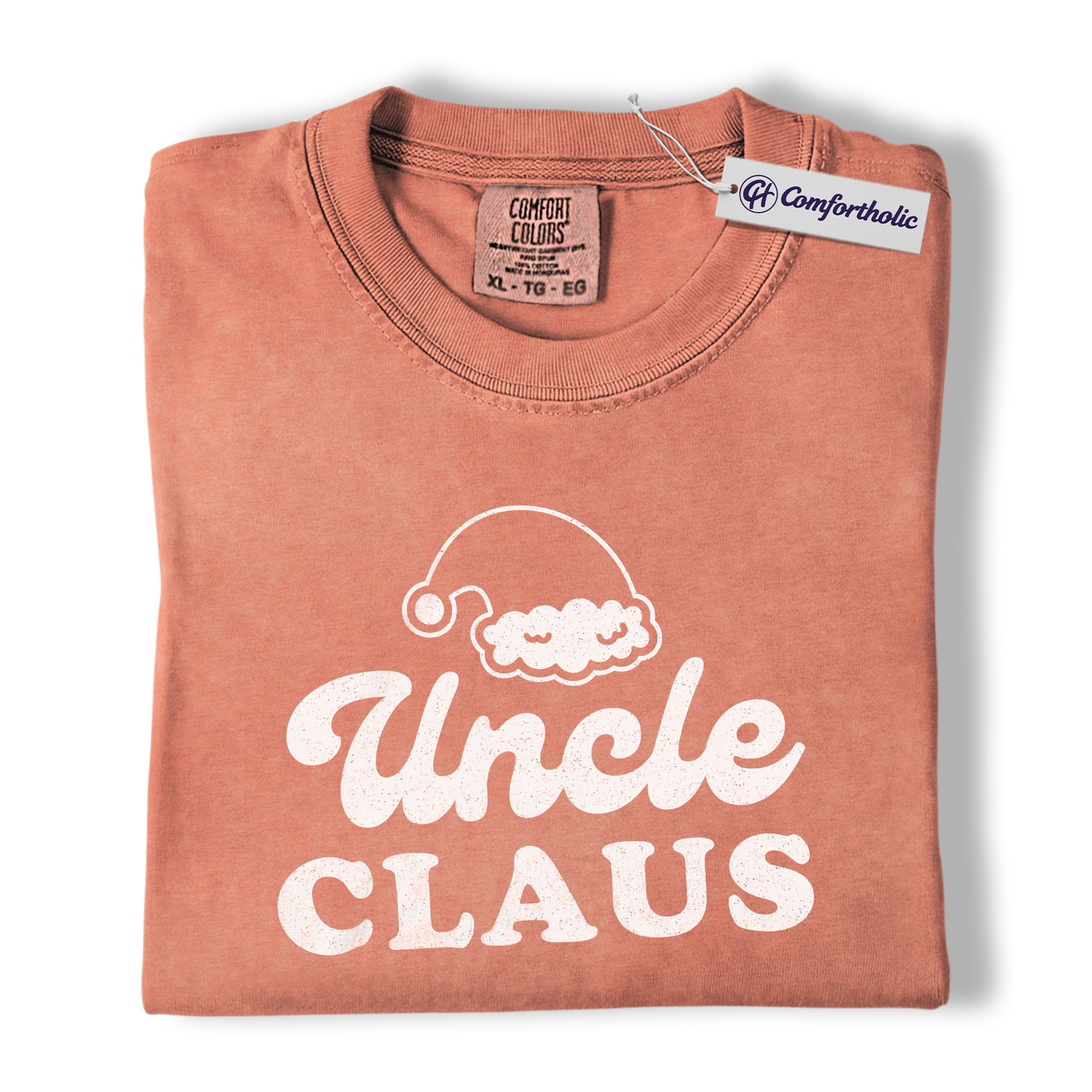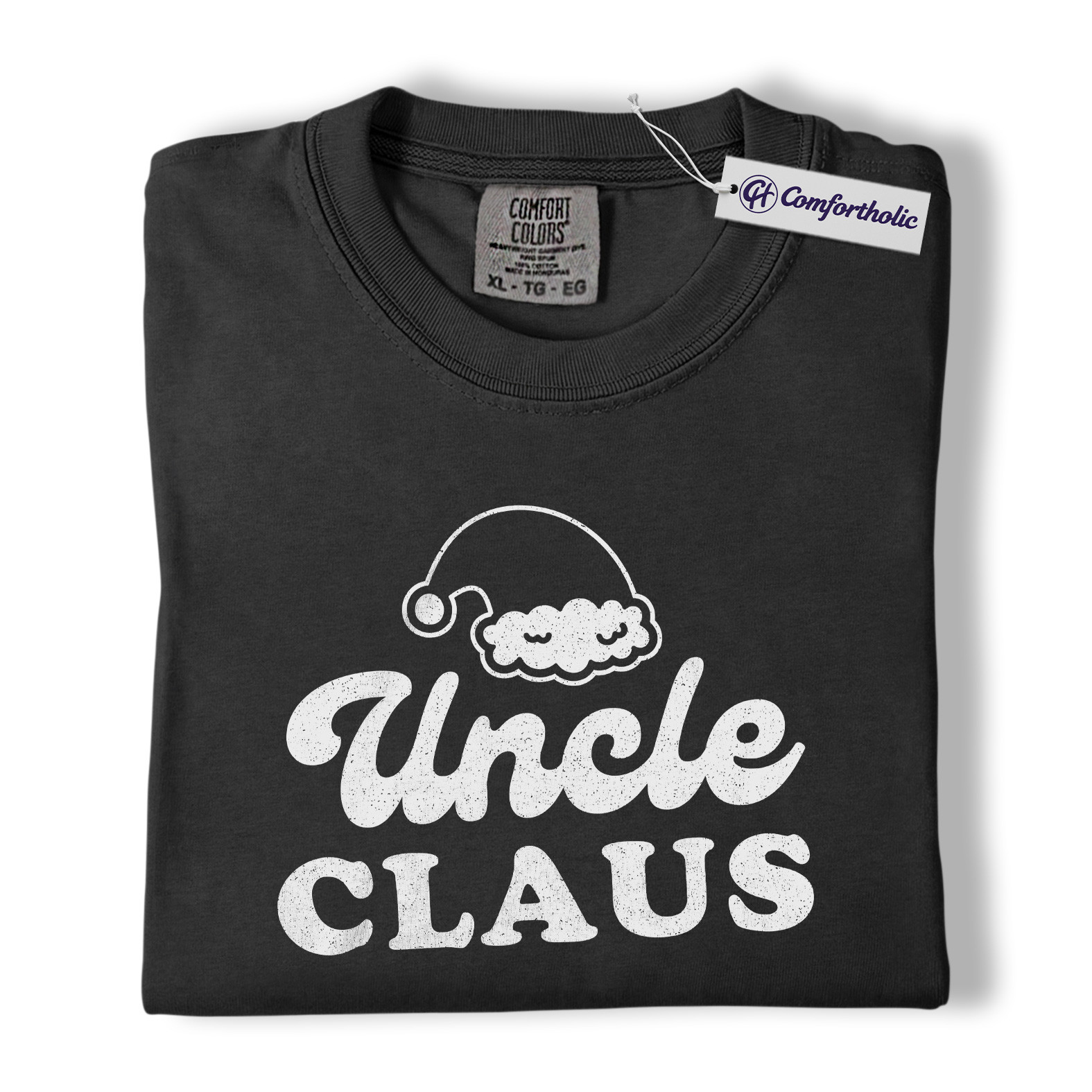 Uncle Claus Shirt, Uncle Christmas T-Shirt, Minimal Santa Hat Holiday Typography Graphic Tee, Funny Christmas Gift for Uncles, Christmas Comfort Colors Shirt