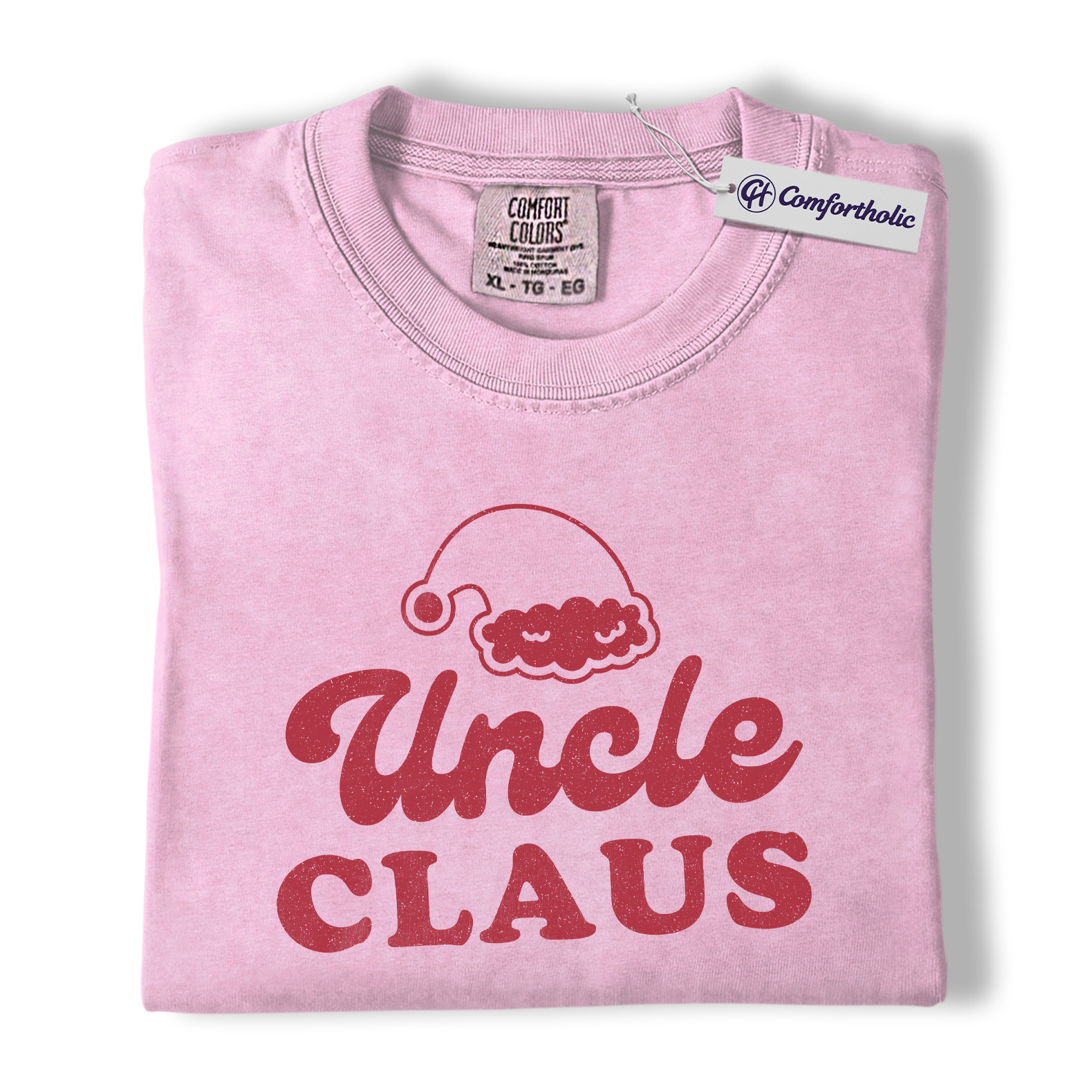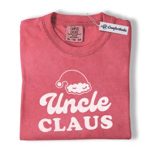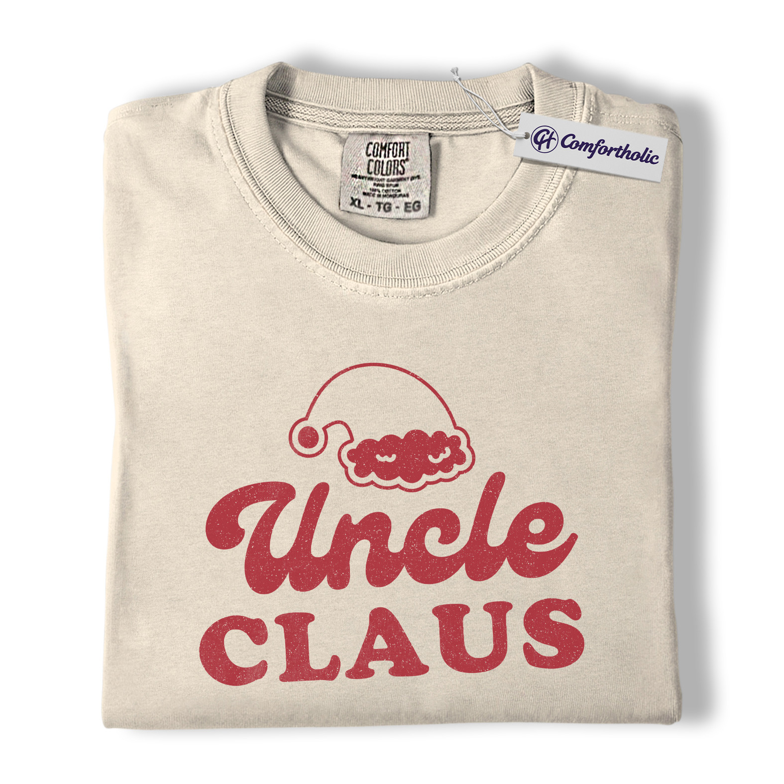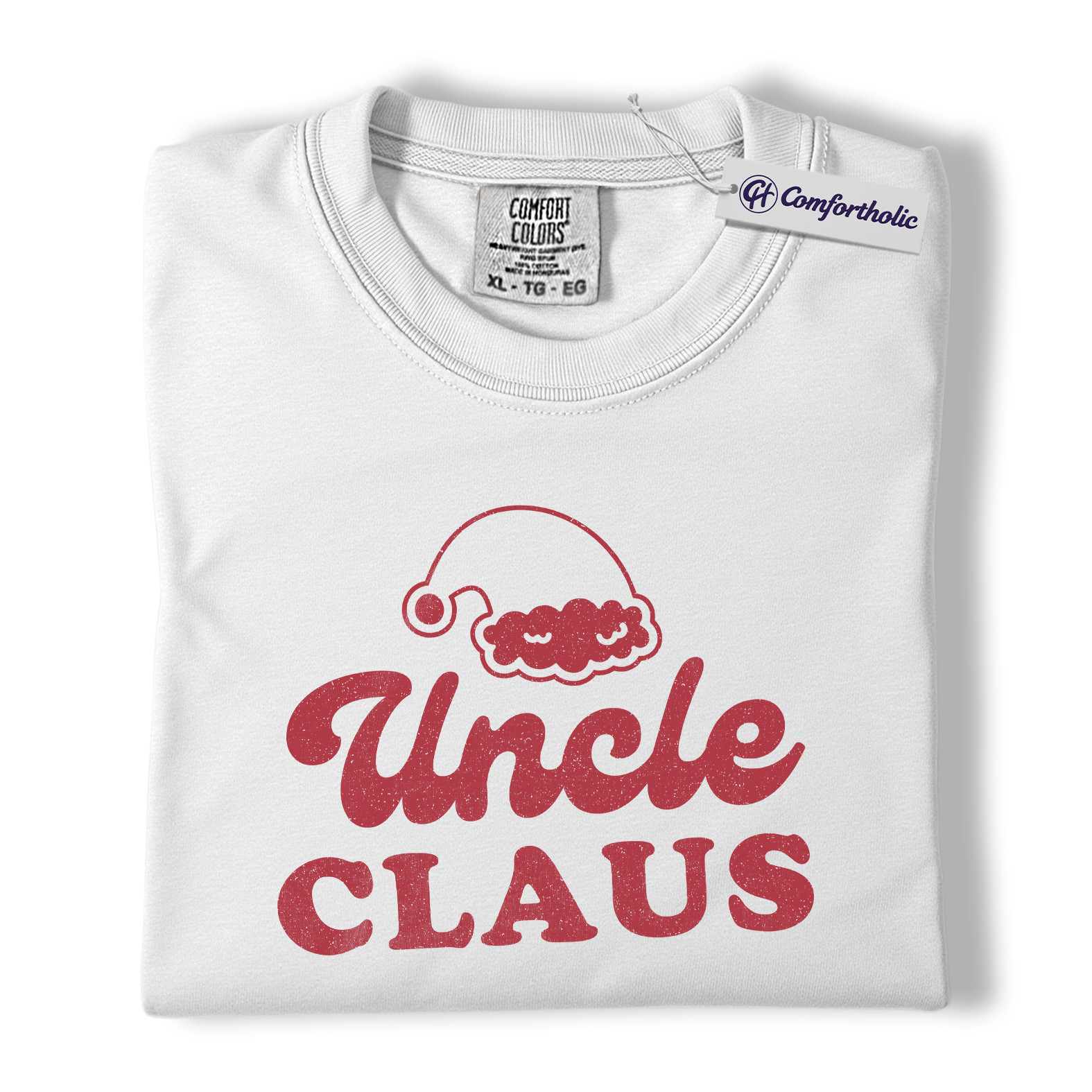 Uncle Claus Shirt, Uncle Christmas T-Shirt, Minimal Santa Hat Holiday Typography Graphic Tee, Funny Christmas Gift for Uncles, Christmas Comfort Colors Shirt