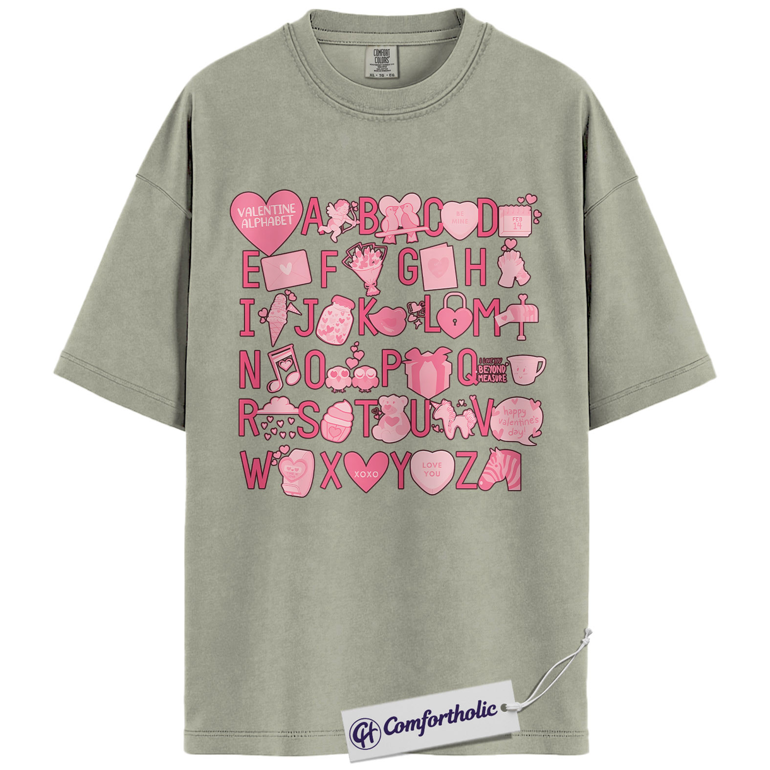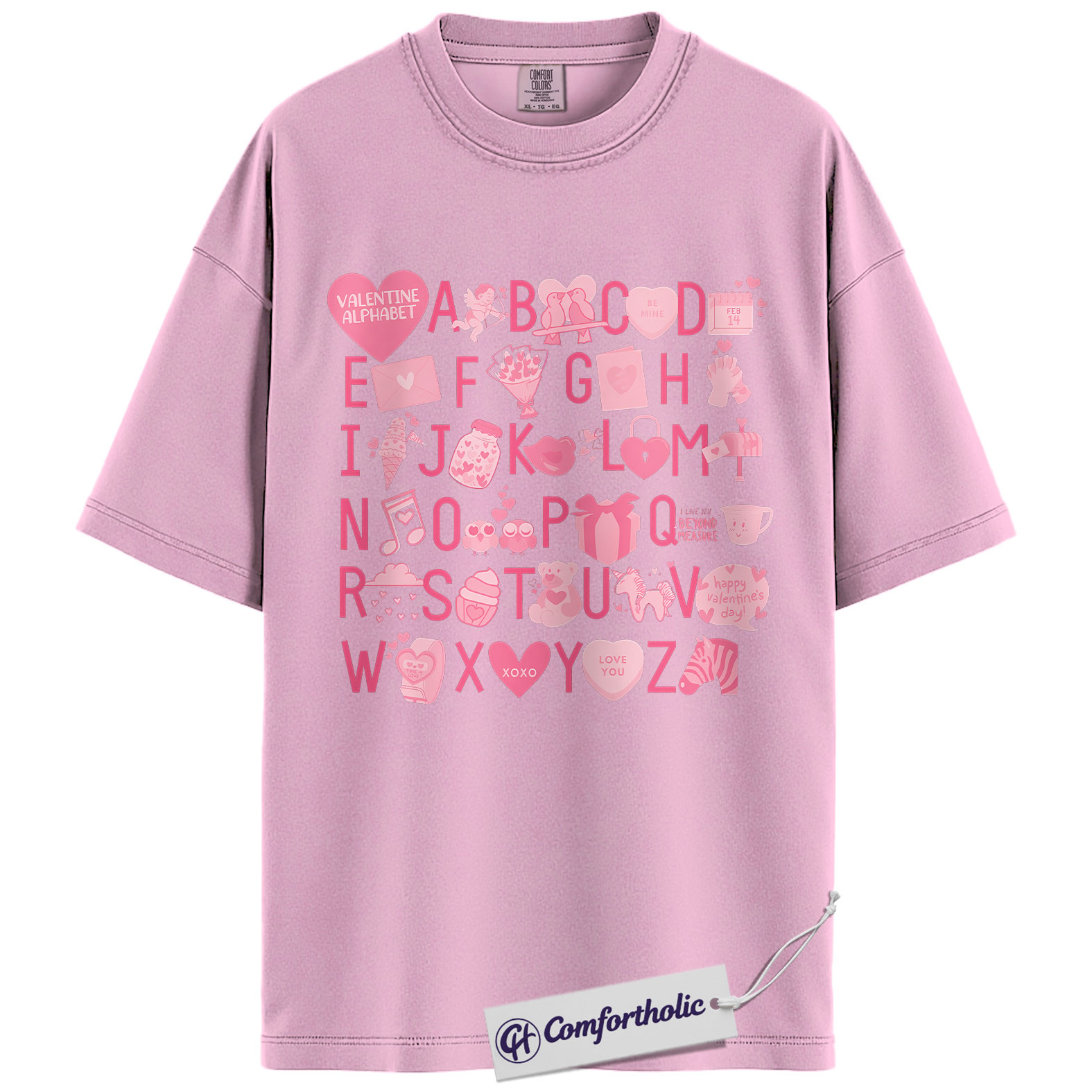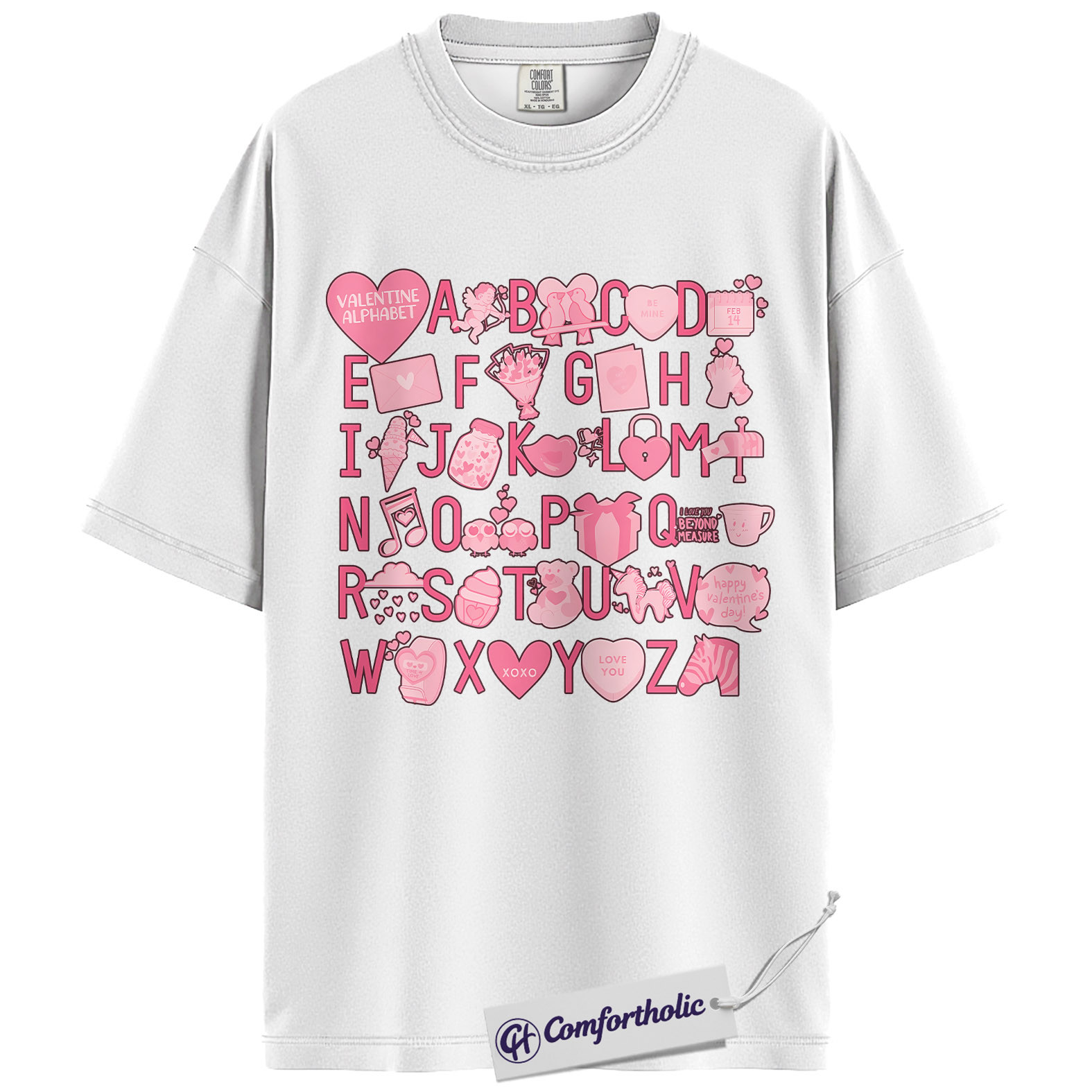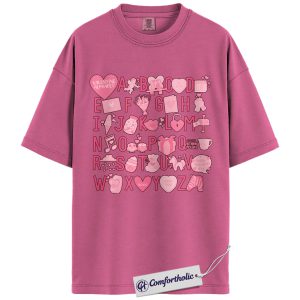 Valentine Alphabet Shirt, Cute A–Z Pink Graphic Tee, Classroom Teacher Valentine T-Shirt, Sweet Gift for Teachers & Students, Comfort Colors Shirt