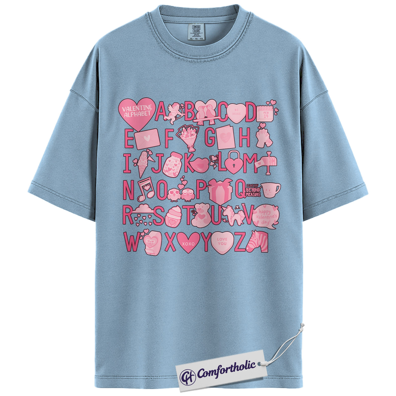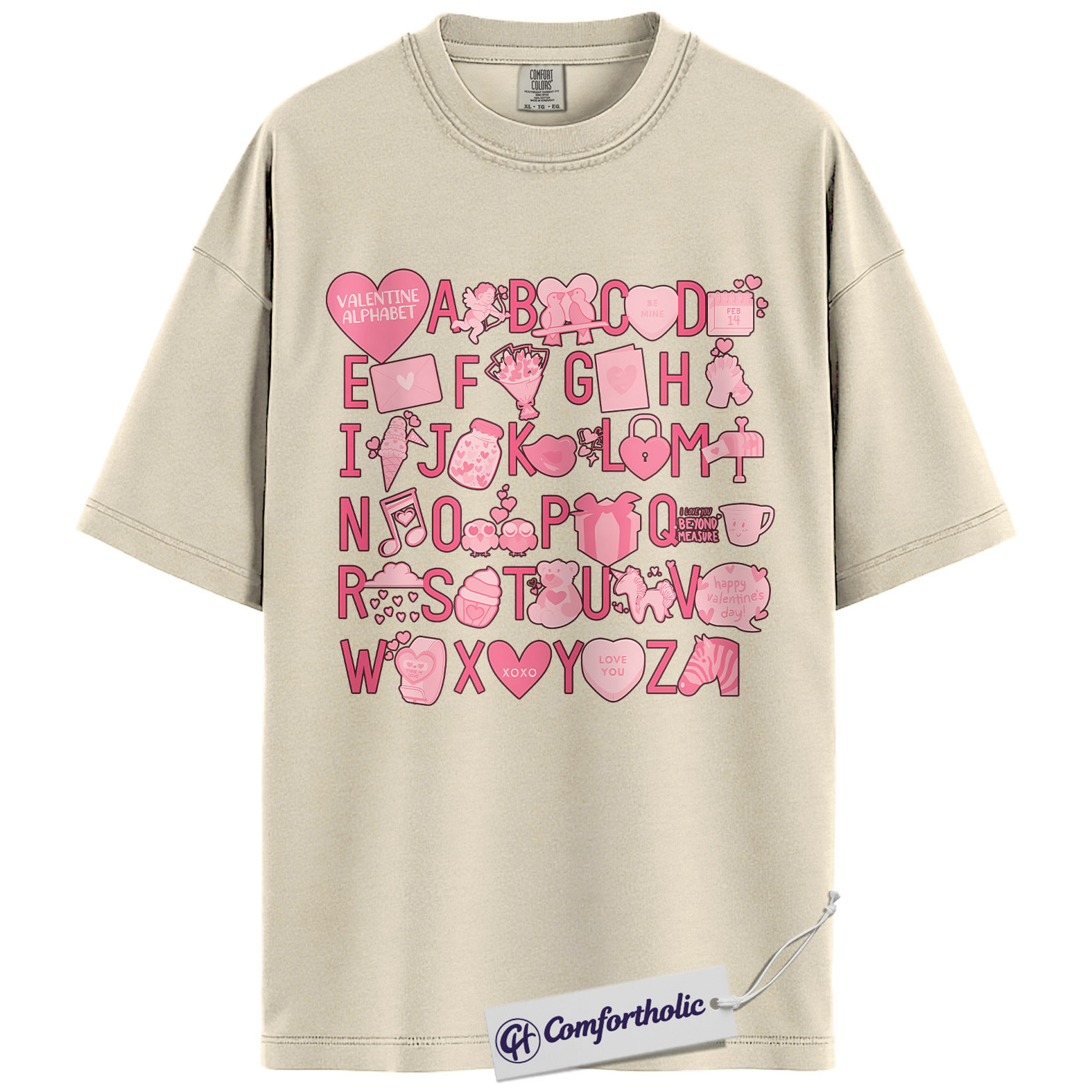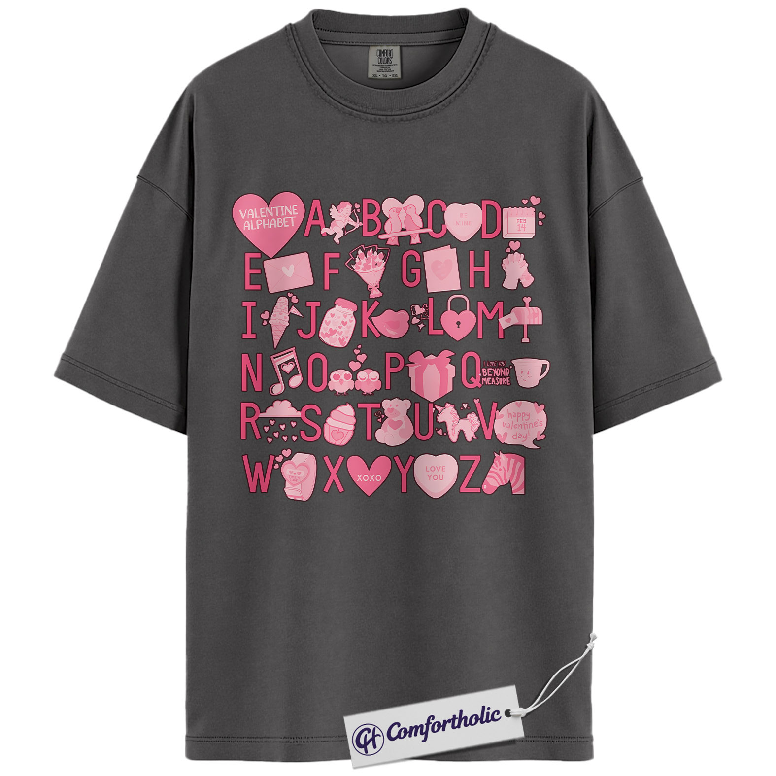 Valentine Alphabet Shirt, Cute A–Z Pink Graphic Tee, Classroom Teacher Valentine T-Shirt, Sweet Gift for Teachers & Students, Comfort Colors Shirt