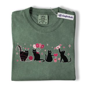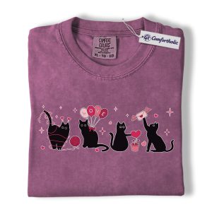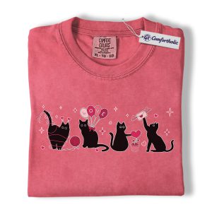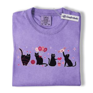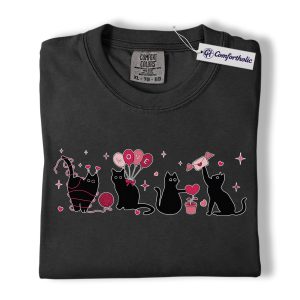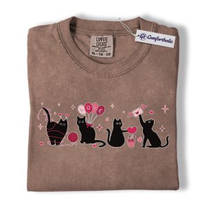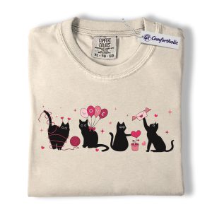 Valentine Black Cat Shirt, Cute Cat Mom Graphic Tee, Pet Lover T-Shirt, Valentine’s Day Gift for Cat Lovers, Comfort Colors Shirt