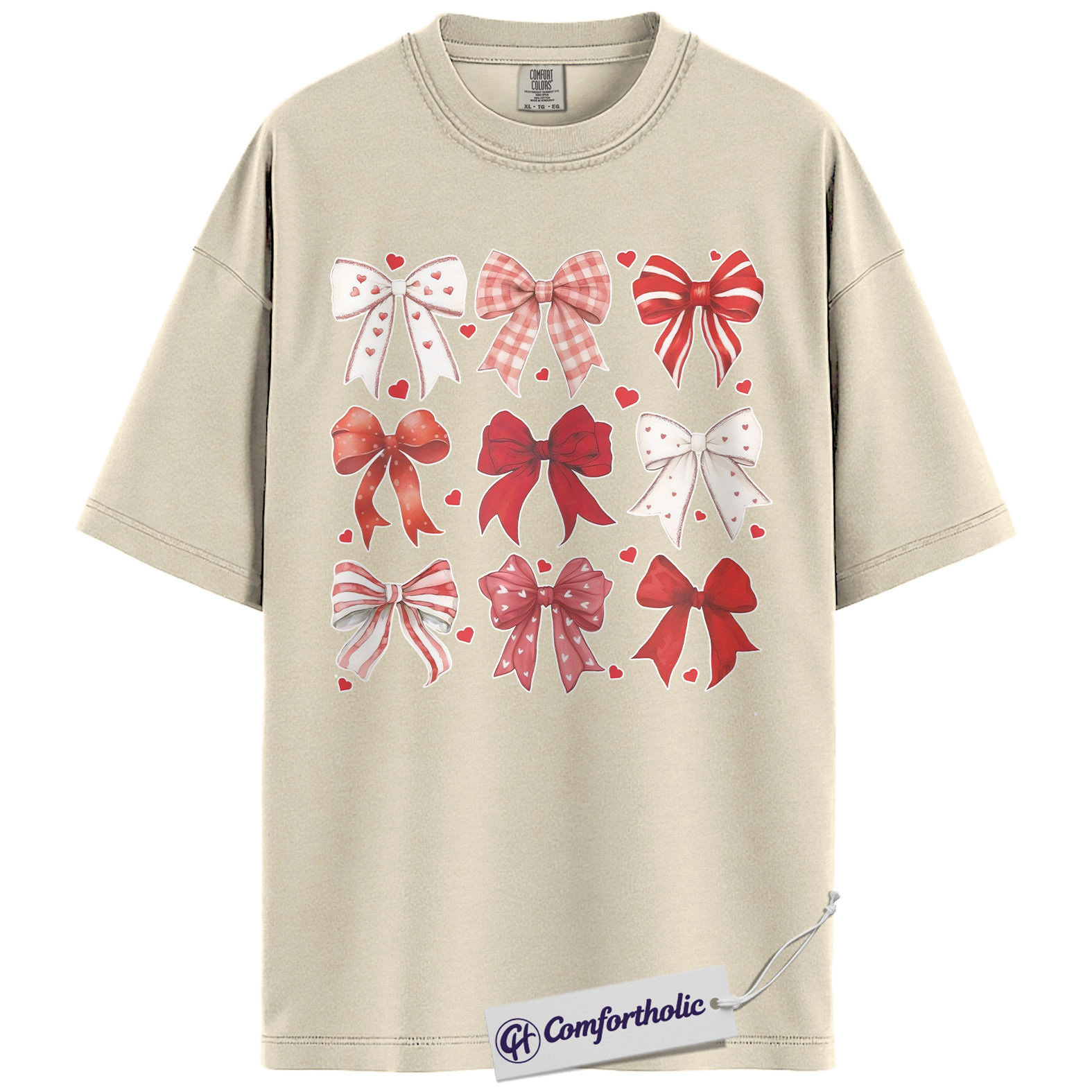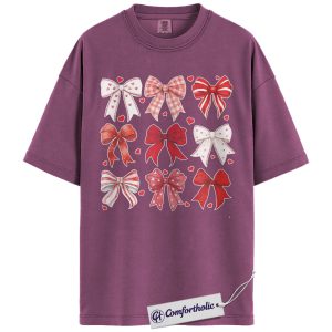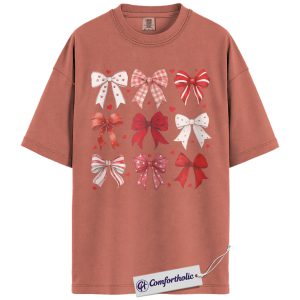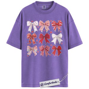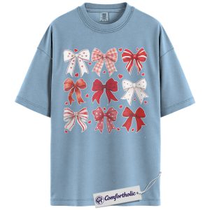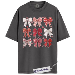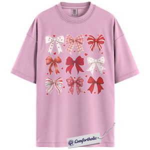 Valentine Bow Shirt, Cute Coquette Ribbon Graphic Tee, Heart Bows Aesthetic T-Shirt, Valentine’s Day Gift for Her, Comfort Colors Shirt