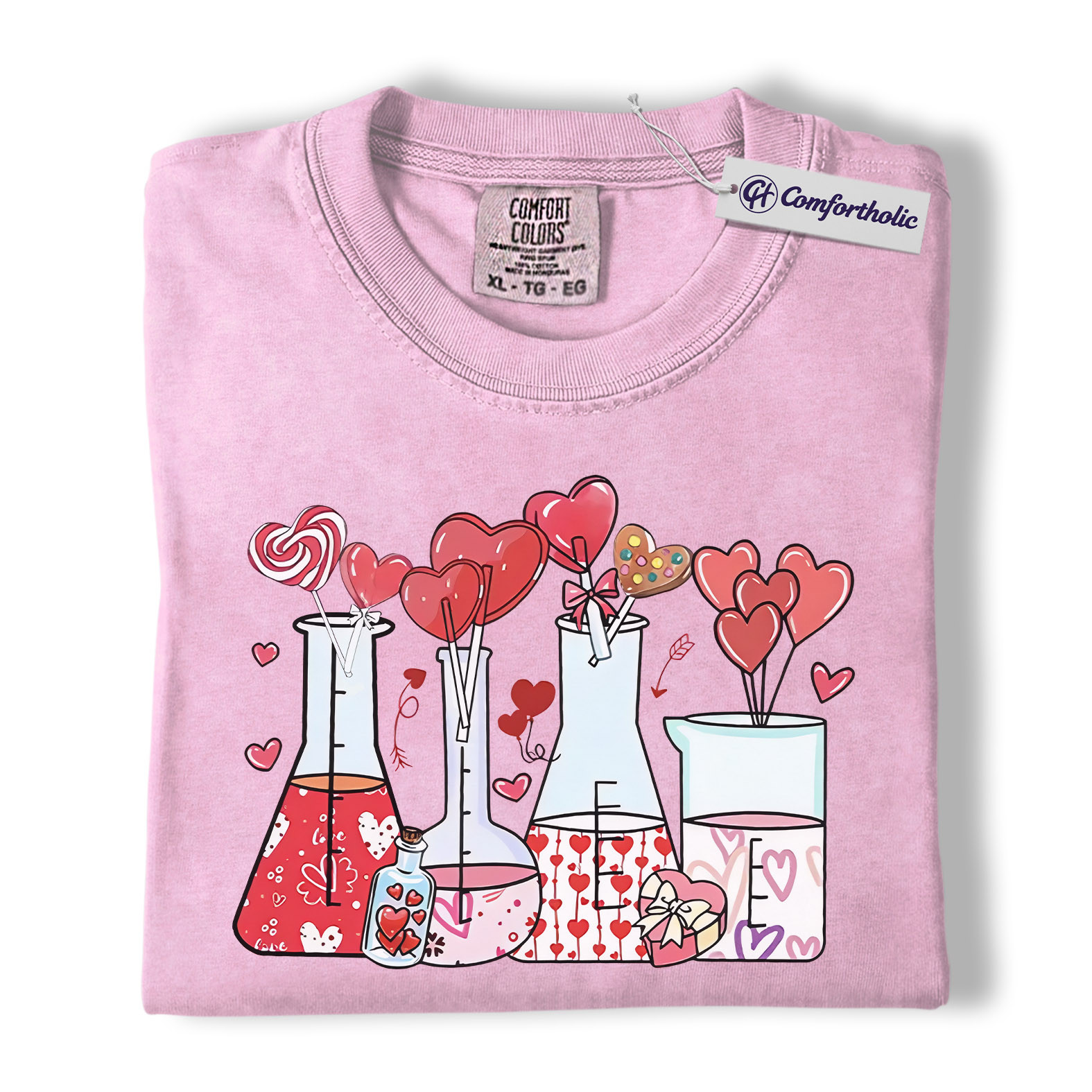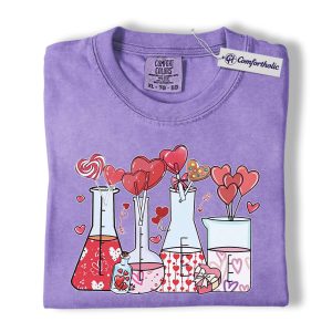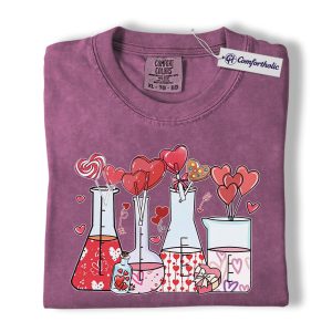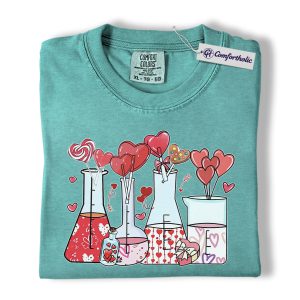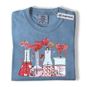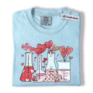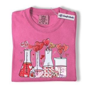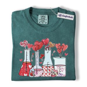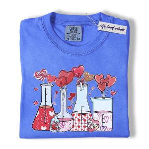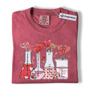 Valentine Chemistry Shirt, Cute Lab Beaker Heart Graphic Tee, Science Teacher Nerd T-Shirt, Valentine’s Day Gift for Chemists & STEM Lovers, Comfort Colors Shirt