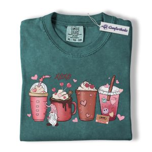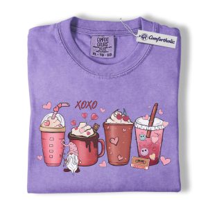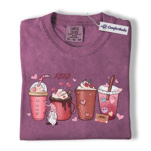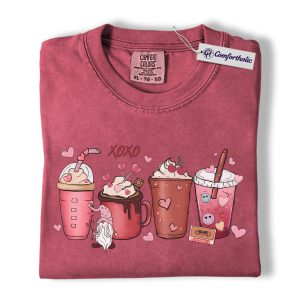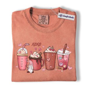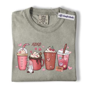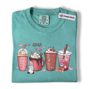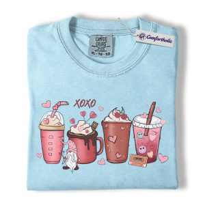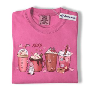 Valentine Coffee Drinks Shirt, Cute XOXO Latte Lover Graphic Tee, Aesthetic Pink Beverage T-Shirt, Sweet Valentine Gift for Coffee Lovers, Comfort Colors Shirt