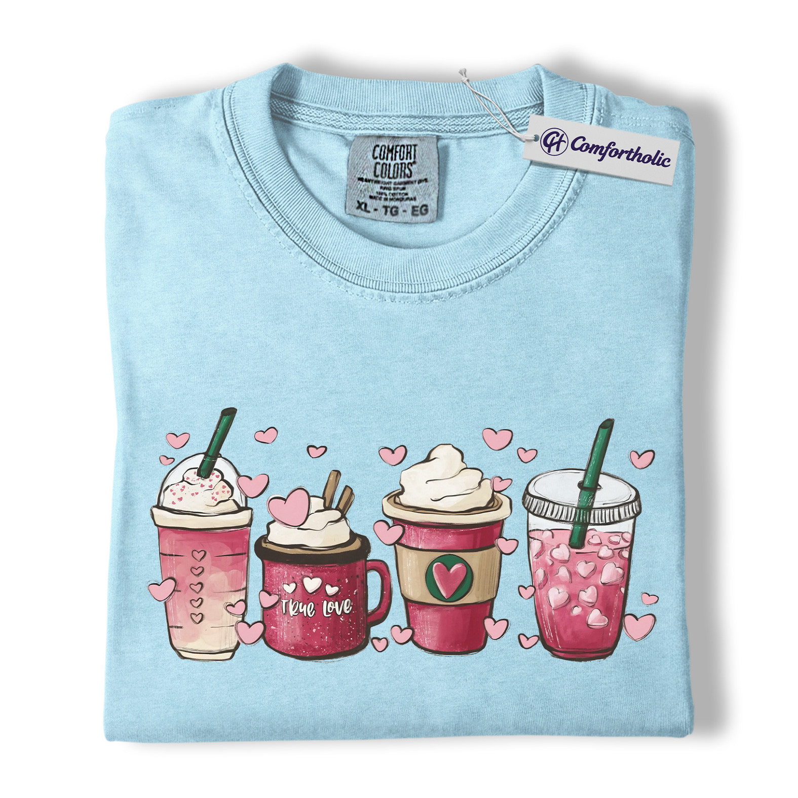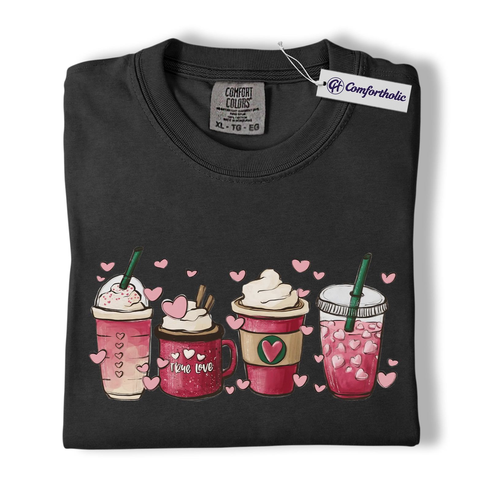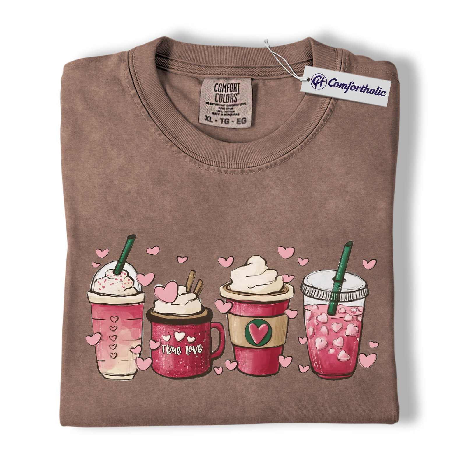 Valentine Coffee Shirt, Pink Drinks Graphic T-Shirt, Aesthetic Coffee Lover Tee, Cute Heart Cup Gift for Baristas and Coffee Girls, Comfort Colors Shirt