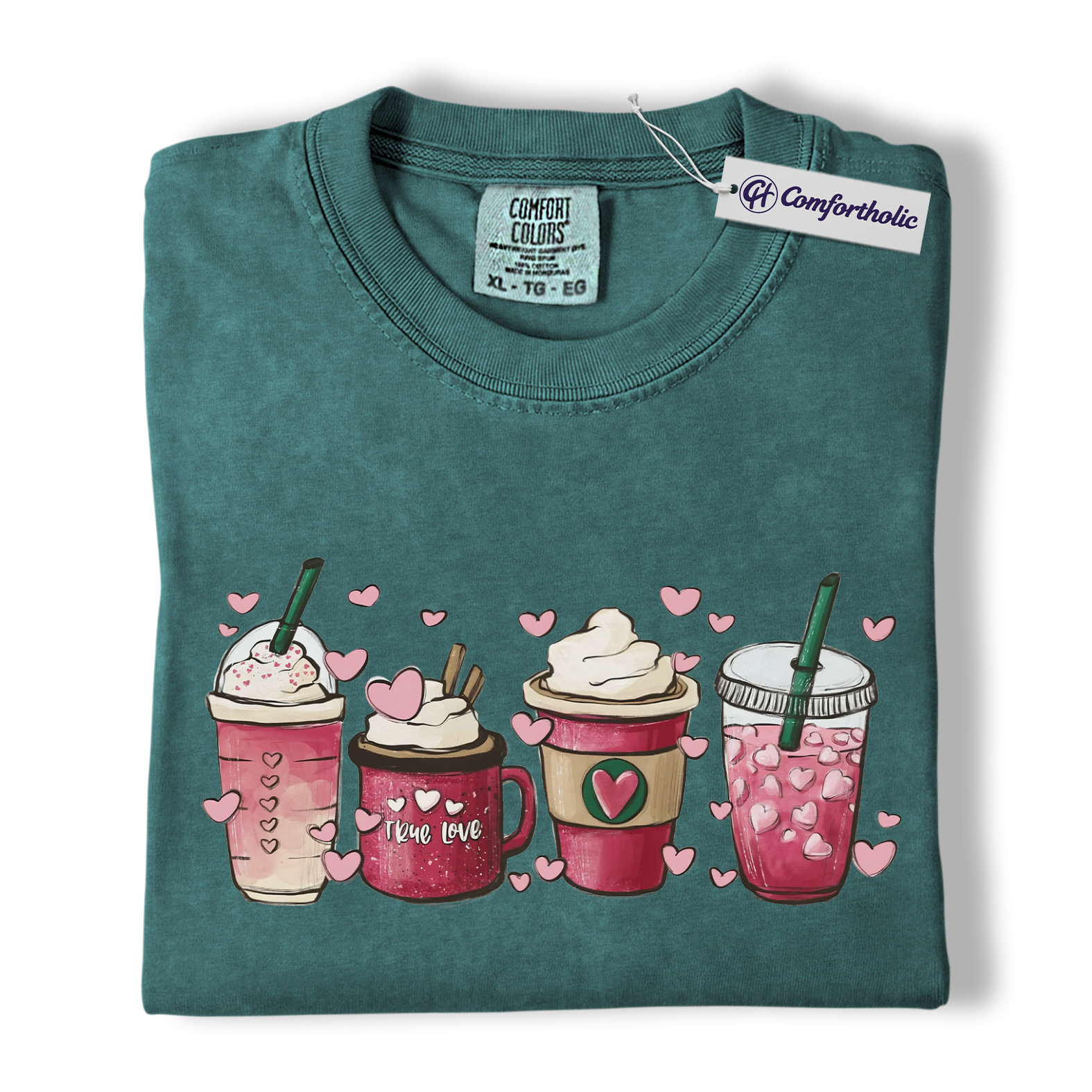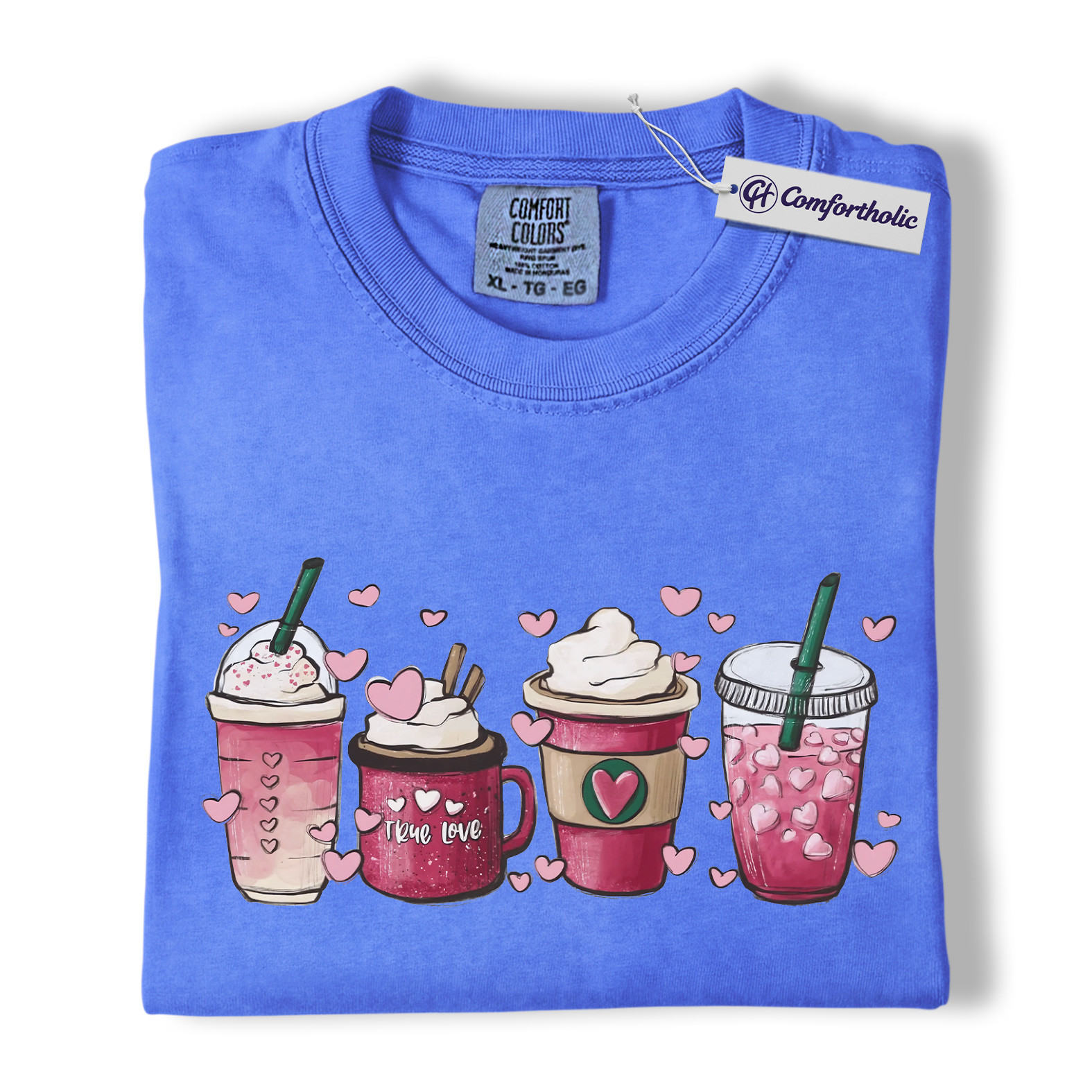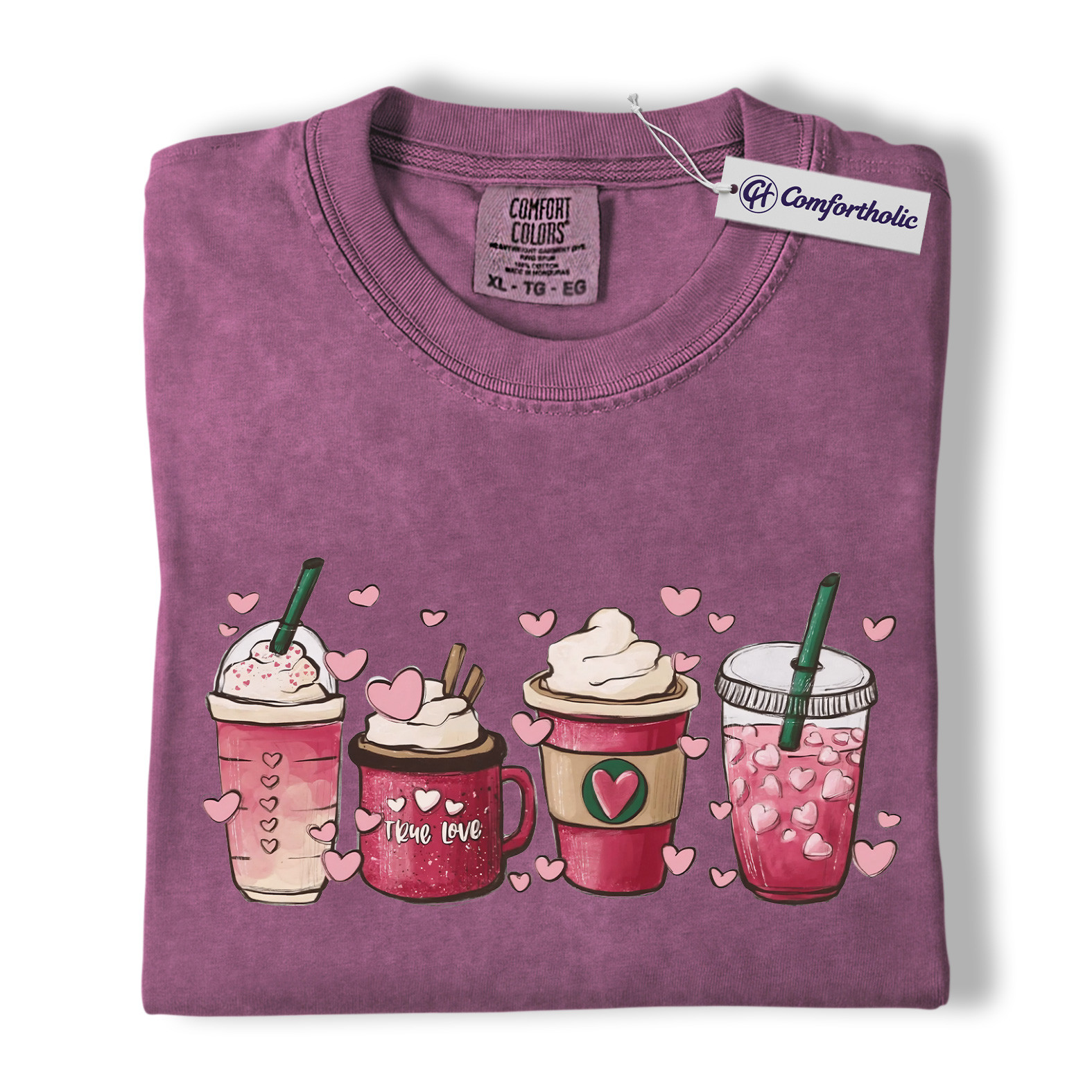 Valentine Coffee Shirt, Pink Drinks Graphic T-Shirt, Aesthetic Coffee Lover Tee, Cute Heart Cup Gift for Baristas and Coffee Girls, Comfort Colors Shirt