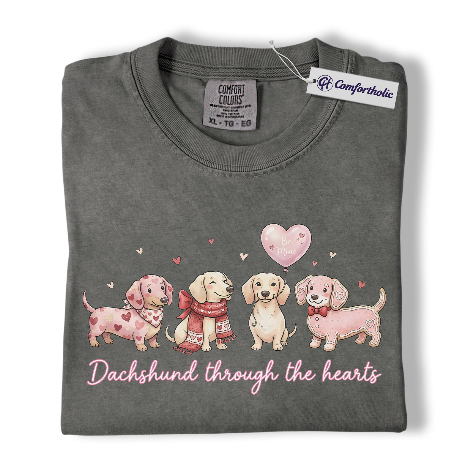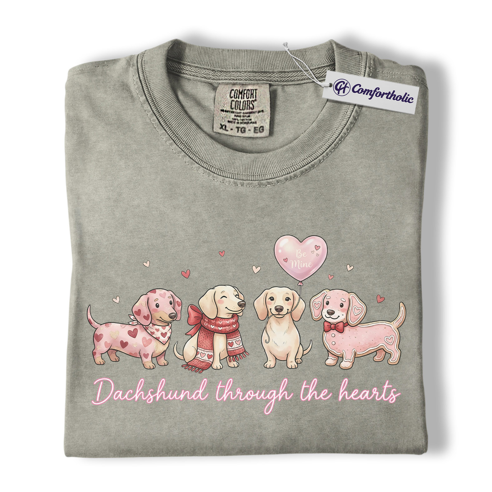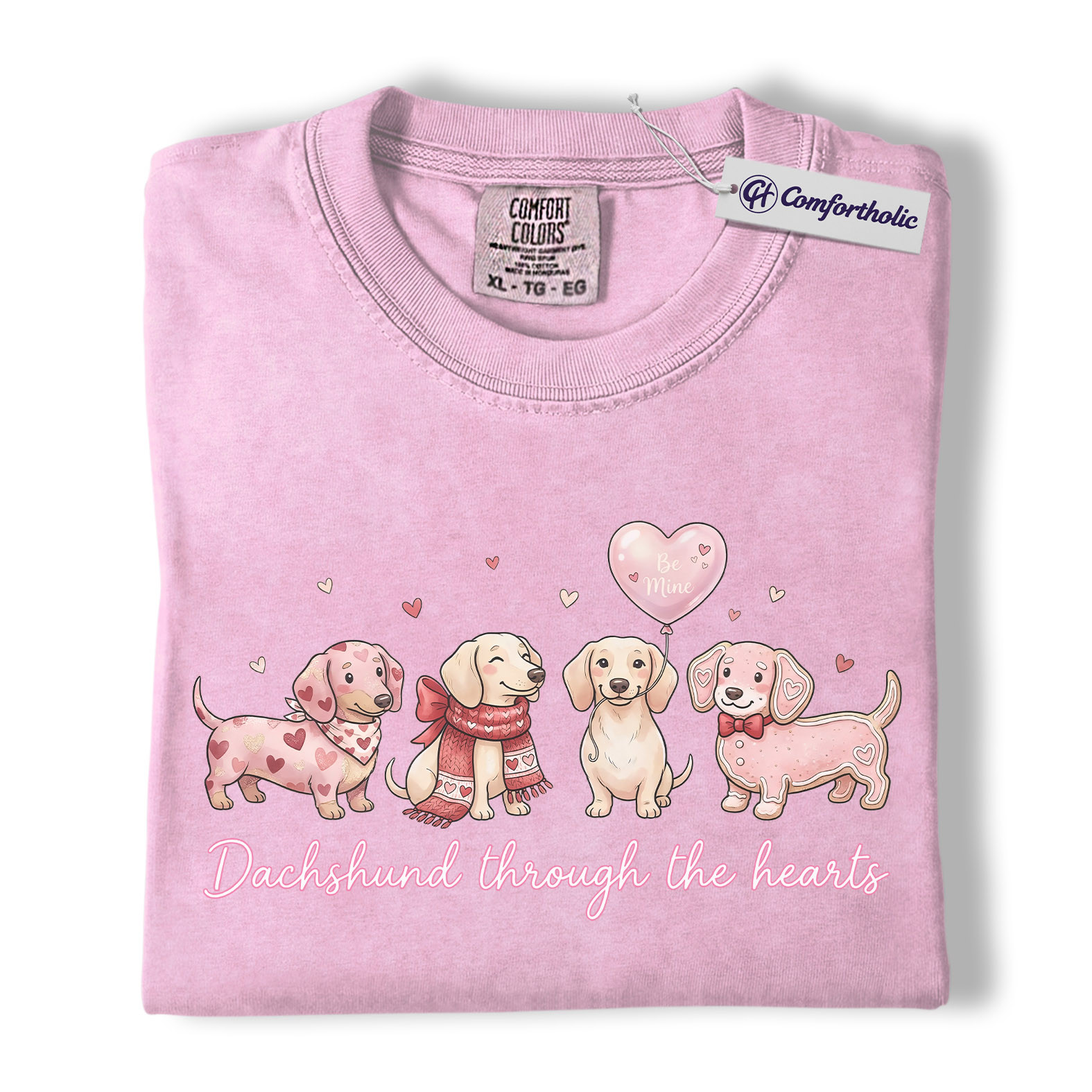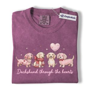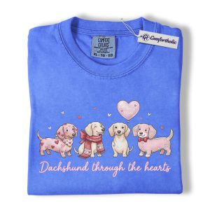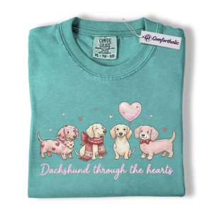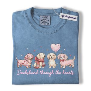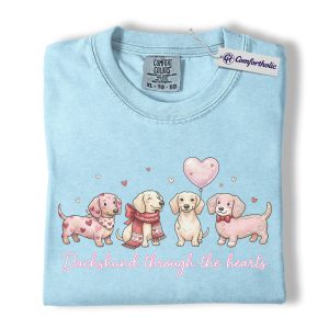 Valentine Dachshund Dog Shirt, Cute Heart Puppies Graphic Tee, Doxie Mom Lover T-Shirt, Valentine’s Day Gift for Dog Moms, Comfort Colors Shirt