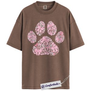 Valentine Dog Paw Shirt, Pink Coquette Bow Paw Print Graphic Tee, Cute Dog Mom T-Shirt, Valentine’s Day Gift for Pet Lovers, Comfort Colors Shirt
