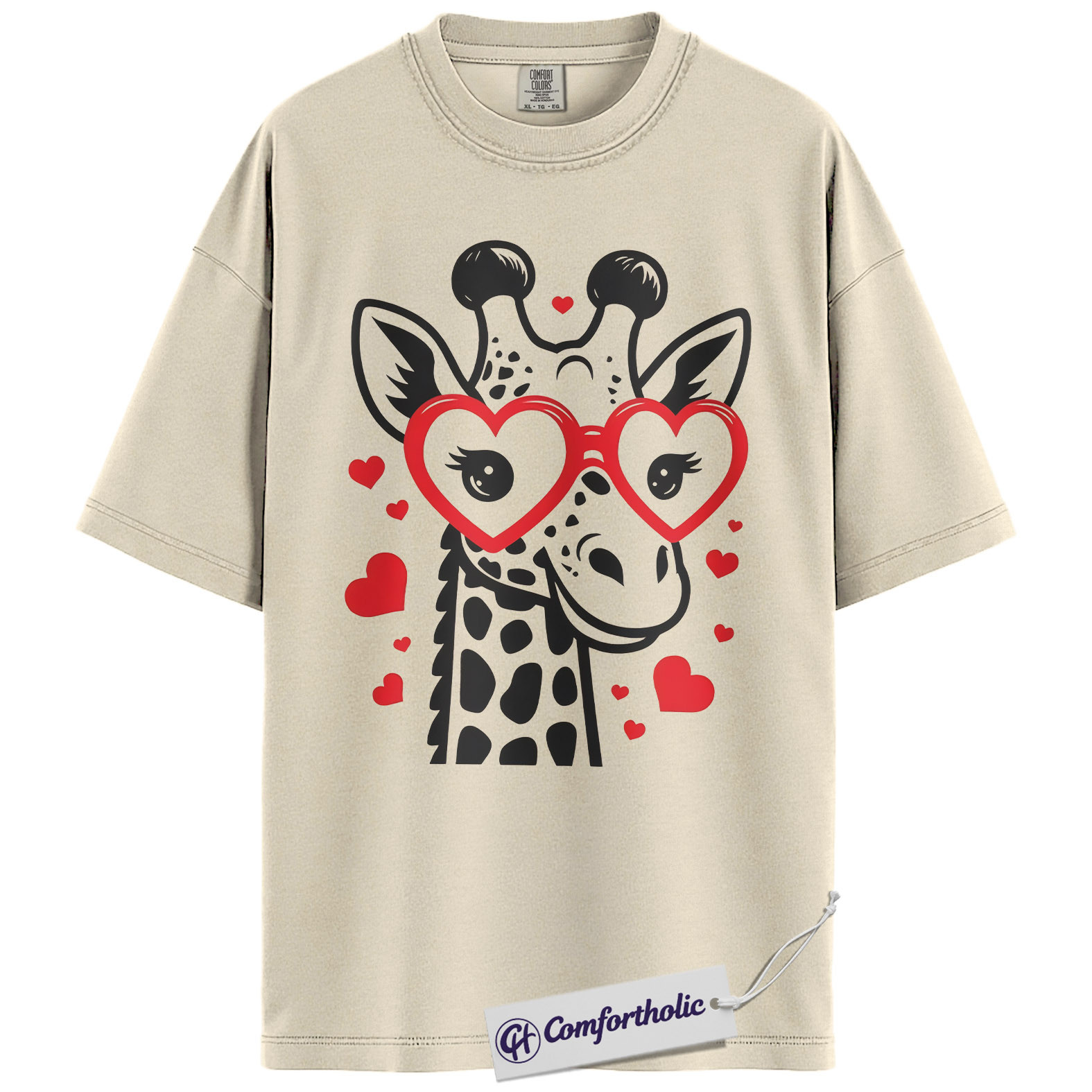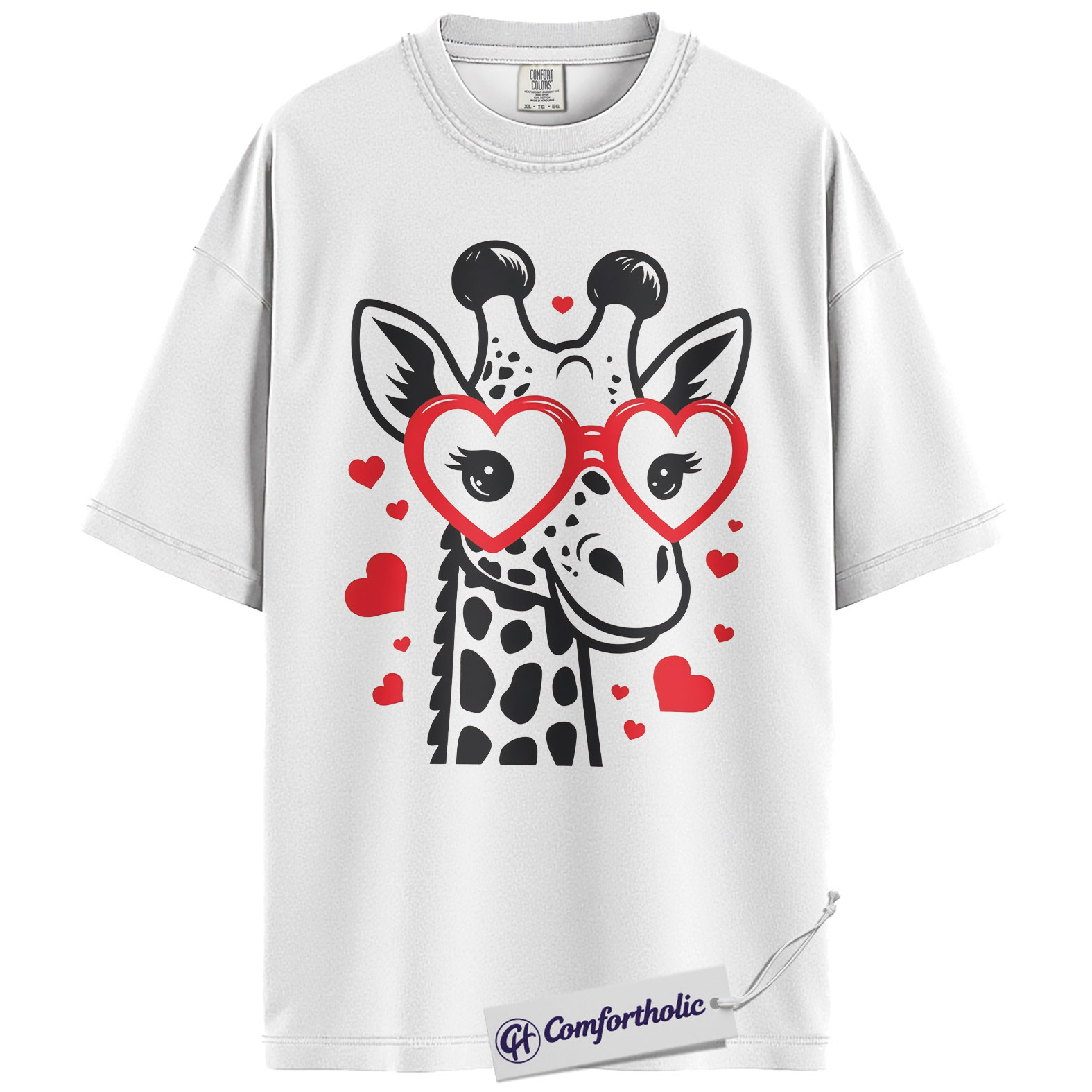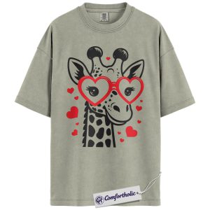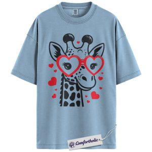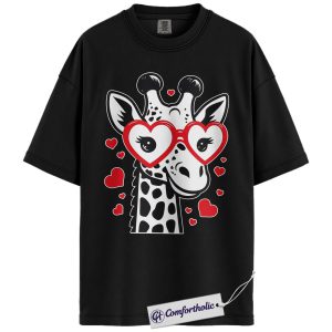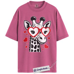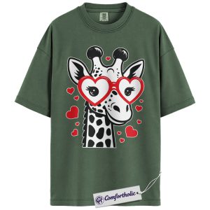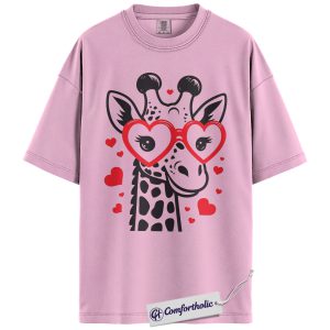 Valentine Giraffe Shirt, Cute Heart Glasses Graphic Tee, Giraffe Lover T-Shirt, Valentine’s Day Gift for Girls & Animal Lovers, Comfort Colors Shirt