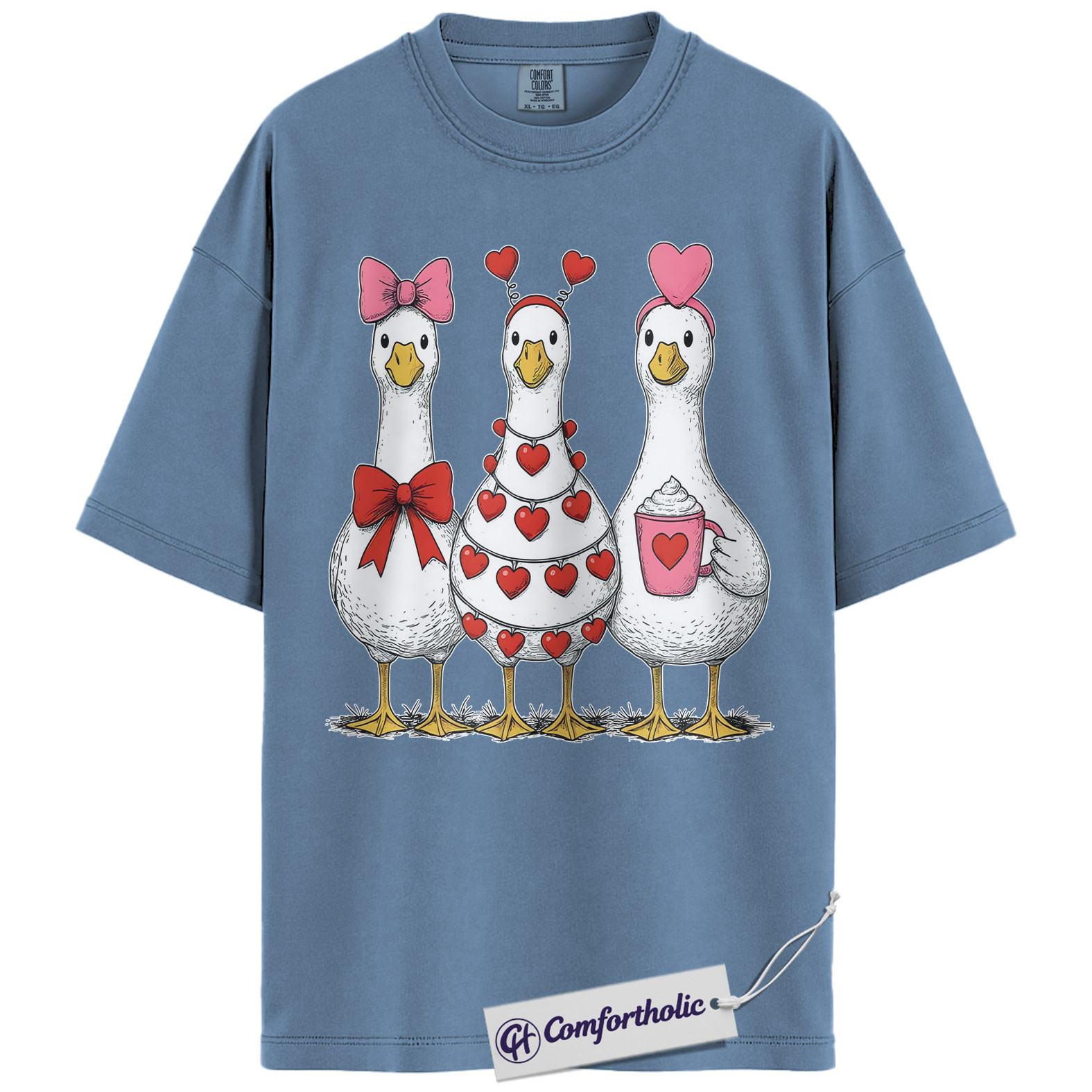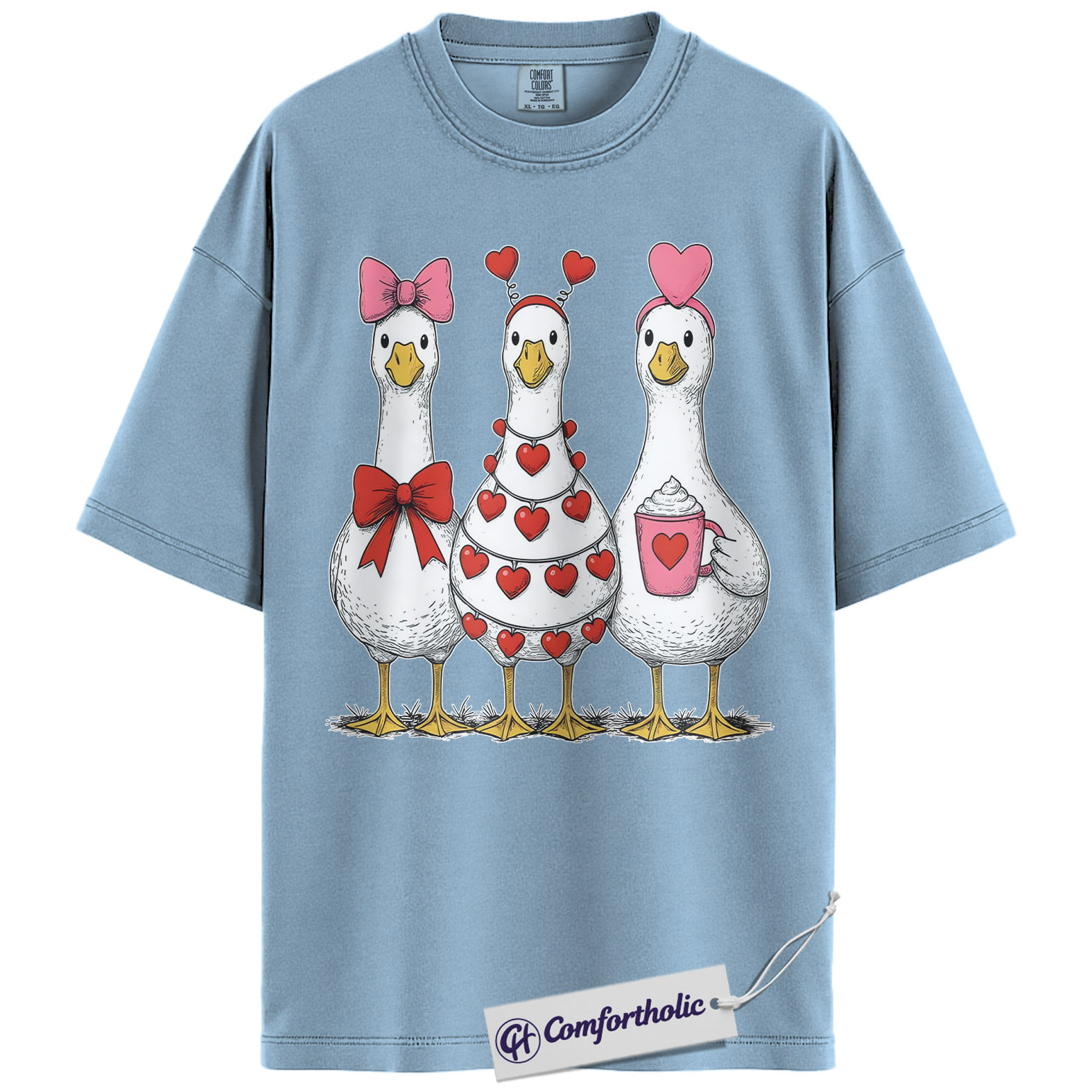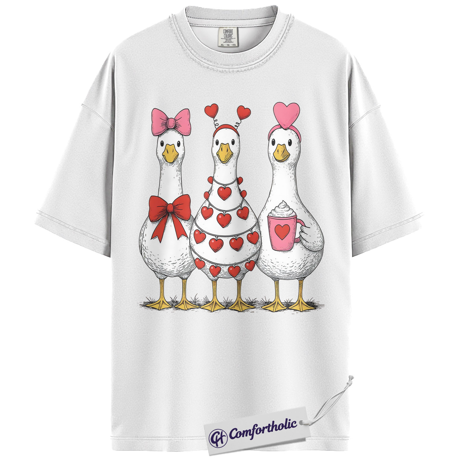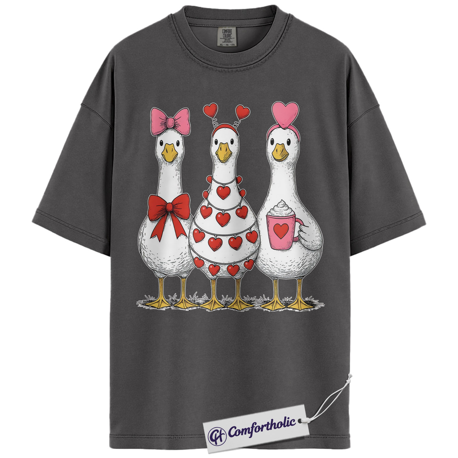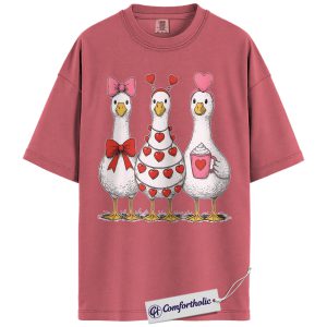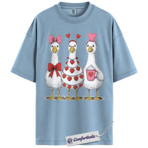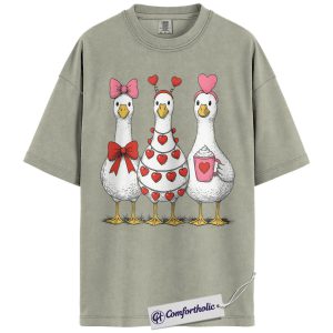 Valentine Goose Shirt, Cute Hearts & Bows Graphic Tee, Funny Duck Lover T-Shirt, Gift for Farm Animal Lovers, Comfort Colors Shirt