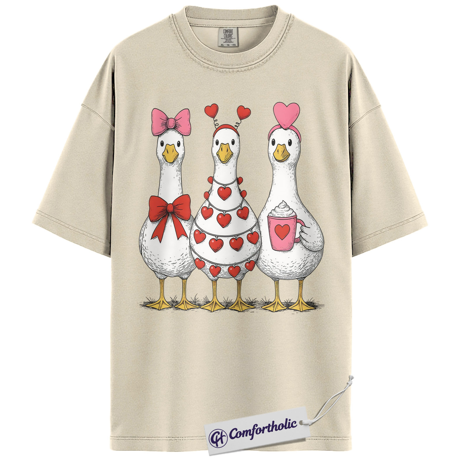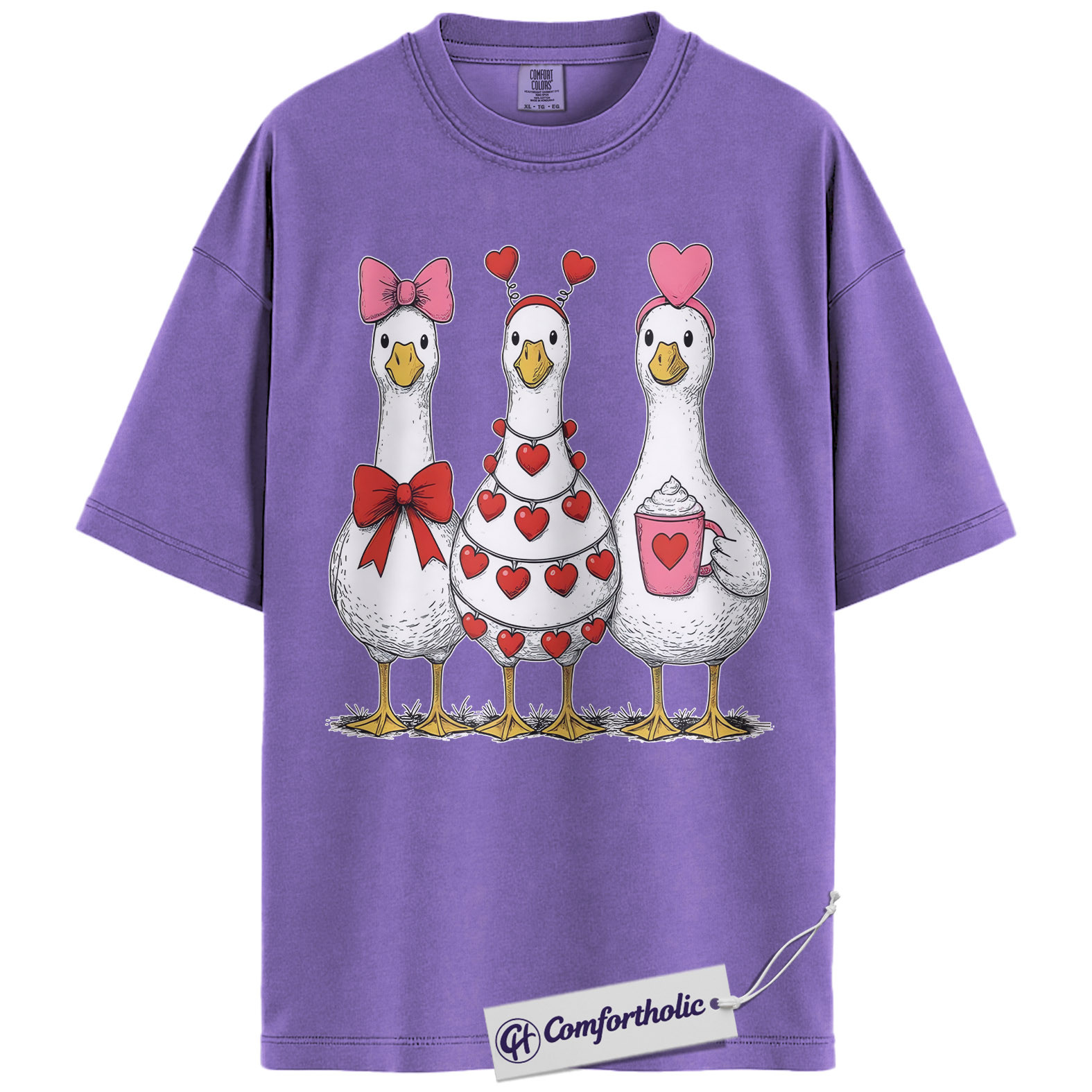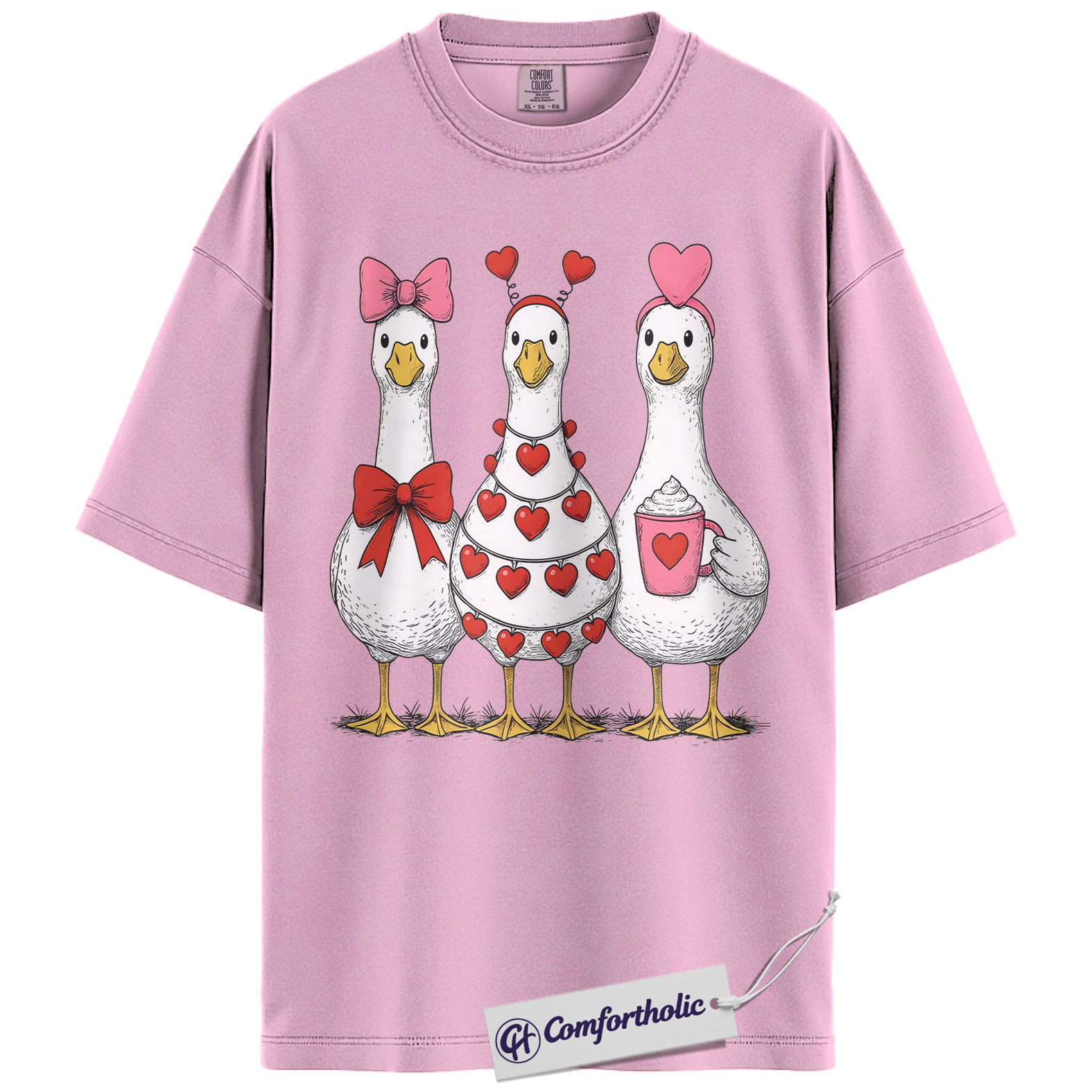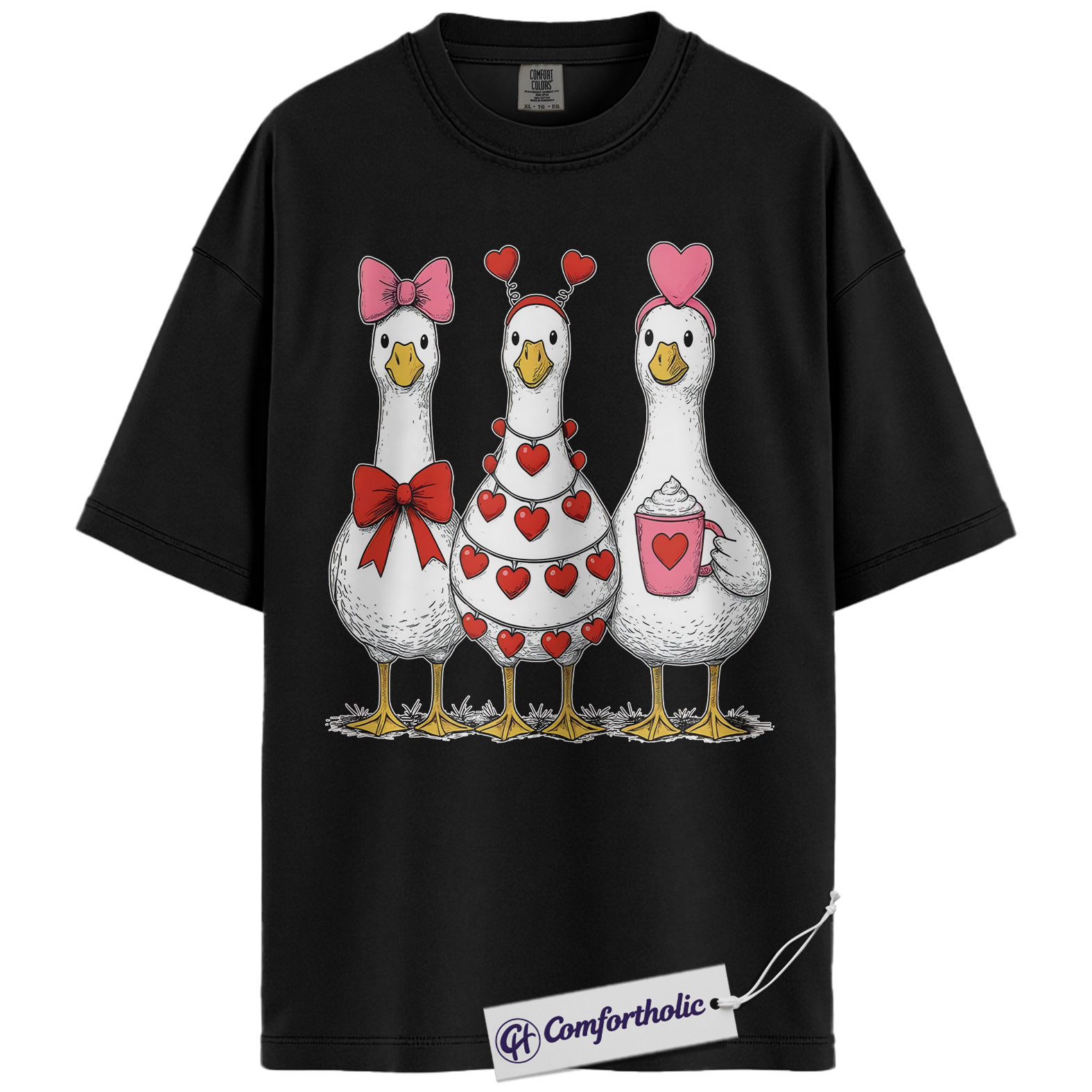 Valentine Goose Shirt, Cute Hearts & Bows Graphic Tee, Funny Duck Lover T-Shirt, Gift for Farm Animal Lovers, Comfort Colors Shirt