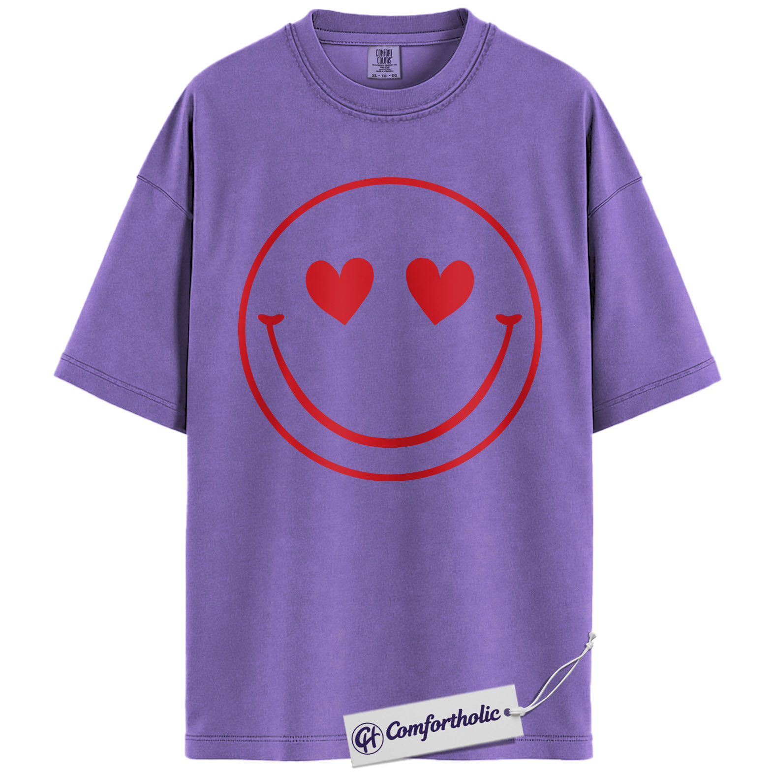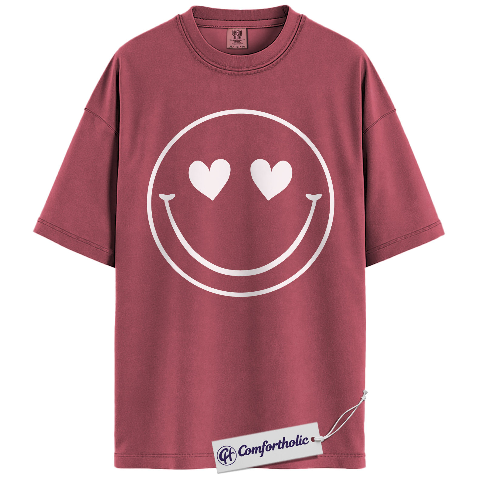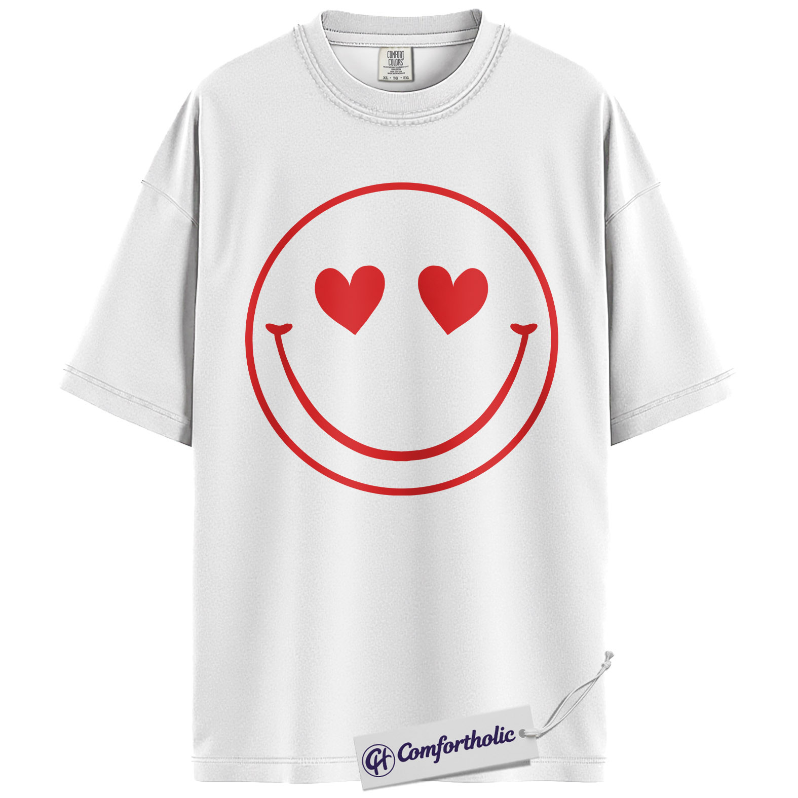 Valentine Heart Eyes Smiley Shirt, Cute Retro Smile Graphic Tee, Love Emoji Aesthetic T-Shirt, Gift for Her Valentines Day Outfit, Comfort Colors Shirt