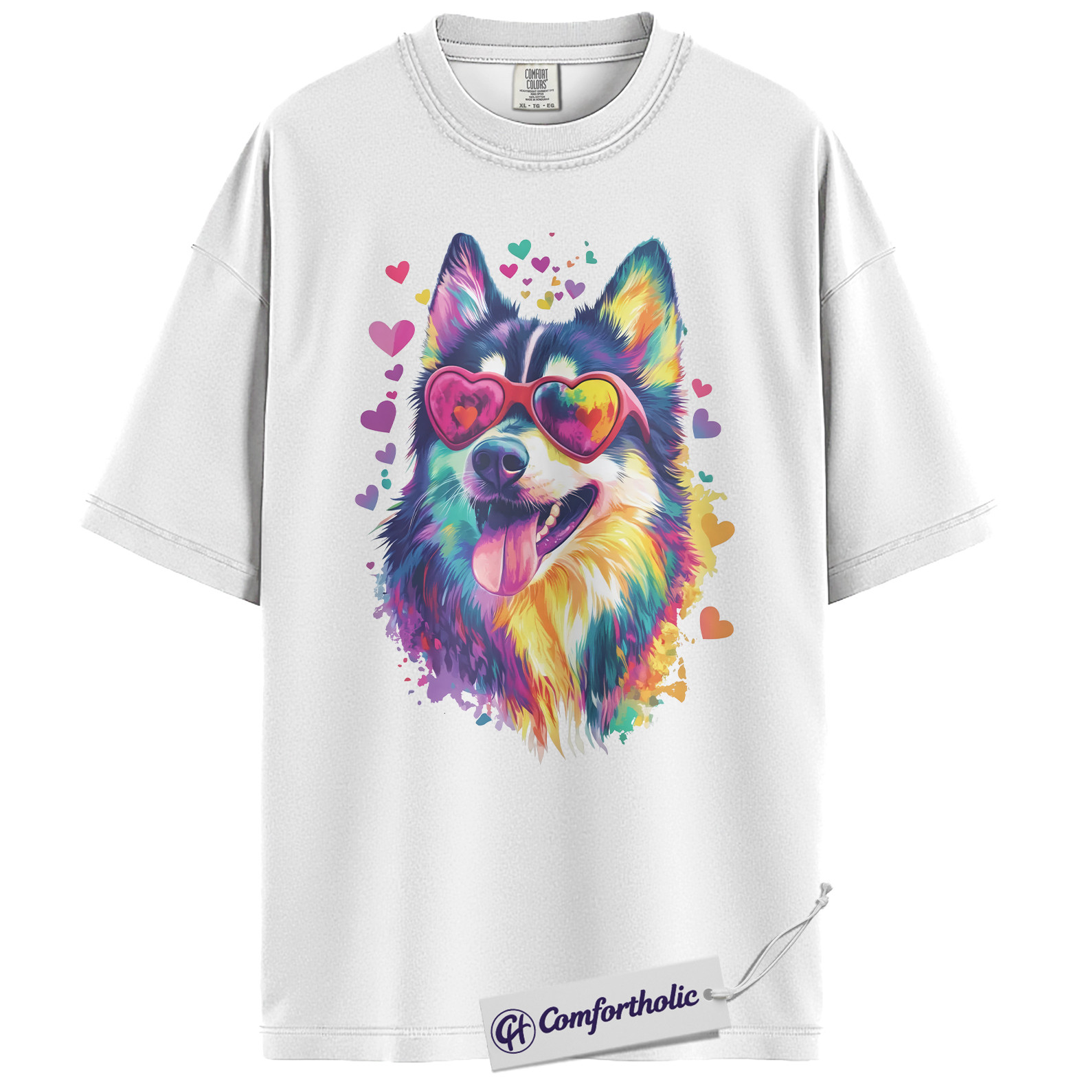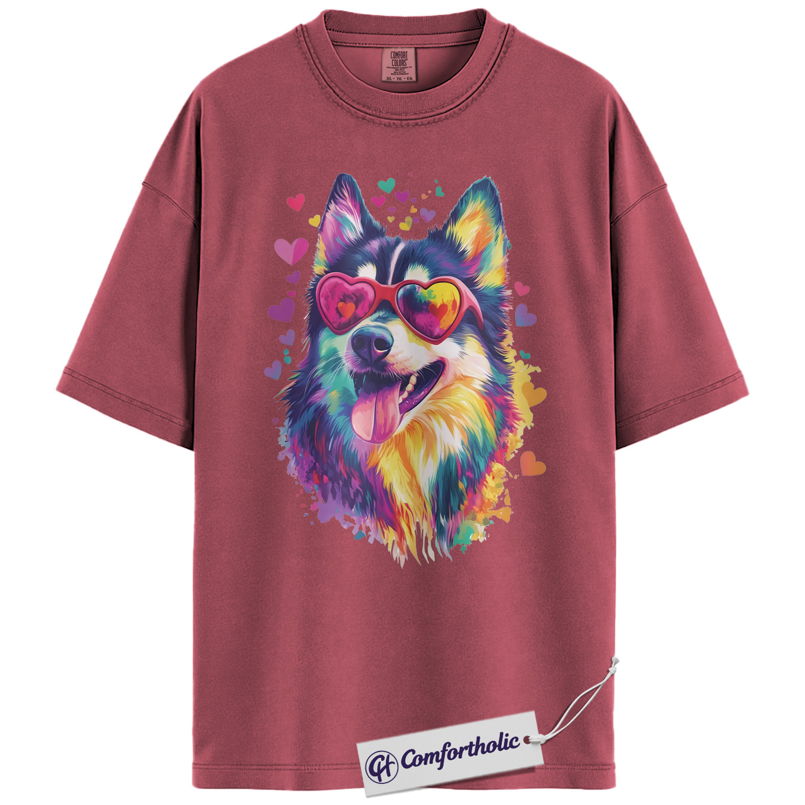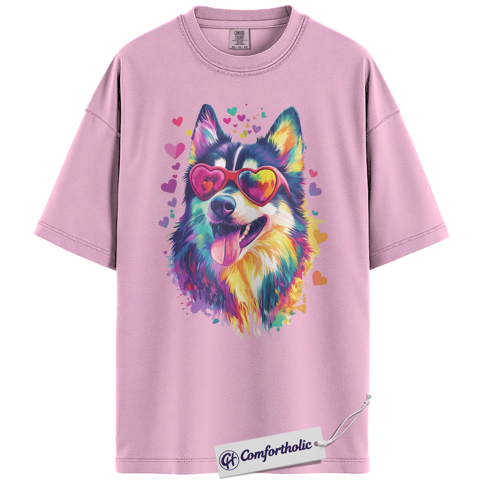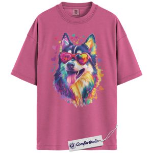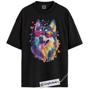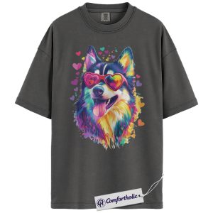 Valentine Husky Shirt, Colorful Dog Lover Graphic Tee, Vibrant Watercolor Husky Art T-Shirt, Cute Puppy Love Gift for Pet Owners & Dog Moms, Comfort Colors Shirt