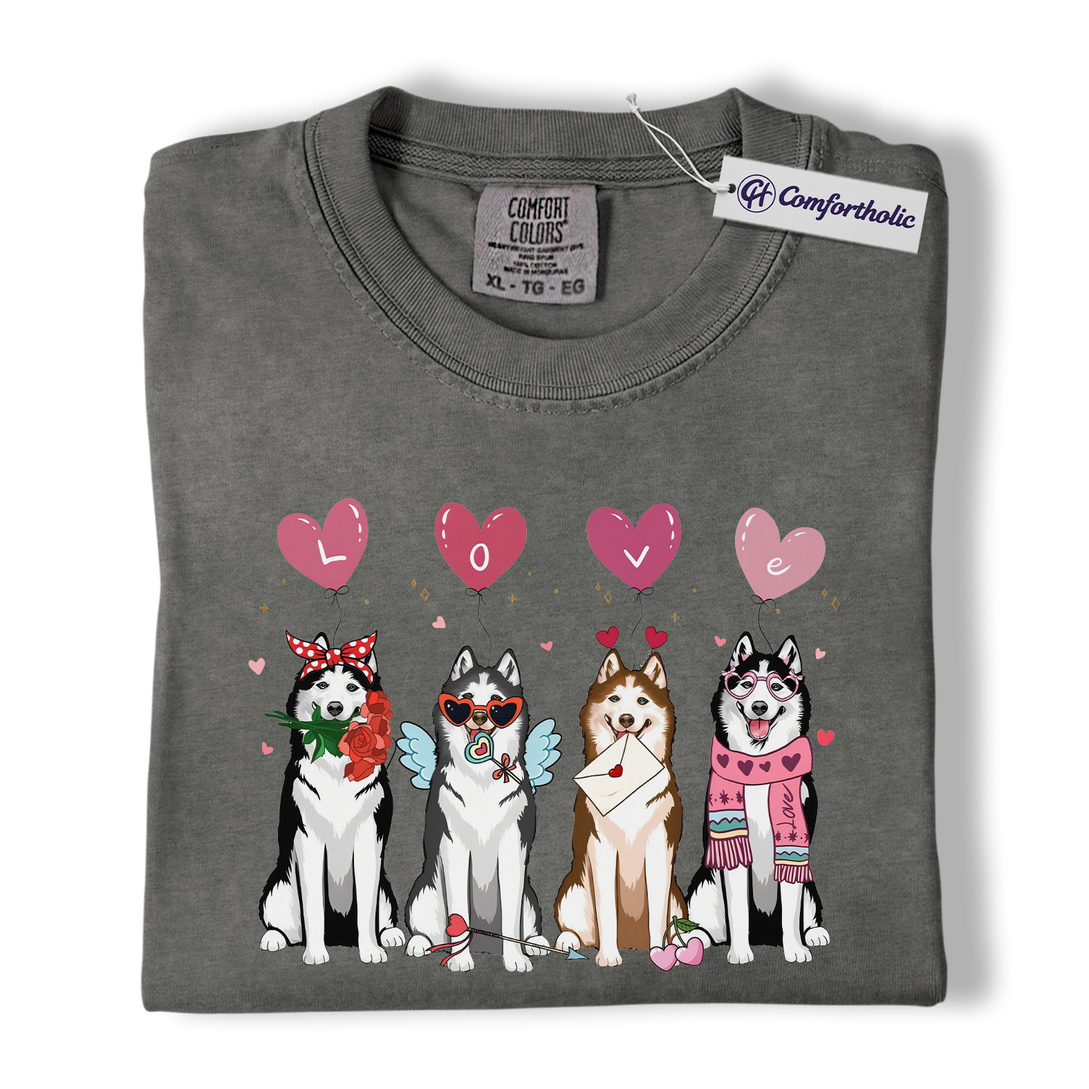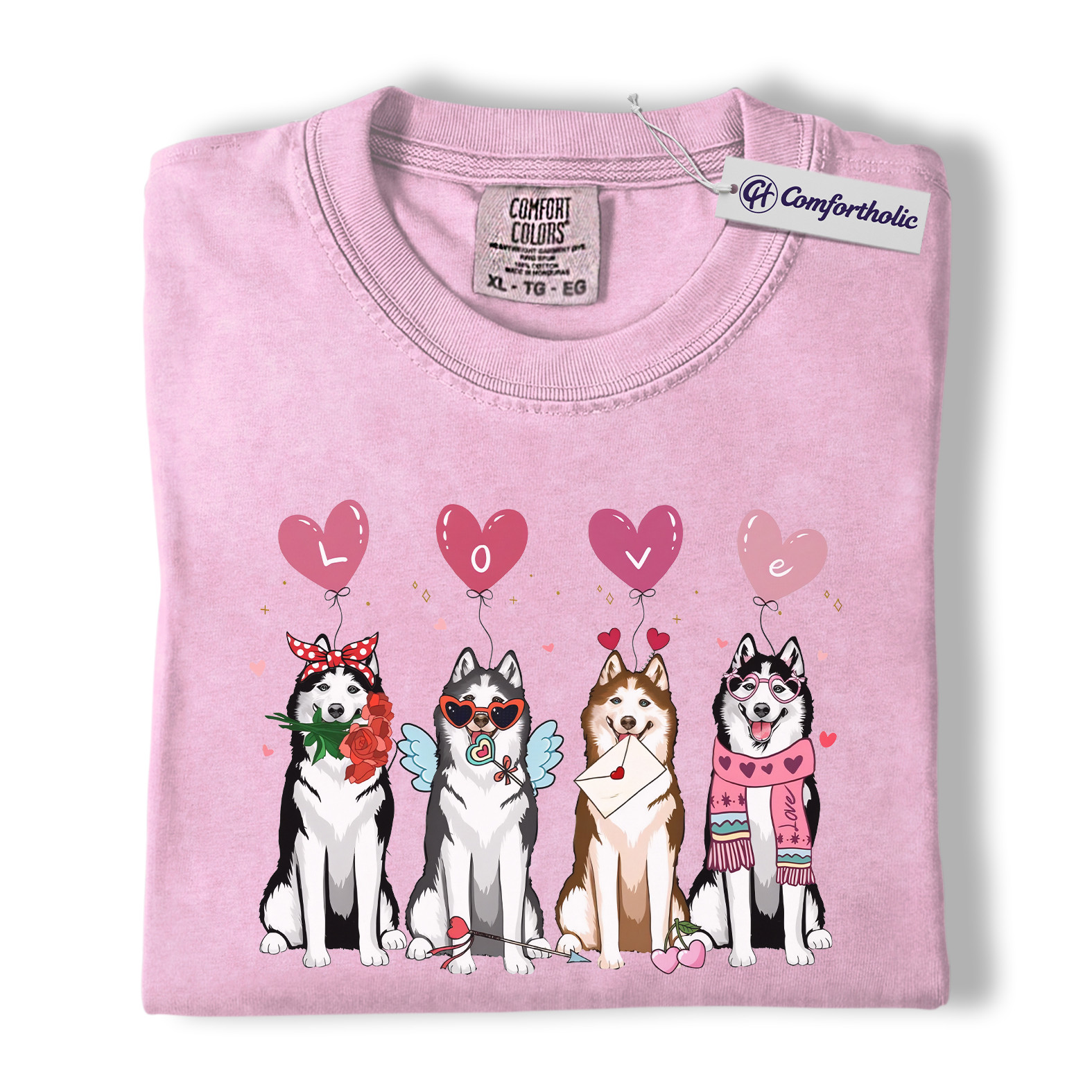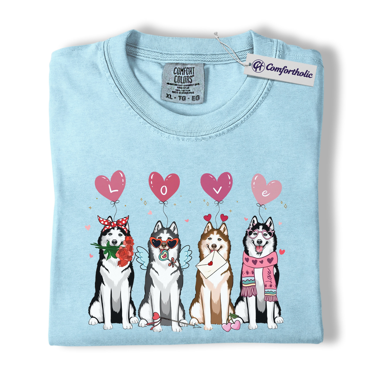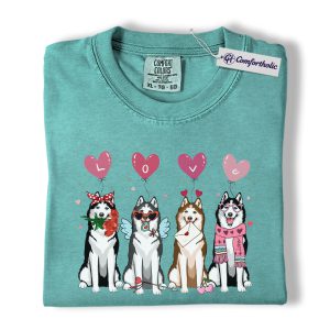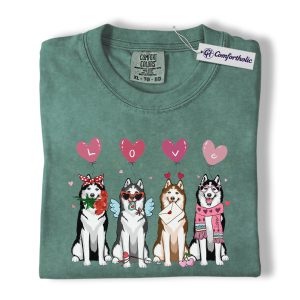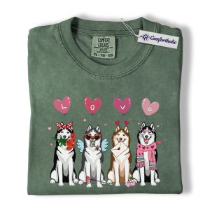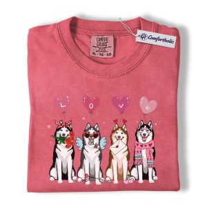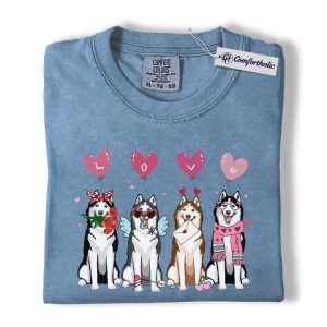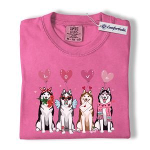 Valentine Husky Shirt, Cute Dog Lover Cartoon Graphic Tee, Puppy Love T-Shirt, Sweet Husky Gift for Dog Moms & Pet Owners, Comfort Colors Shirt