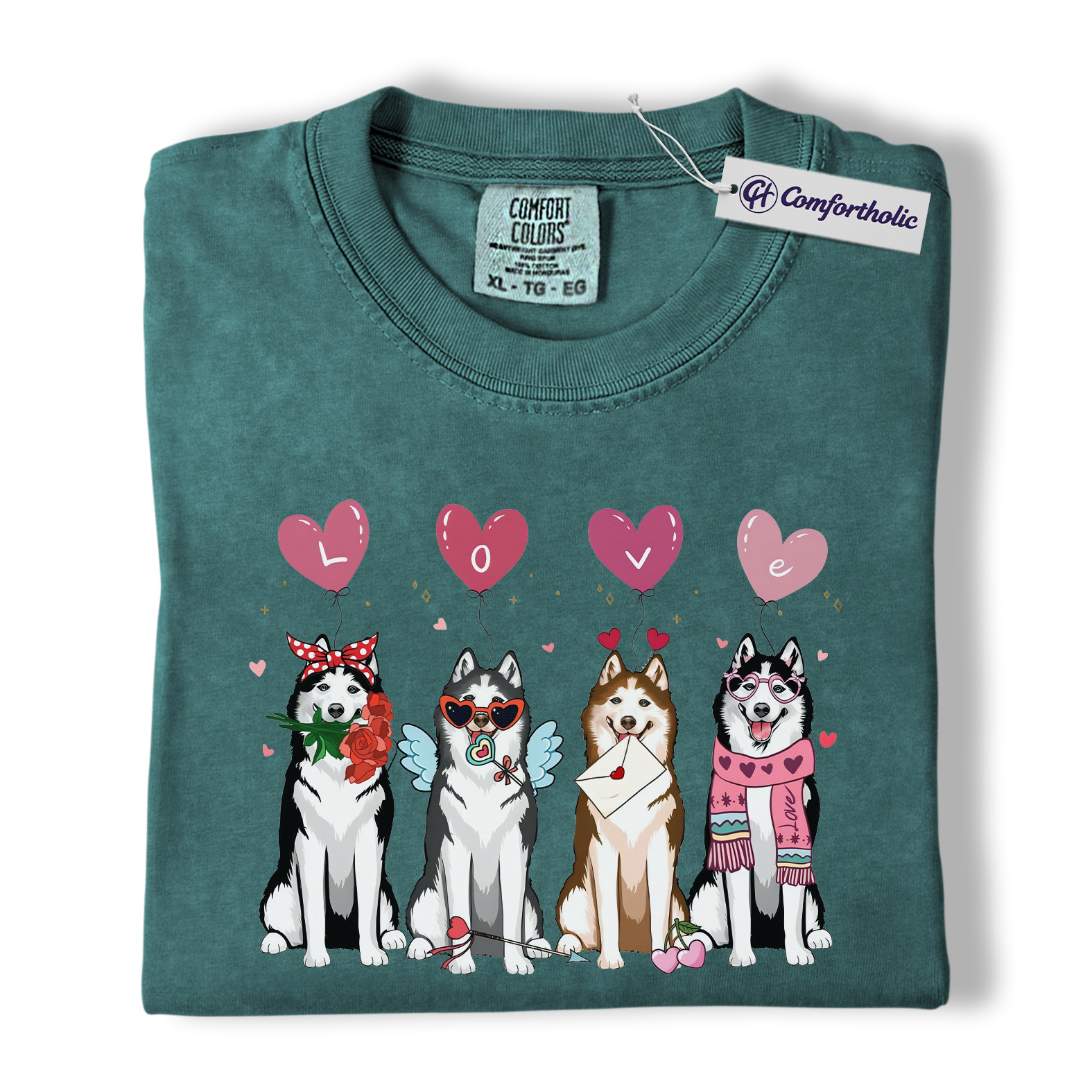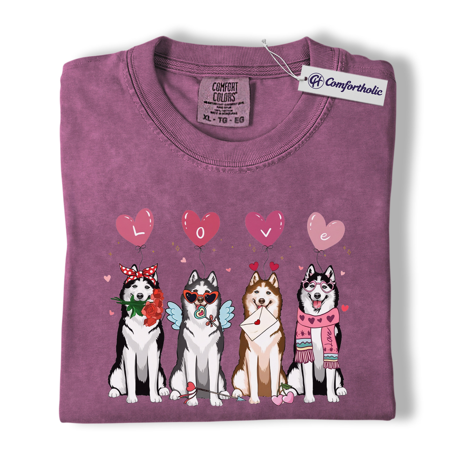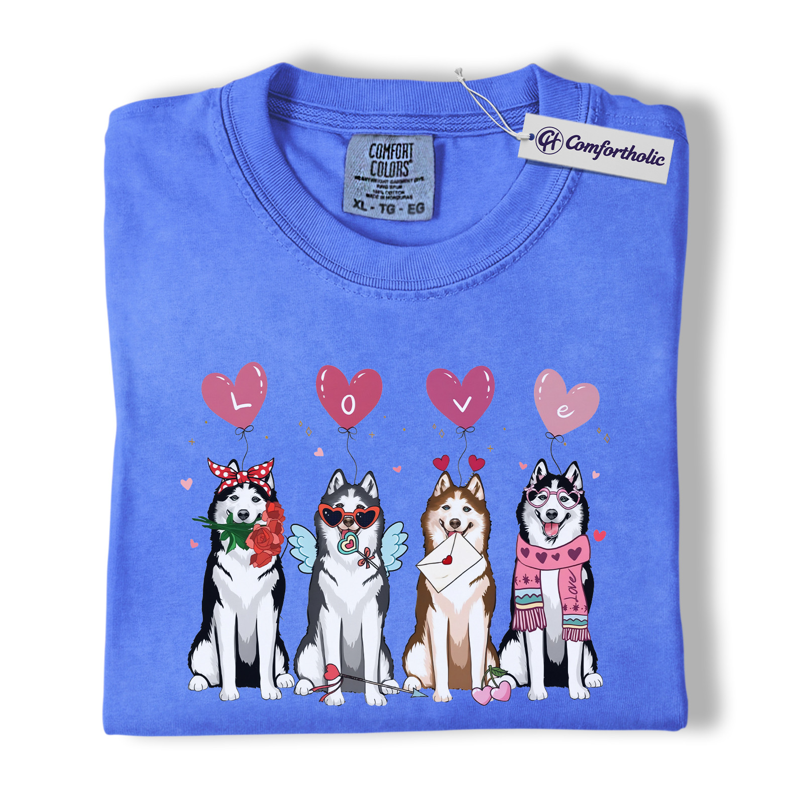 Valentine Husky Shirt, Cute Dog Lover Cartoon Graphic Tee, Puppy Love T-Shirt, Sweet Husky Gift for Dog Moms & Pet Owners, Comfort Colors Shirt