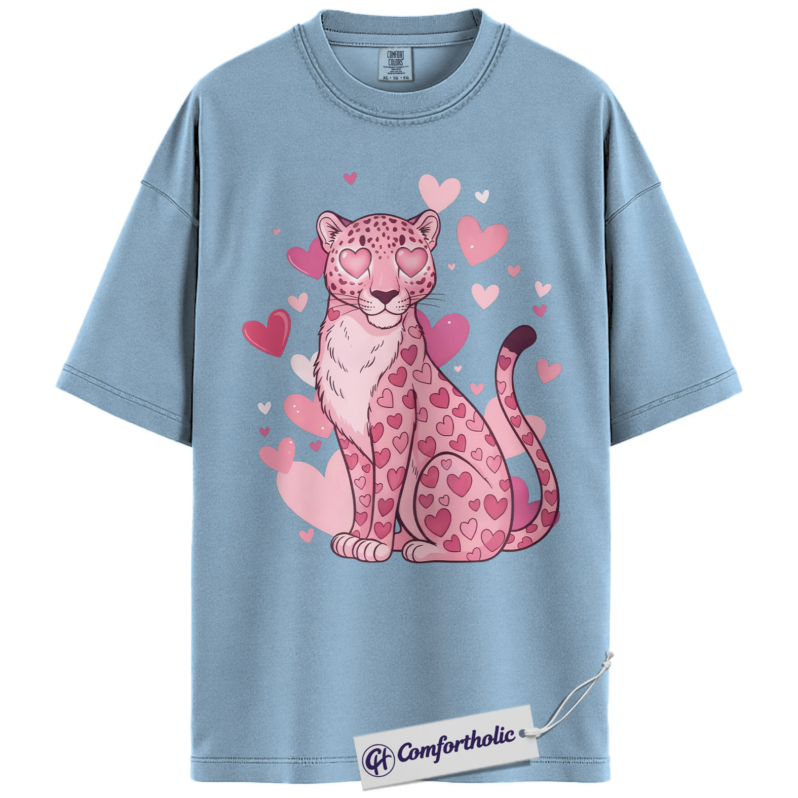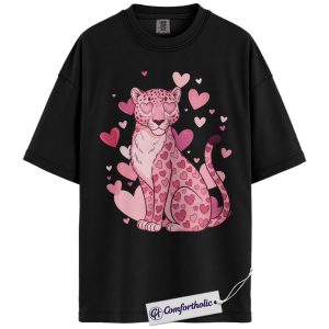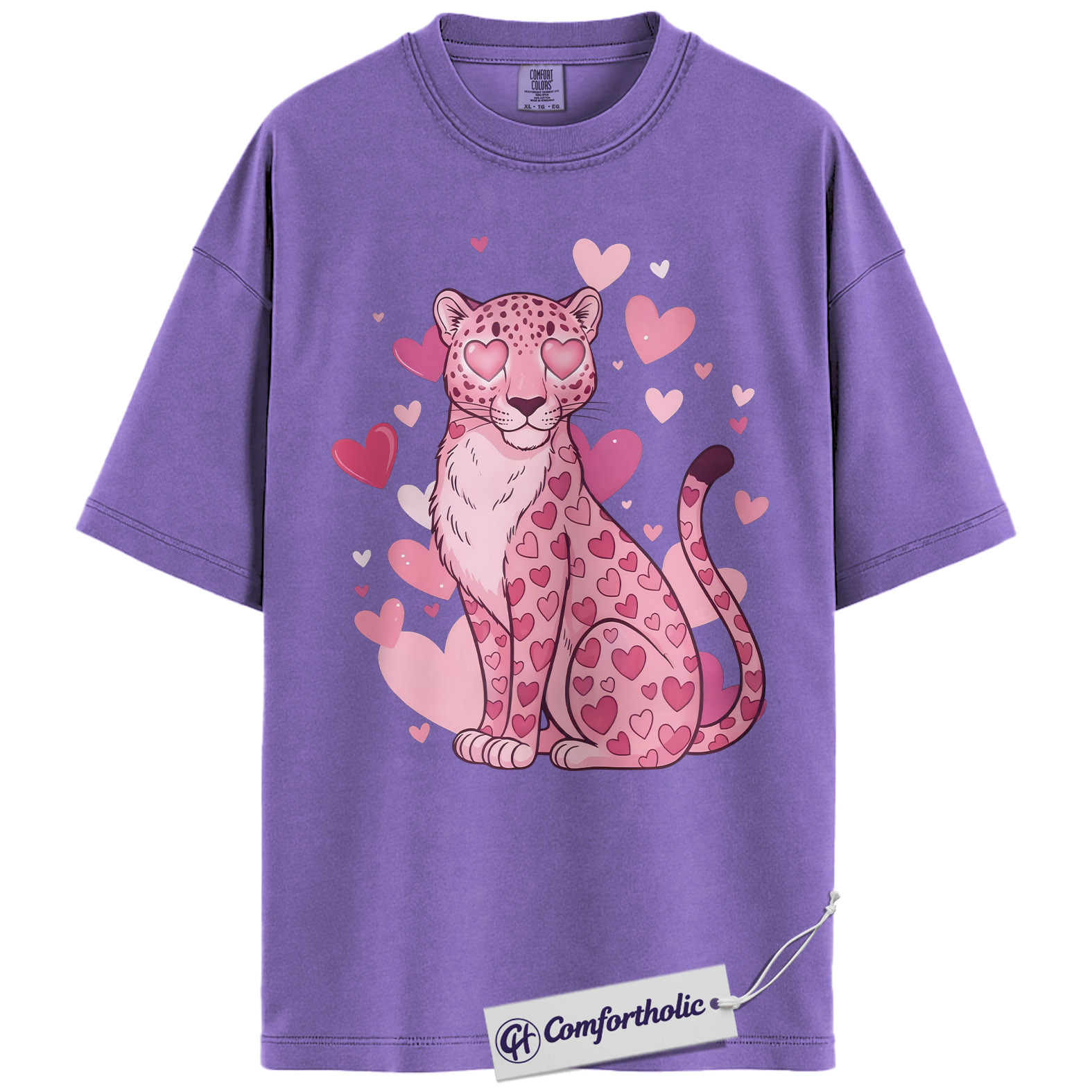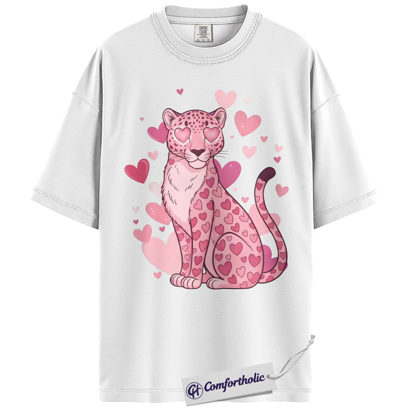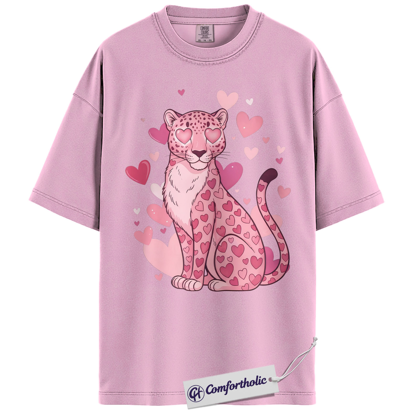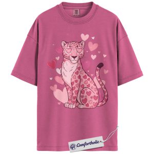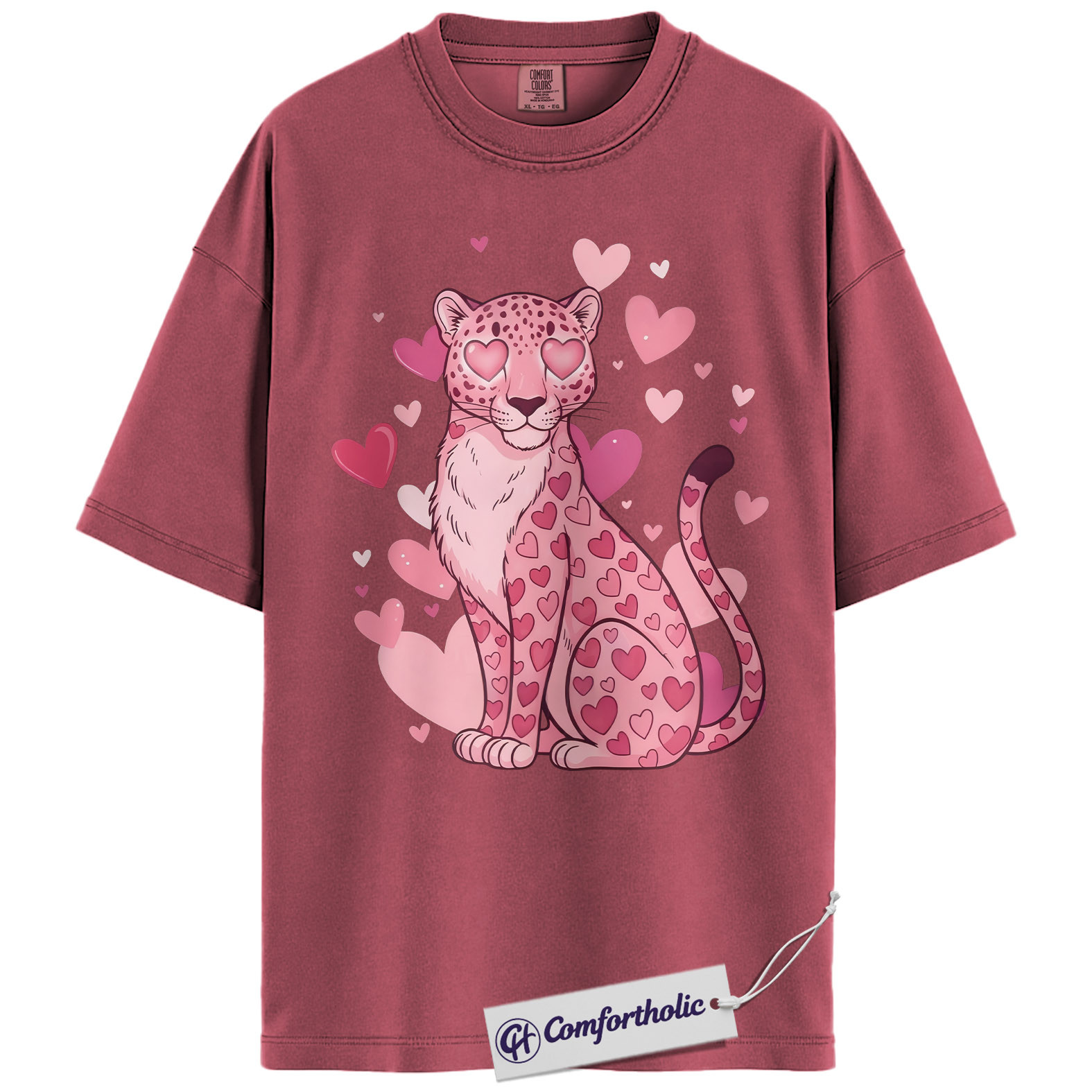 Valentine Leopard Shirt, Cute Heart Eyes Big Cat Graphic Tee, Pink Wild Animal Lover T-Shirt, Valentine’s Day Gift for Wildlife Lovers, Comfort Colors Shirt