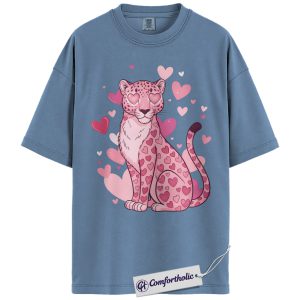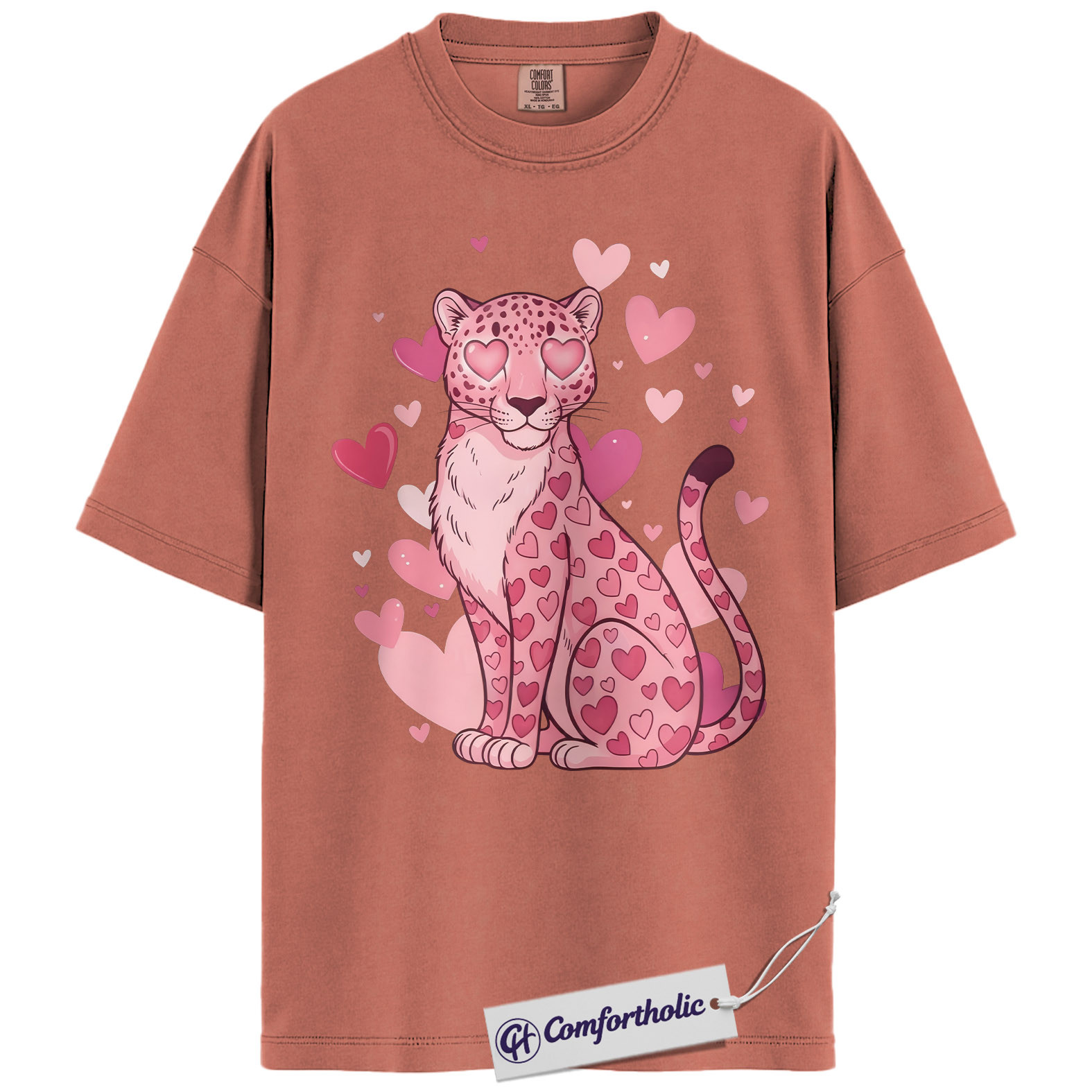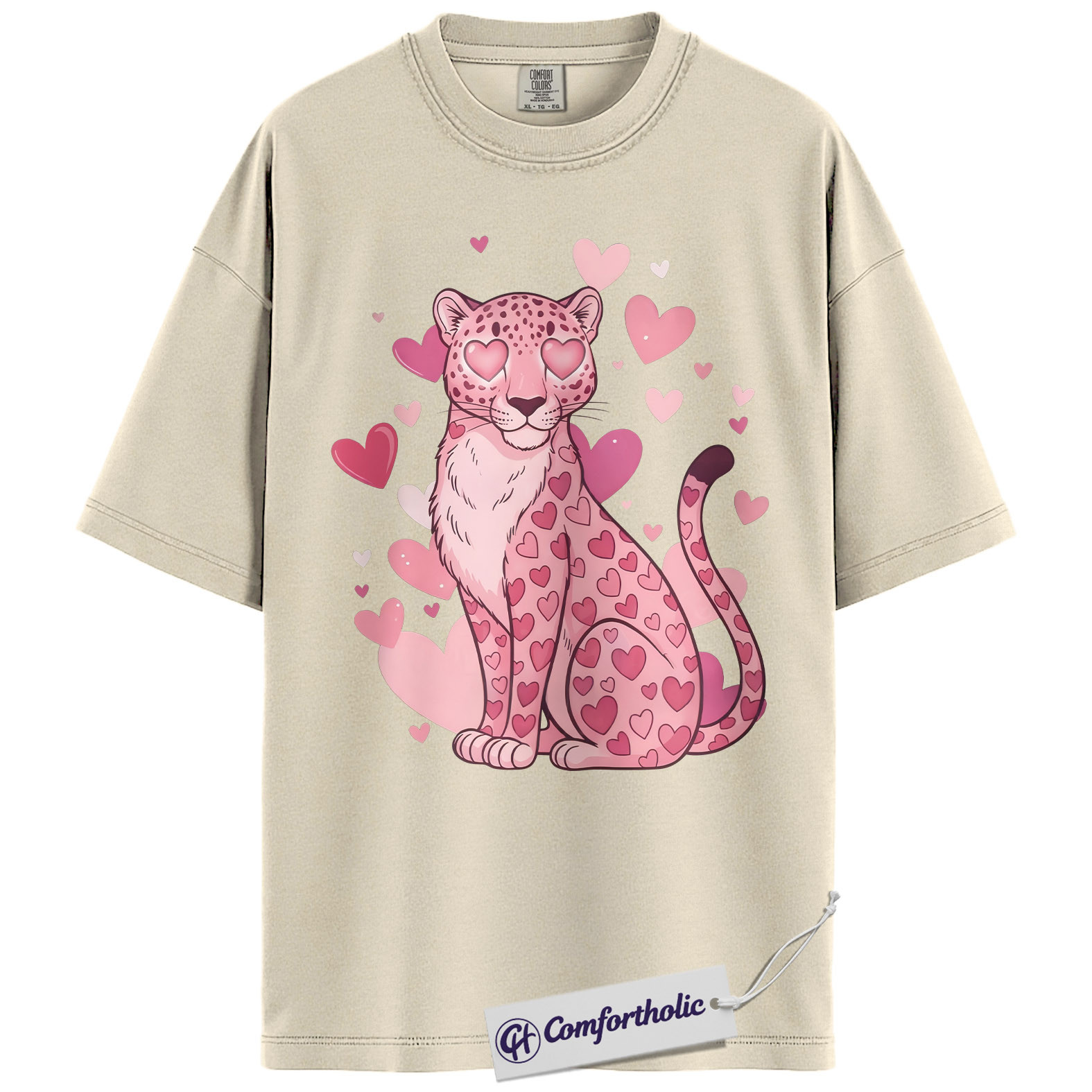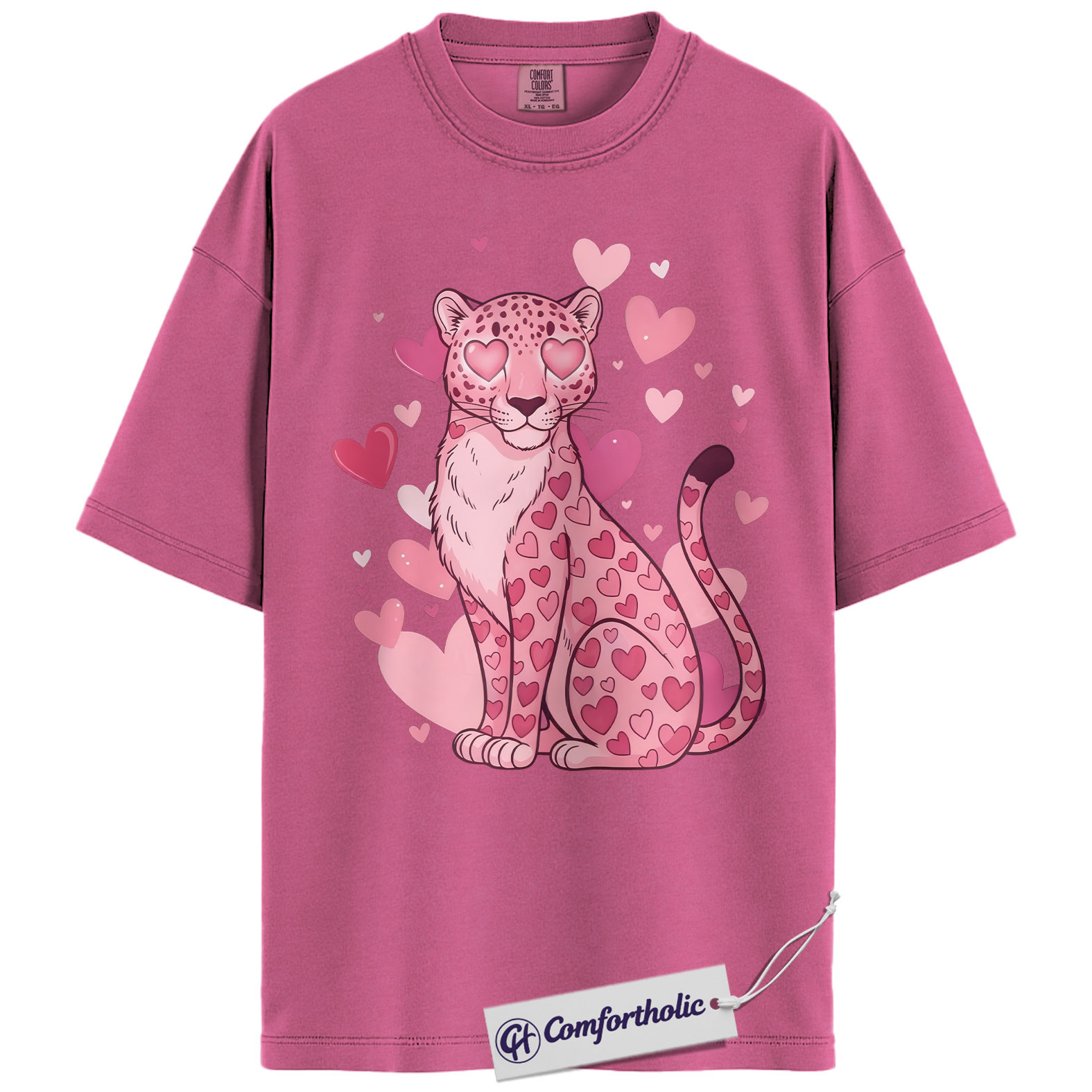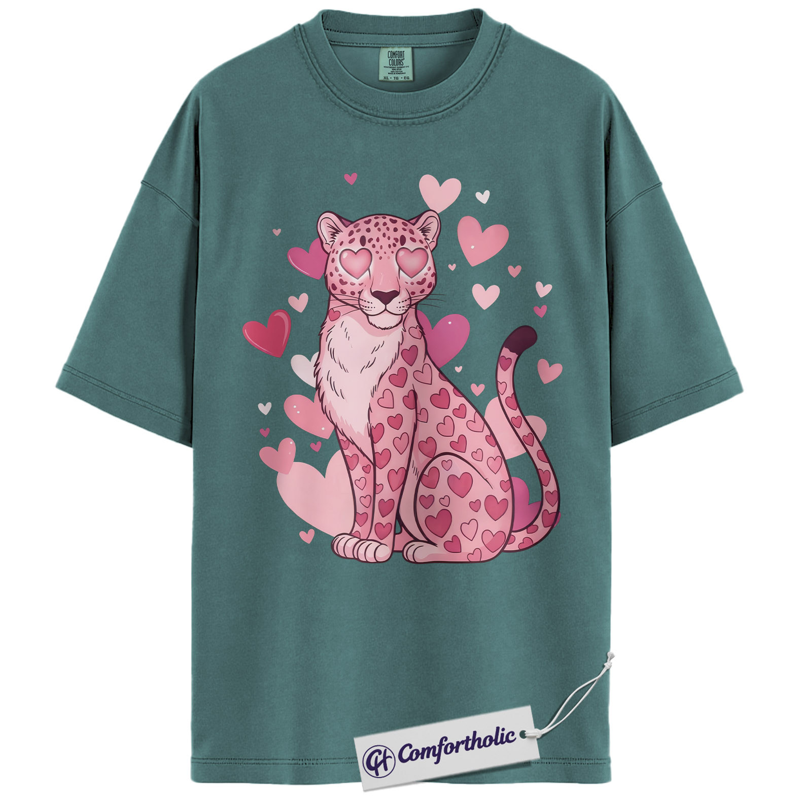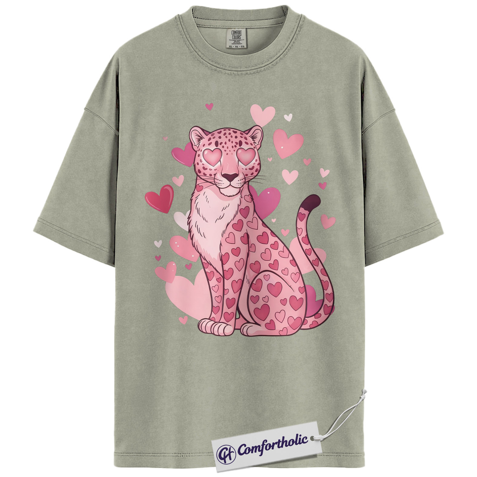 Valentine Leopard Shirt, Cute Heart Eyes Big Cat Graphic Tee, Pink Wild Animal Lover T-Shirt, Valentine’s Day Gift for Wildlife Lovers, Comfort Colors Shirt